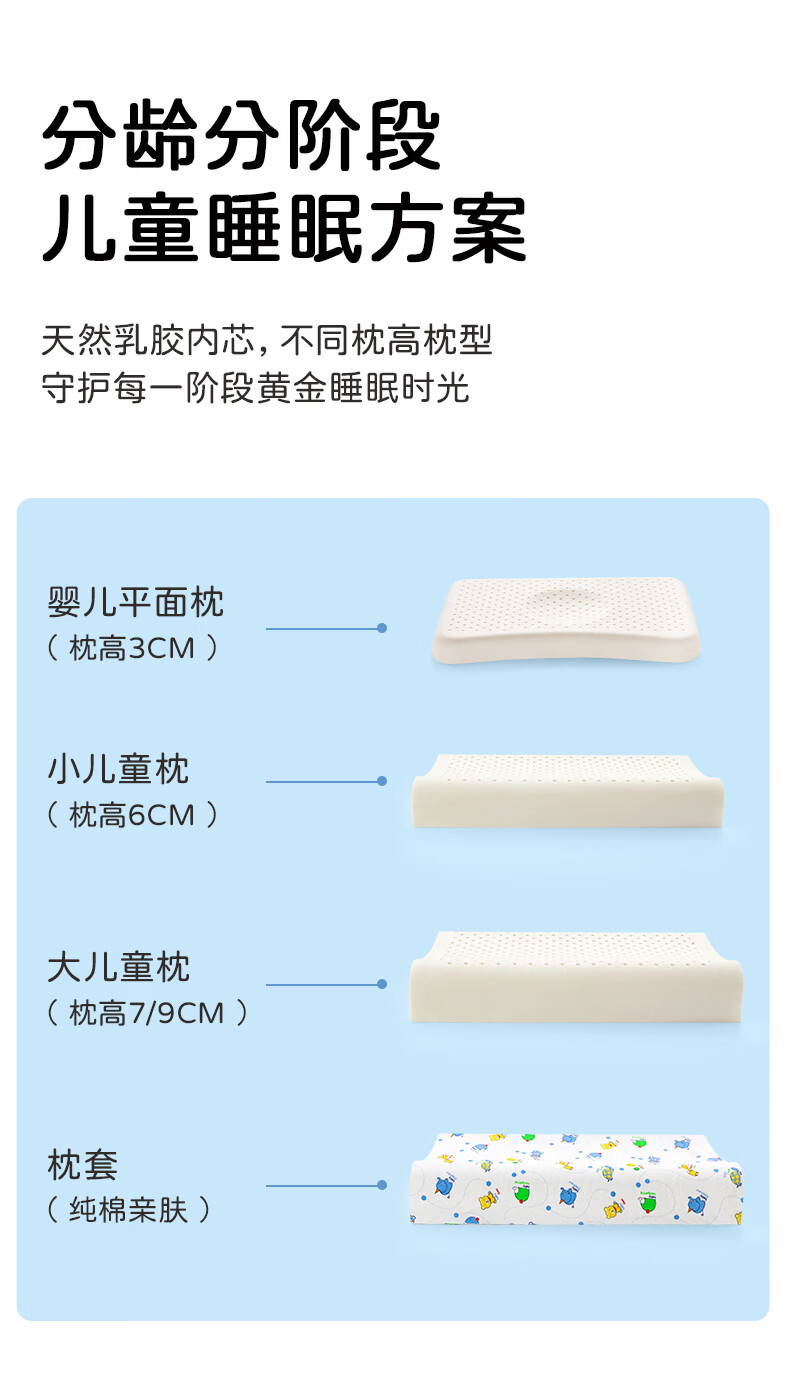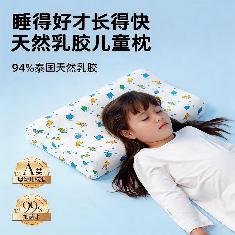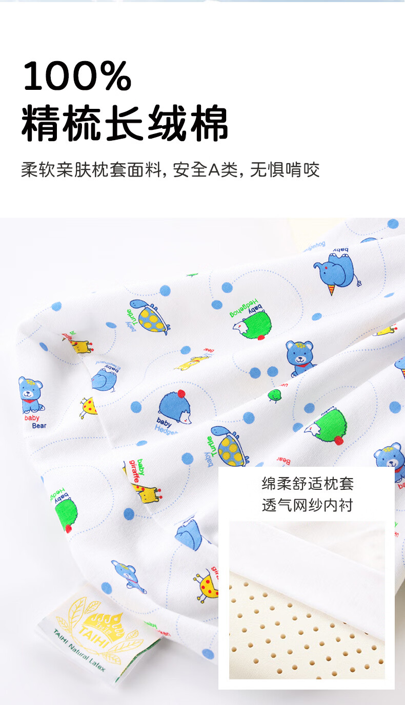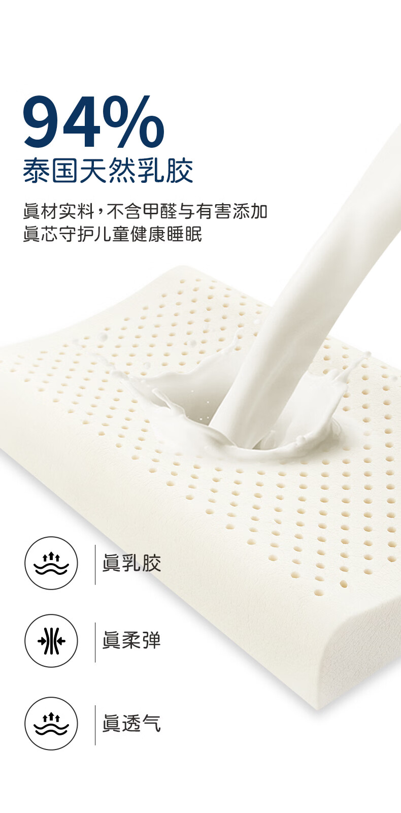 泰嗨(TAIHI)天然乳胶枕头儿童乳胶枕泰国进口天然乳胶枕头学生枕护枕芯 大儿童枕单只装