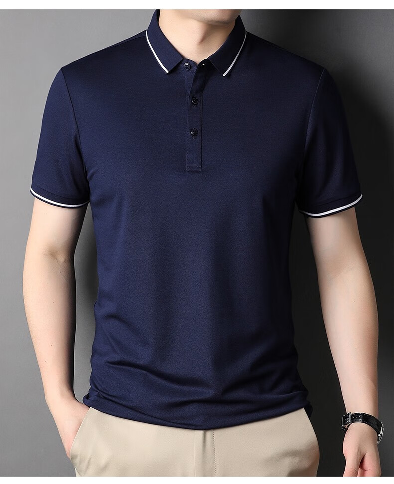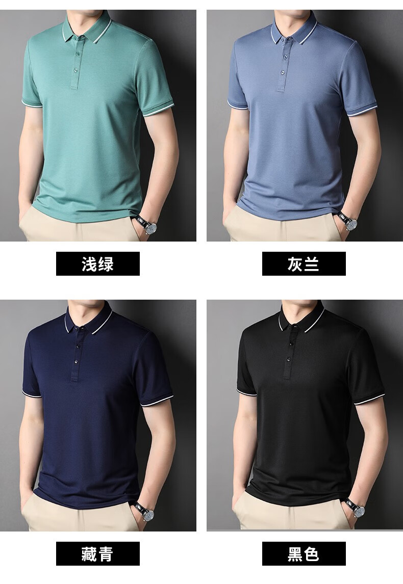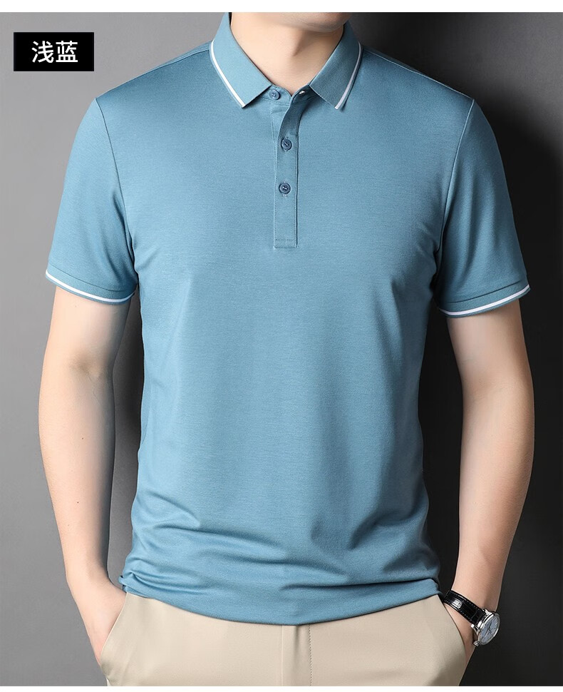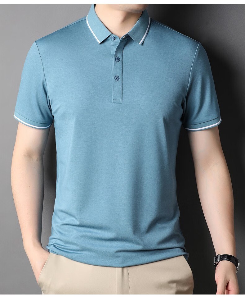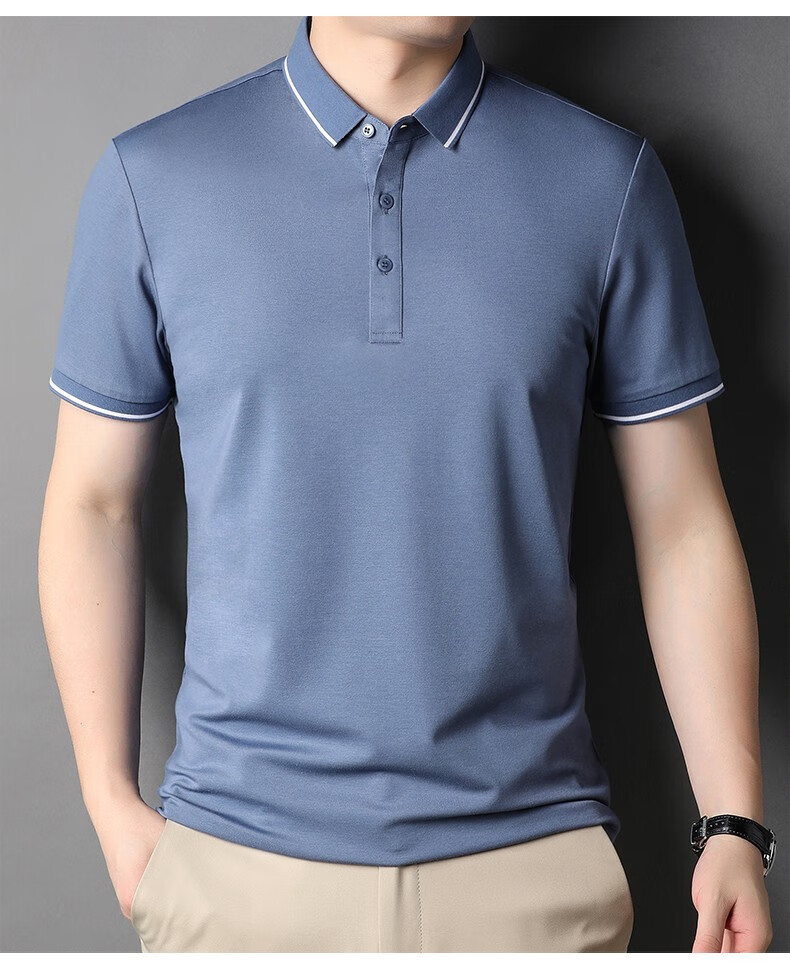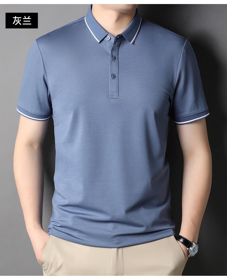 雅鹿男装含桑蚕丝Polo衫男2026夏季新款翻领商务休闲冰凉感男士上衣 灰兰 M /48(建议100-120斤)