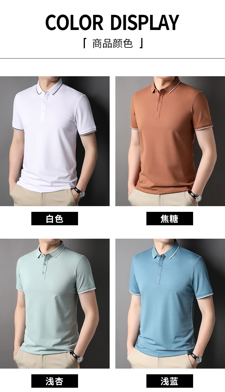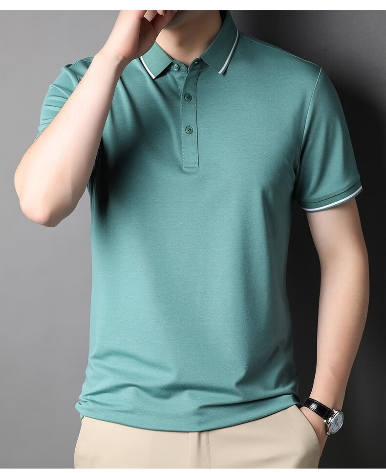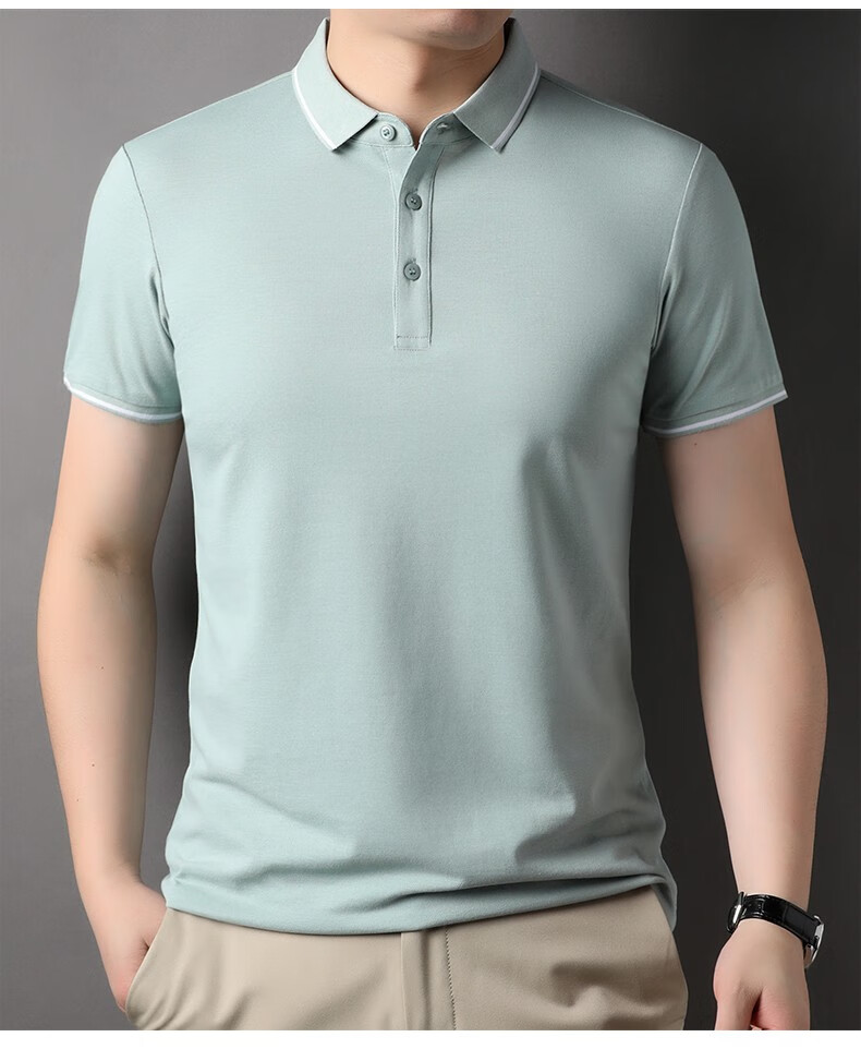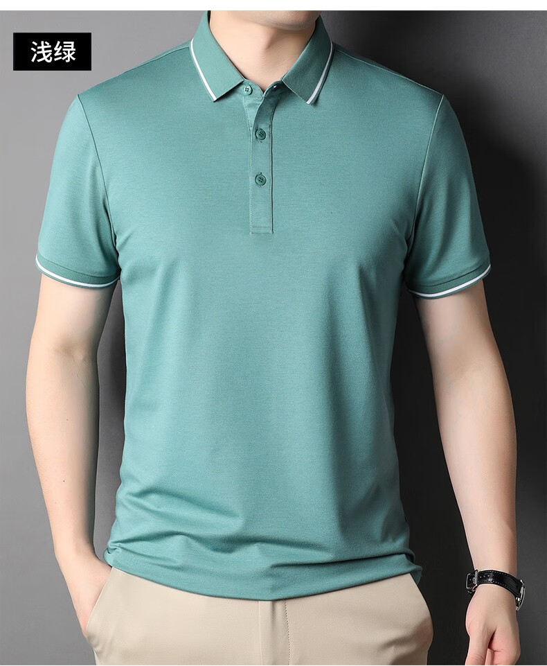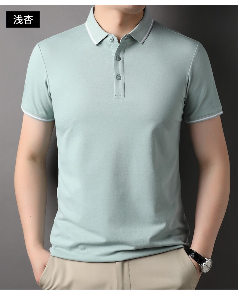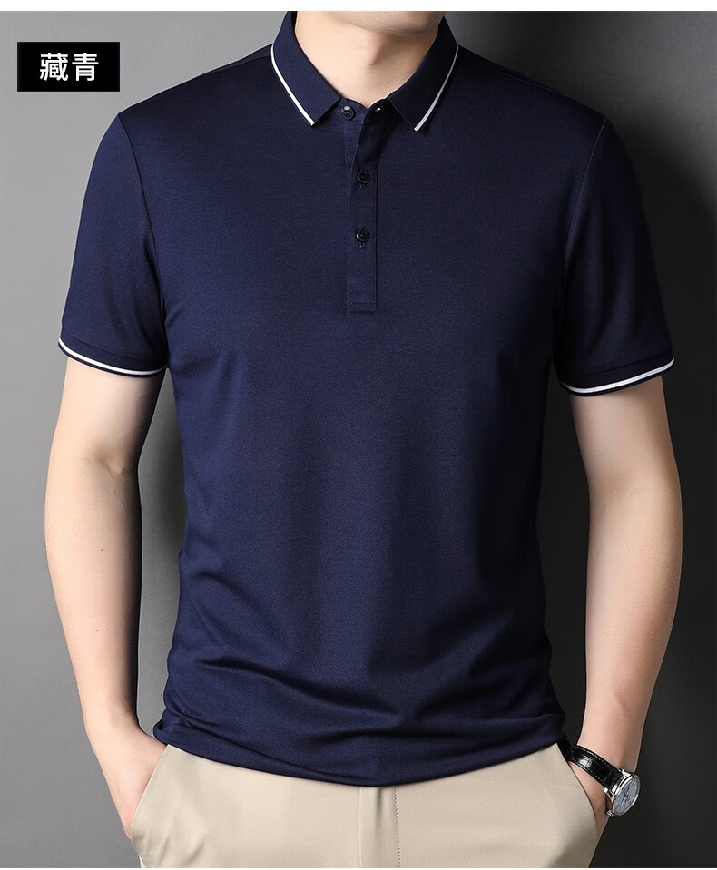 雅鹿男装含桑蚕丝Polo衫男2026夏季新款翻领商务休闲冰凉感男士上衣 灰兰 M /48(建议100-120斤)
