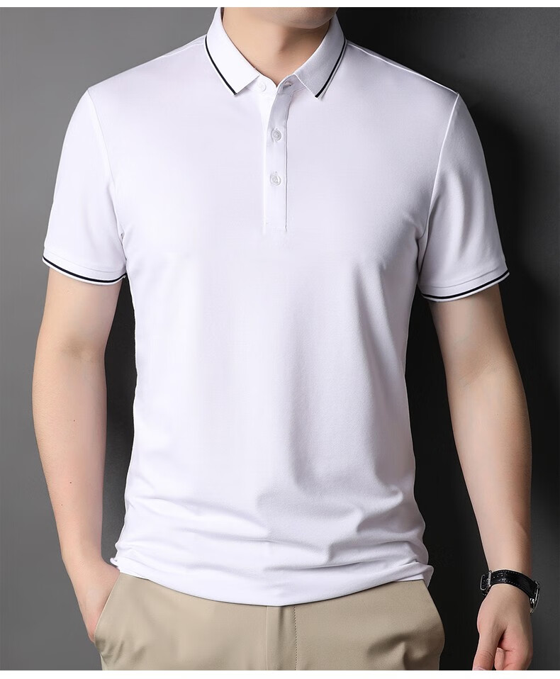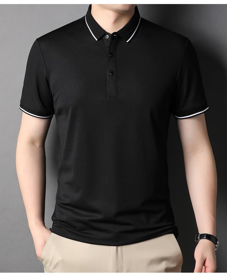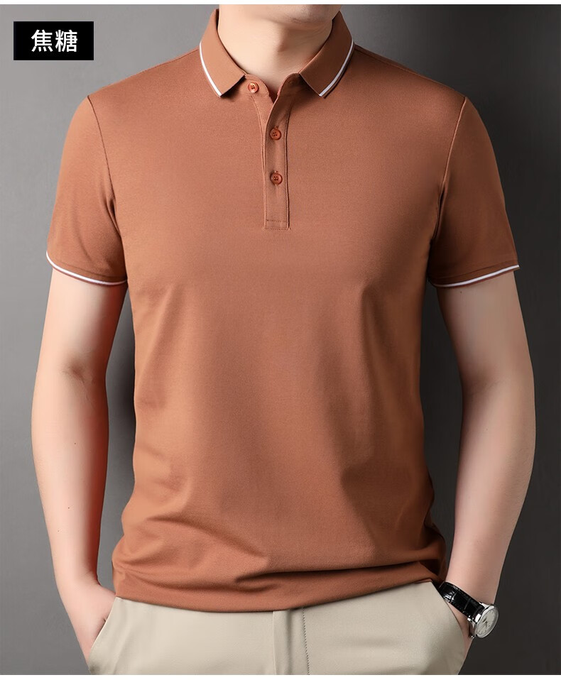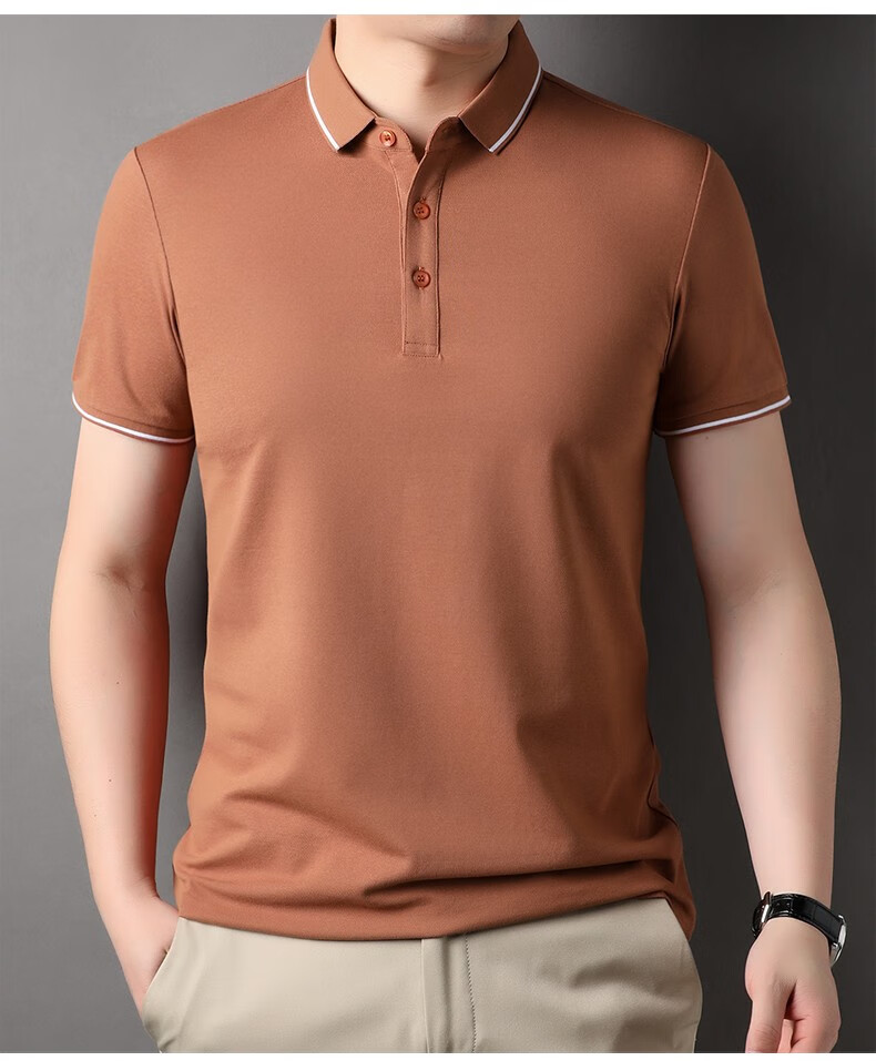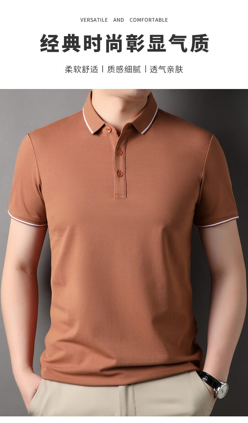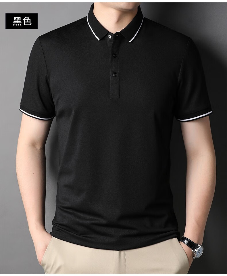 雅鹿男装含桑蚕丝Polo衫男2026夏季新款翻领商务休闲冰凉感男士上衣 灰兰 M /48(建议100-120斤)