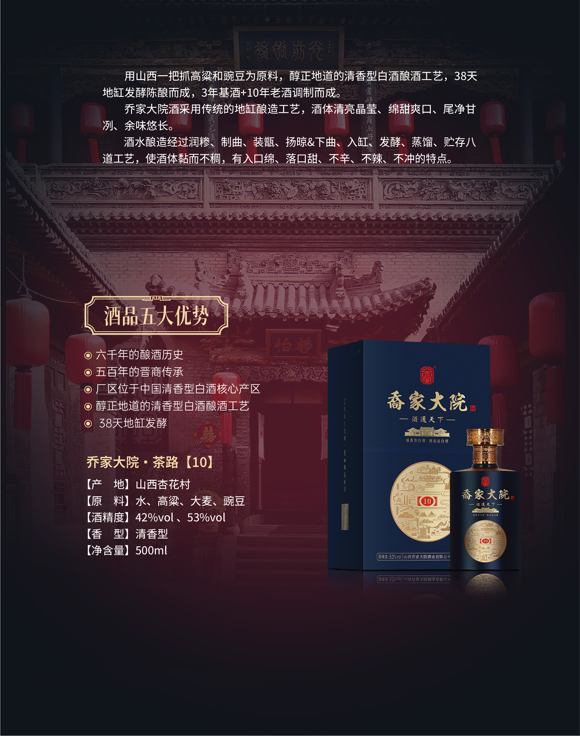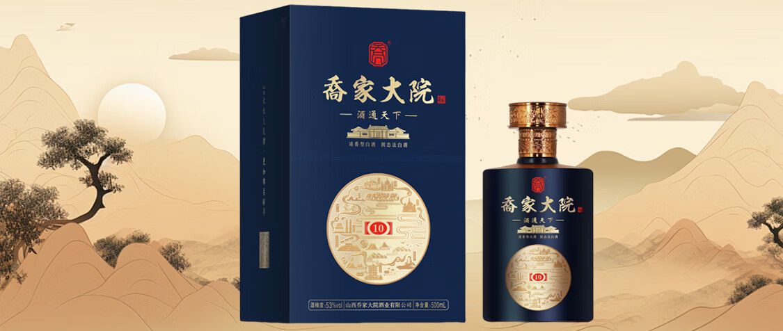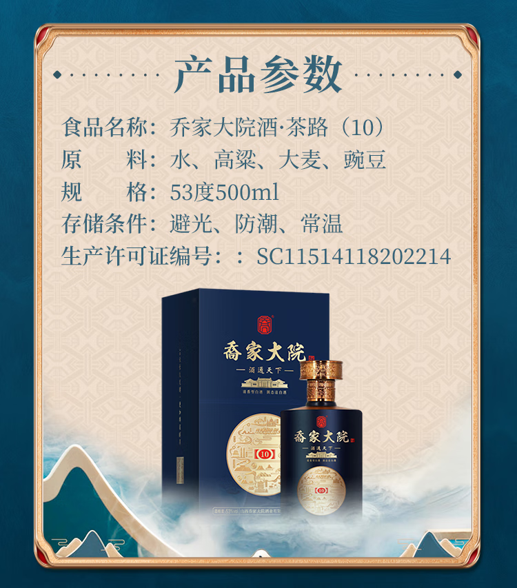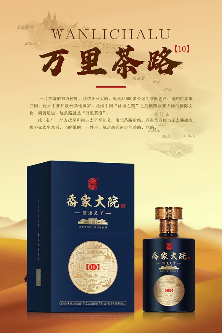 喬家大院清香型白酒 乔家大院茶路(10)53°500ml 高度清香型白酒 53度 500mL 6瓶 整箱装