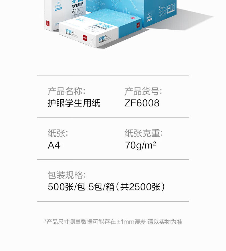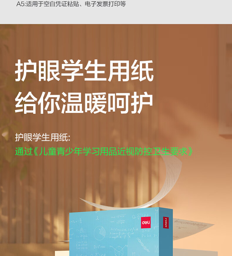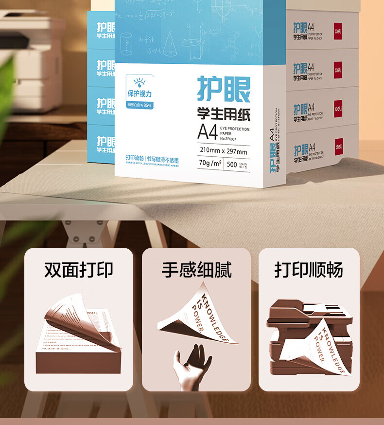 得力(deli)本色A4复印纸双面低白护眼学生作业考试考研备考复印打印曲谱草稿纸素描纸空白画纸不卡【护眼A4】 【5包/2500张/70g】 A4护眼纸