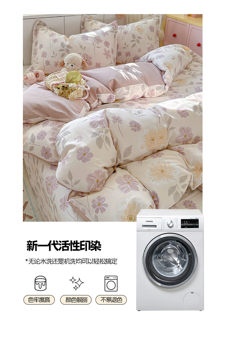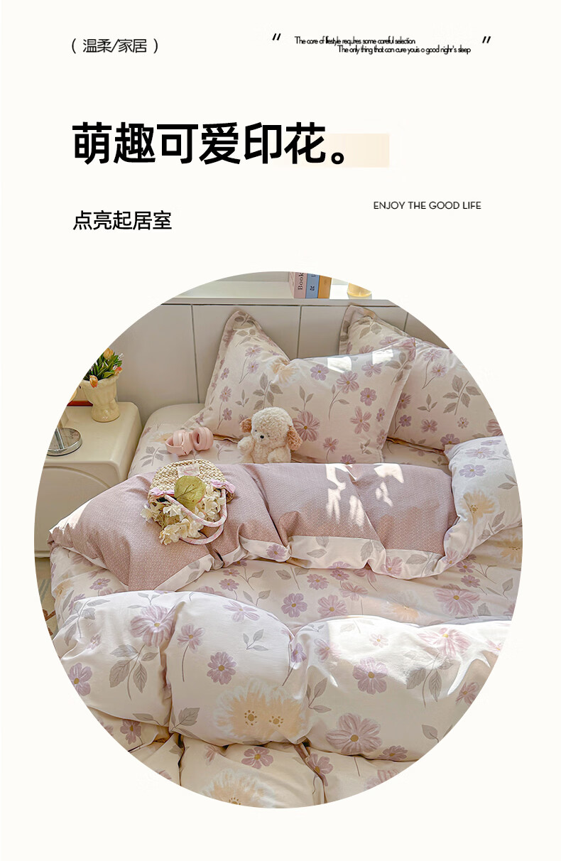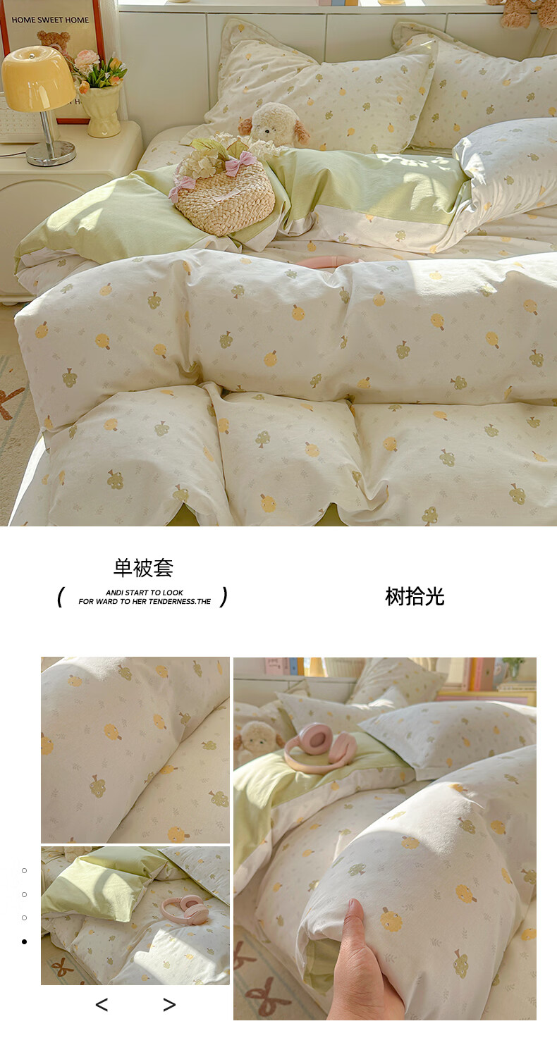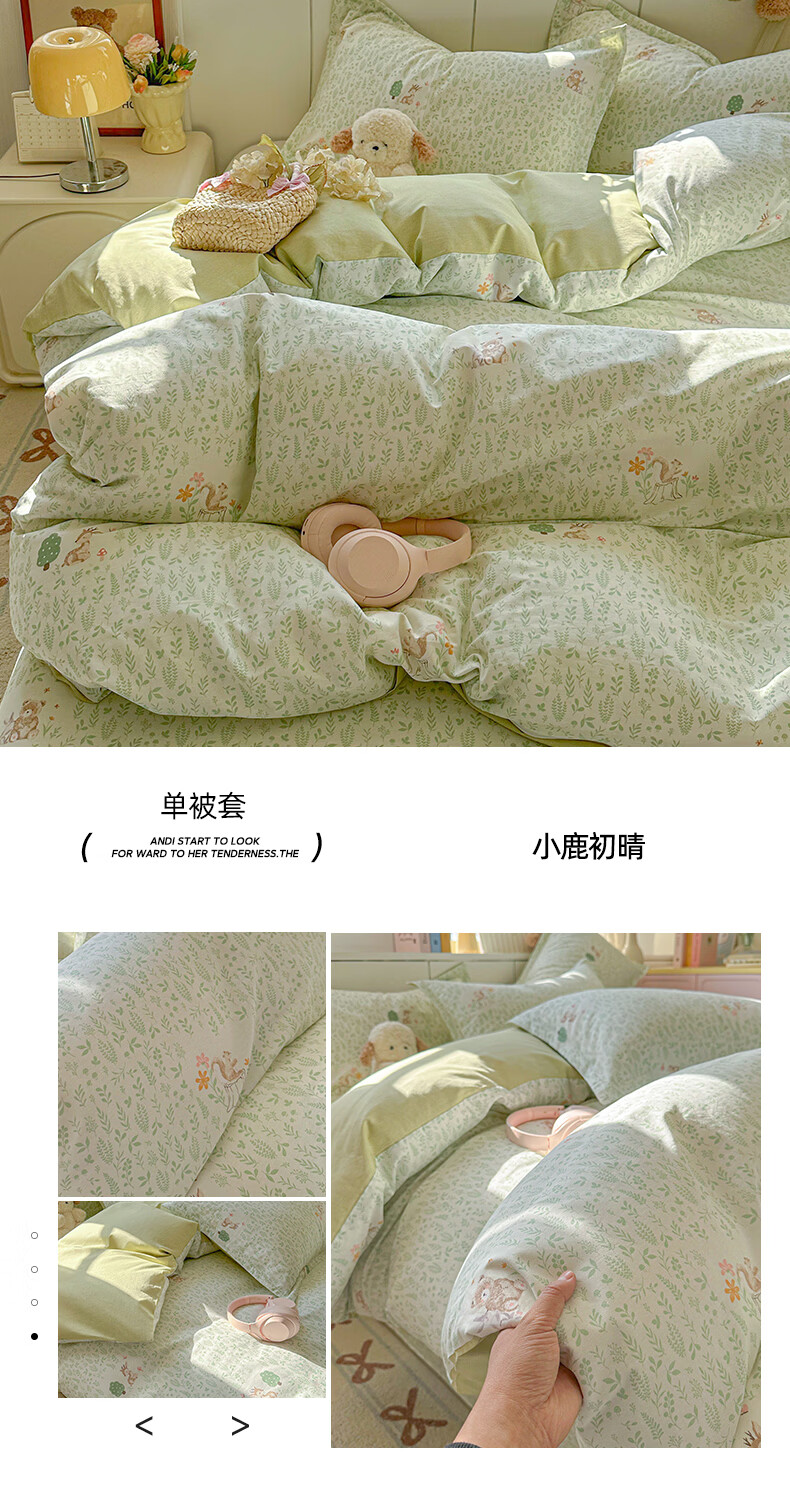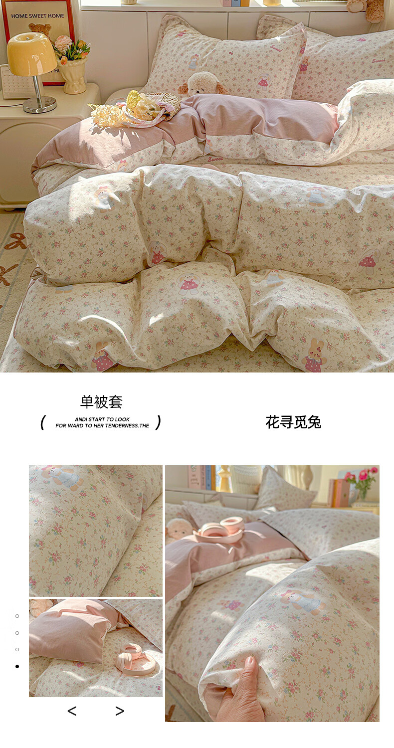 无印良品简约纯棉被套单件全棉单人被罩1.5米x2米家用床单四件套床上用品4 花寻觅兔 【100%全棉 亲肤舒适】 1.8m床单款四件套被套- 200cm*230cm
