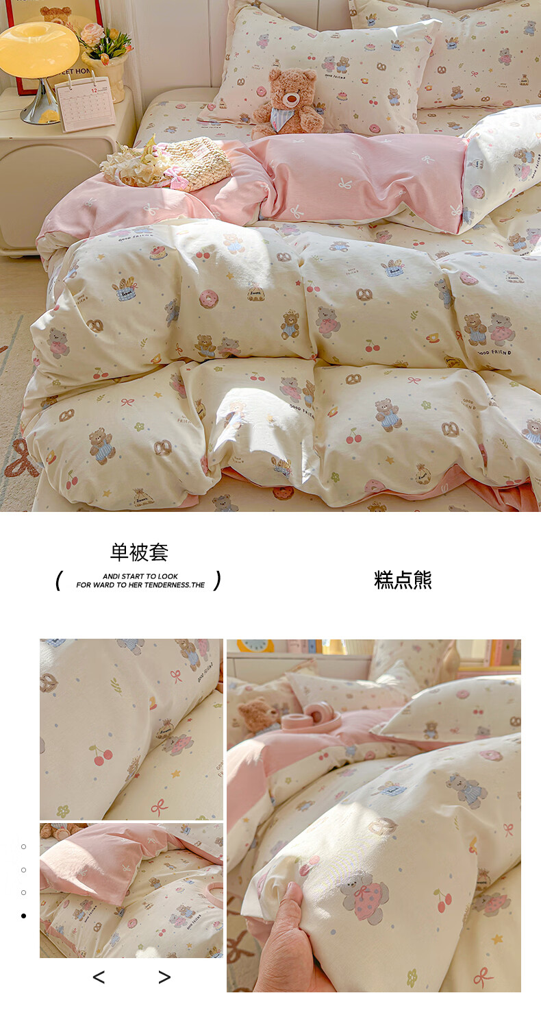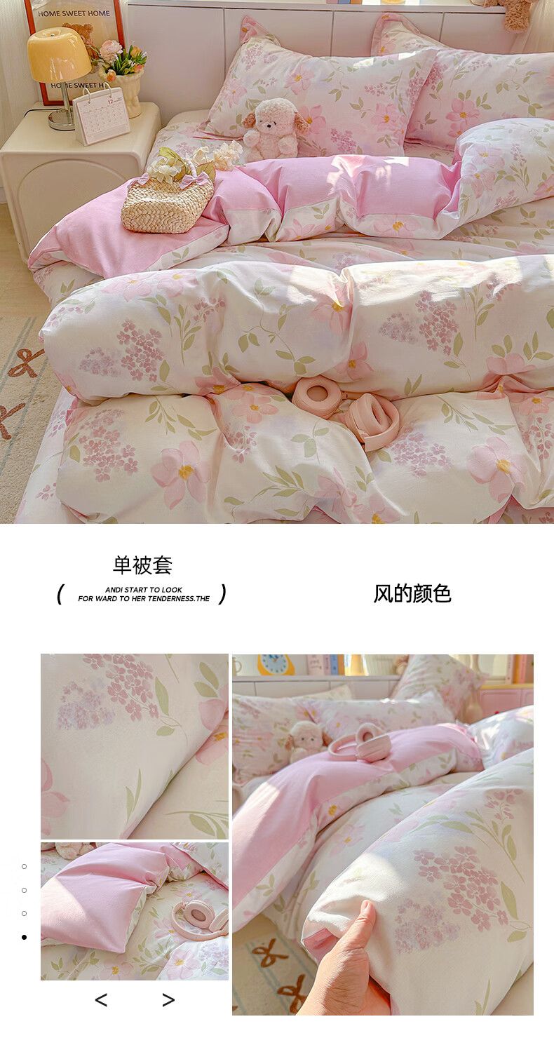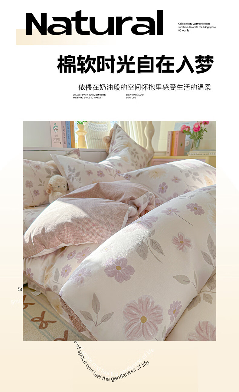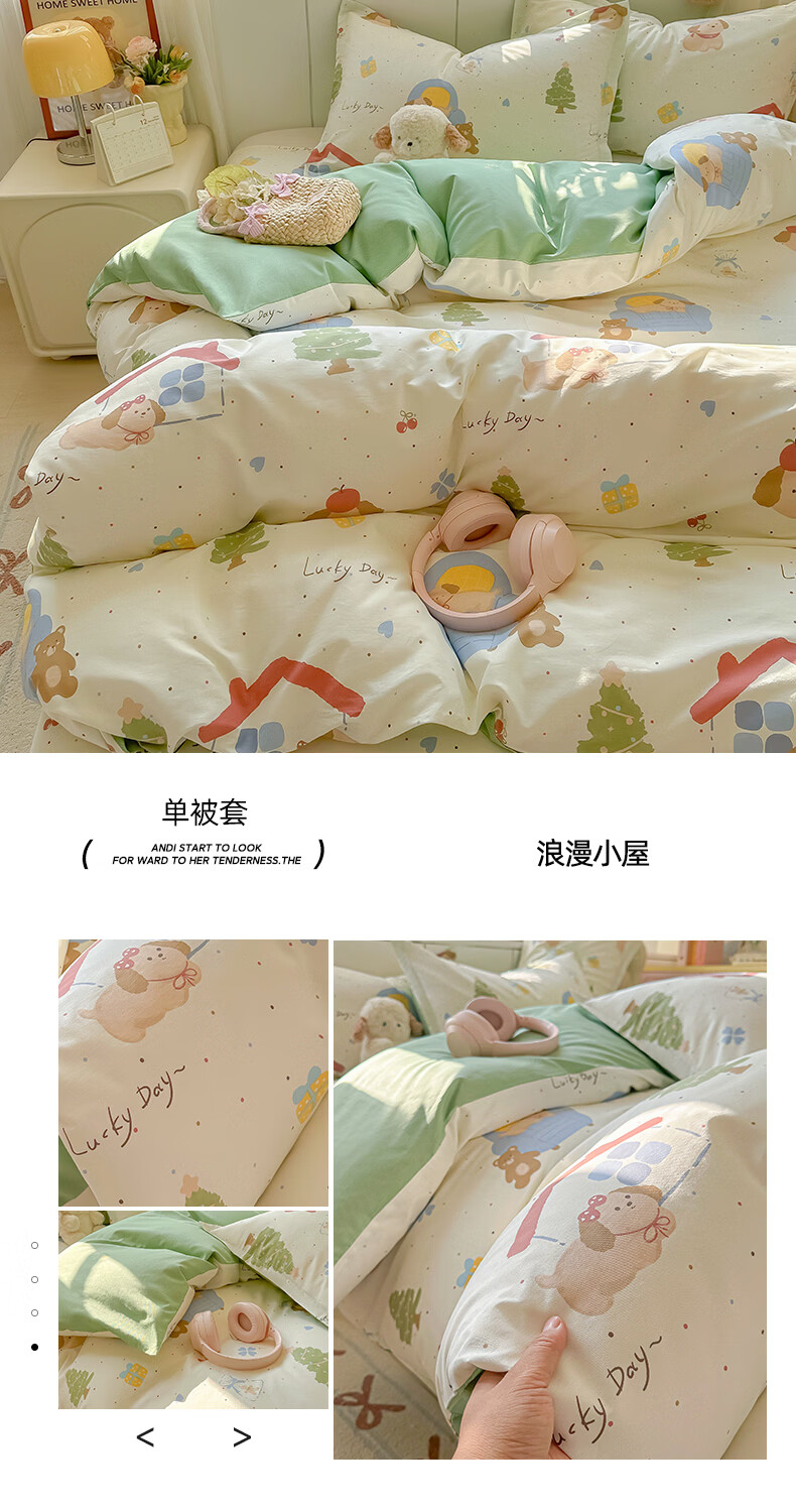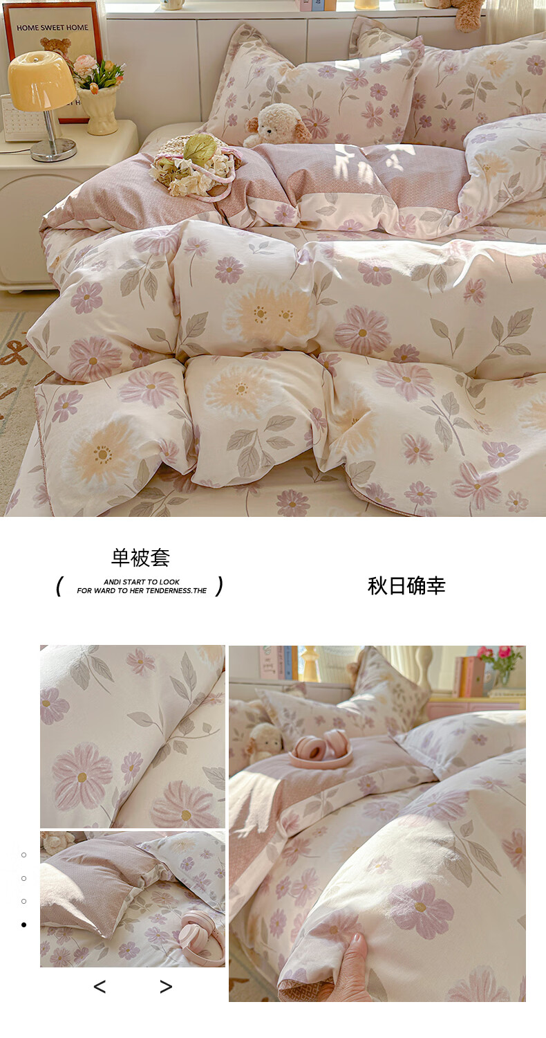 无印良品简约纯棉被套单件全棉单人被罩1.5米x2米家用床单四件套床上用品4 花寻觅兔 【100%全棉 亲肤舒适】 1.8m床单款四件套被套- 200cm*230cm
