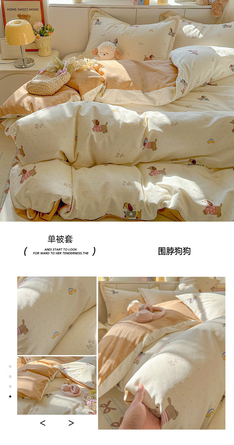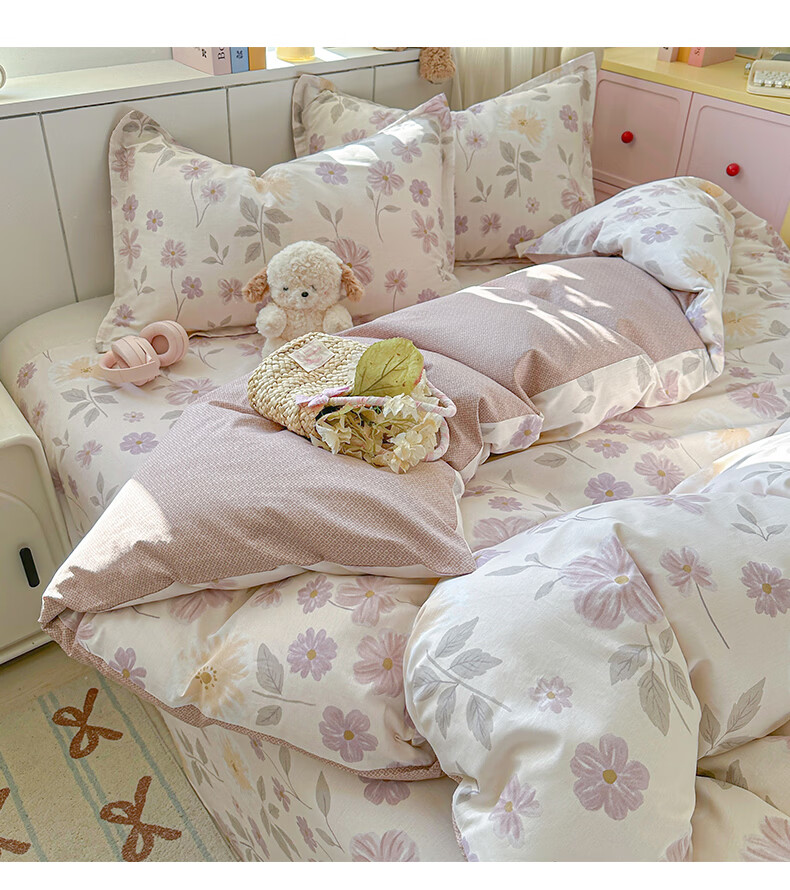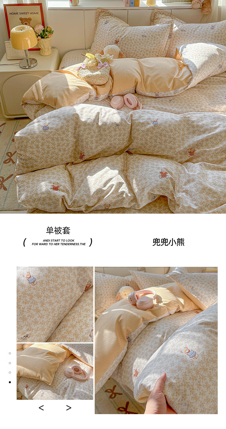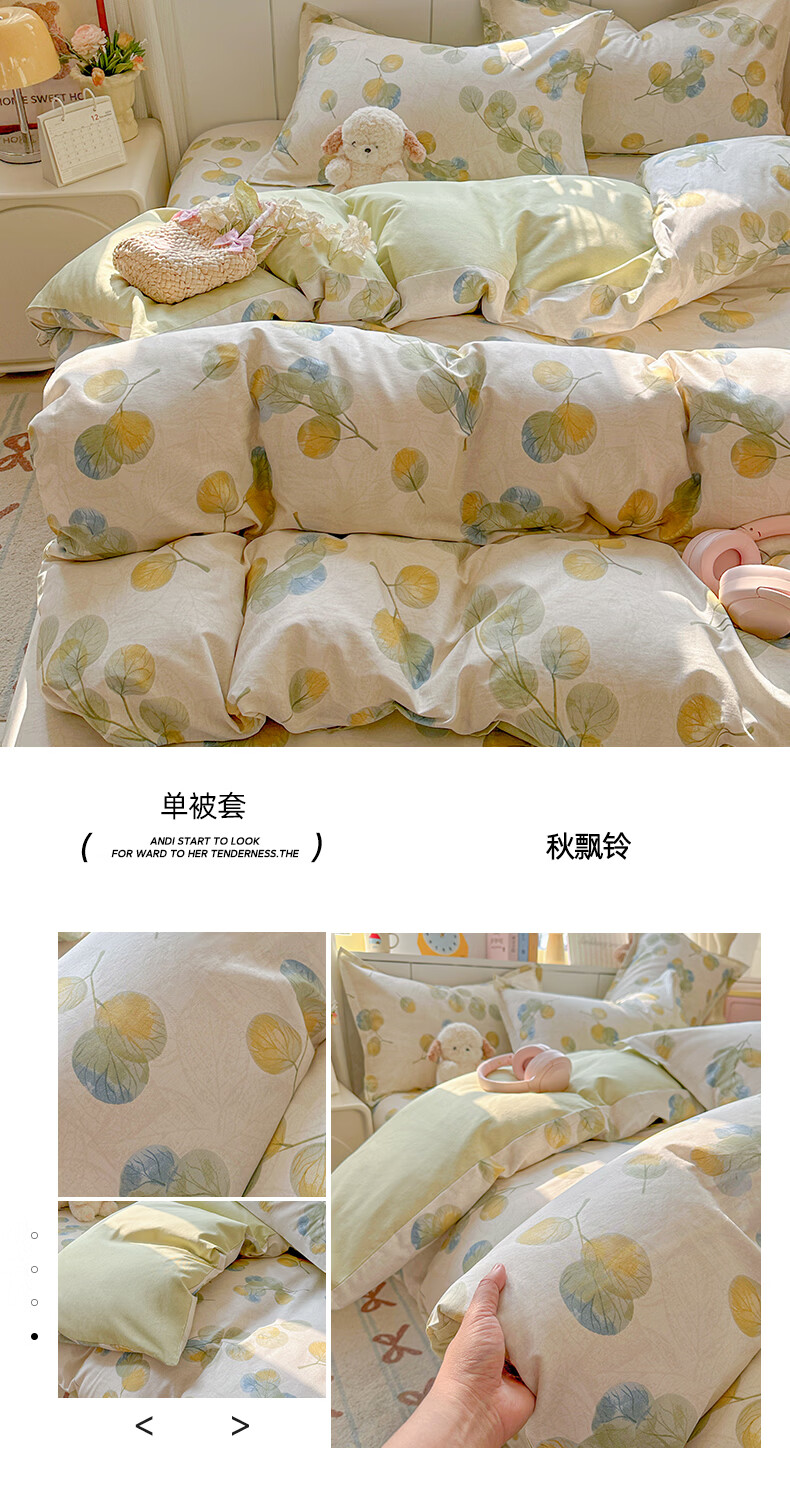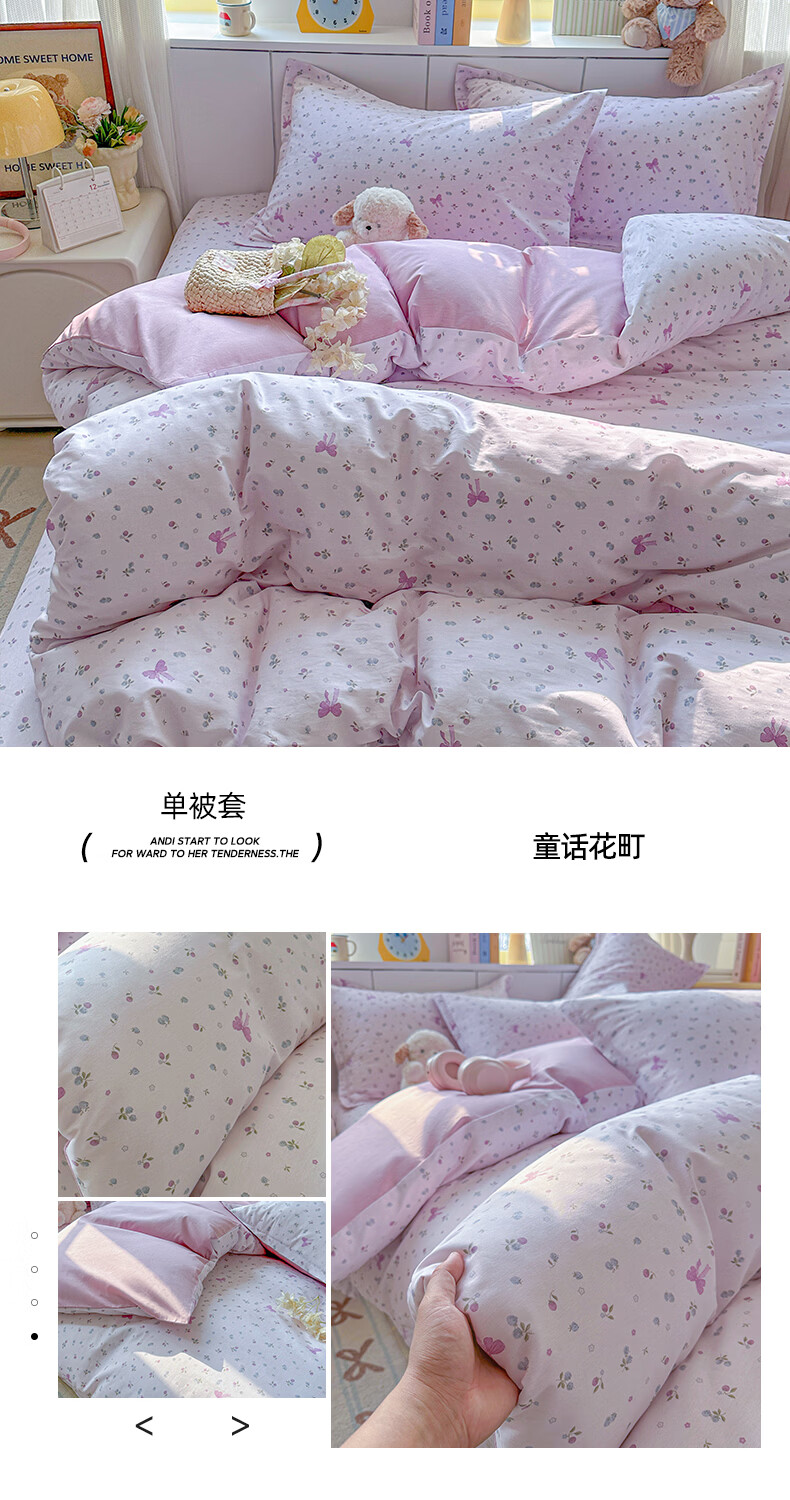 无印良品简约纯棉被套单件全棉单人被罩1.5米x2米家用床单四件套床上用品4 花寻觅兔 【100%全棉 亲肤舒适】 1.8m床单款四件套被套- 200cm*230cm