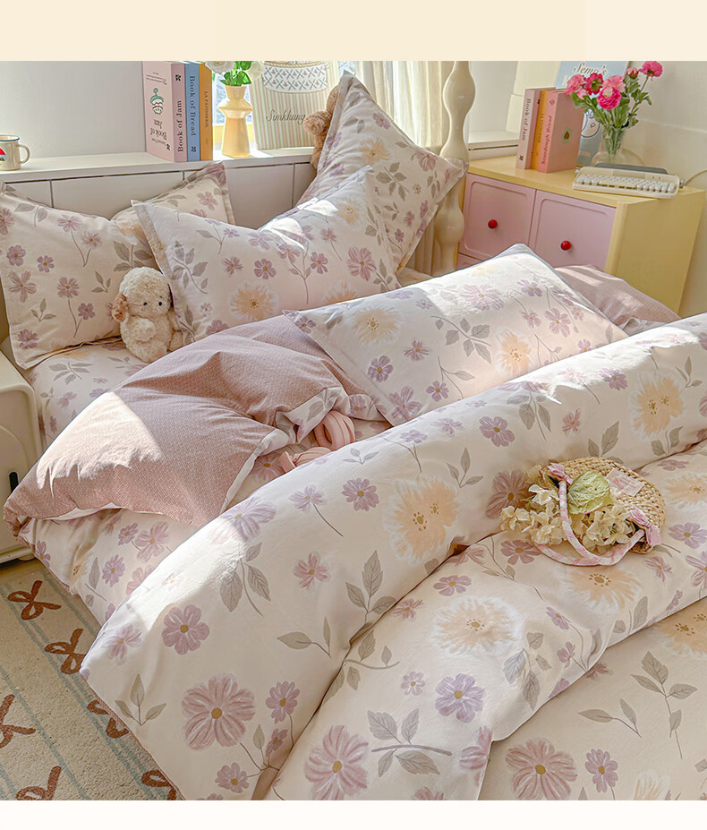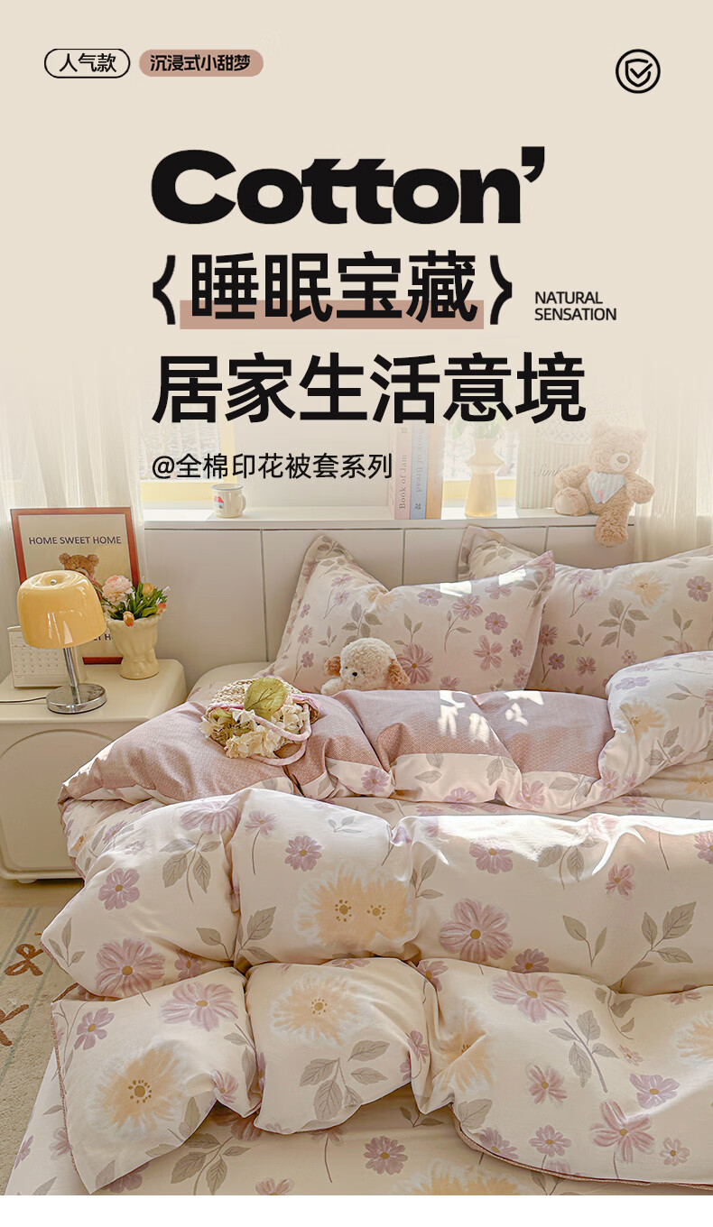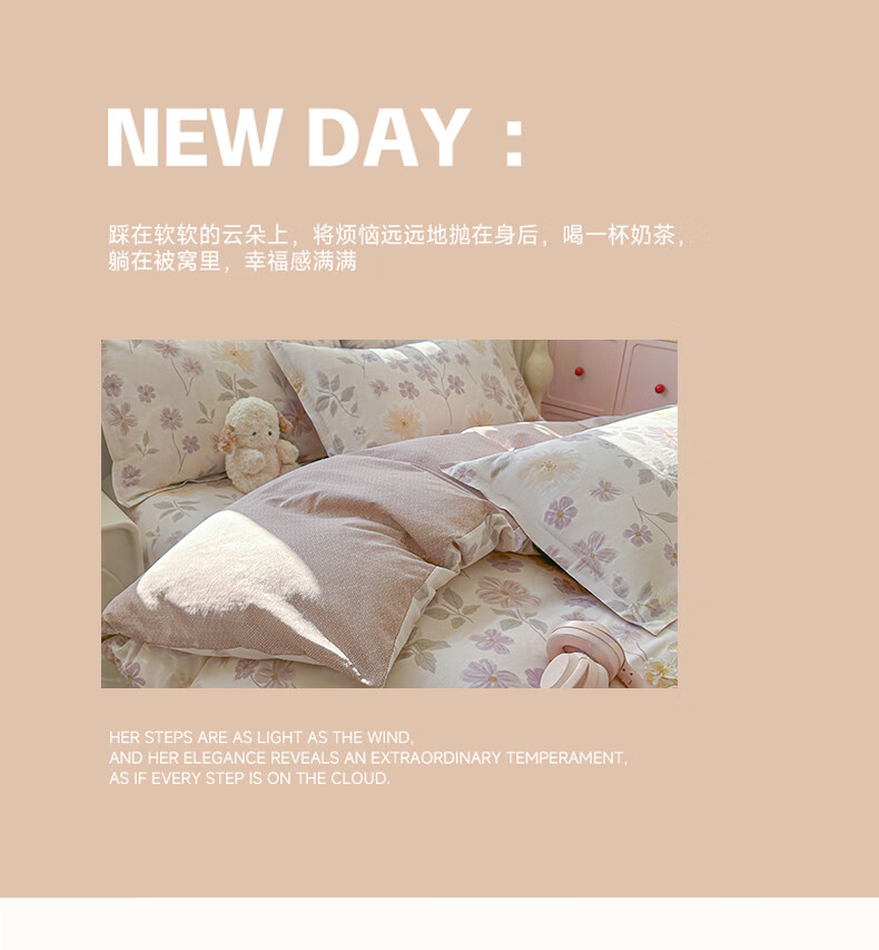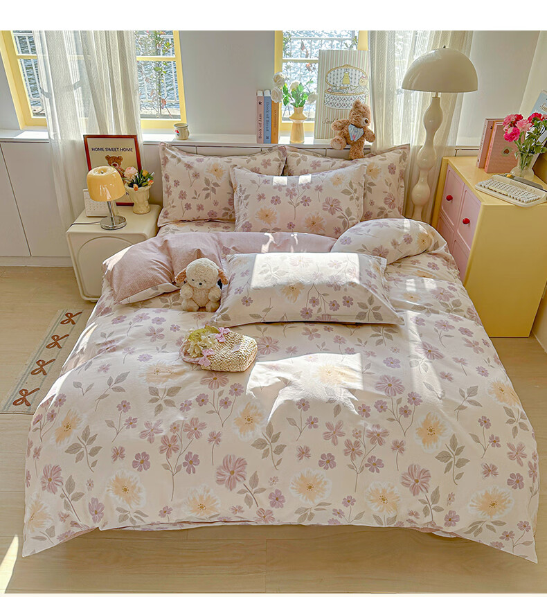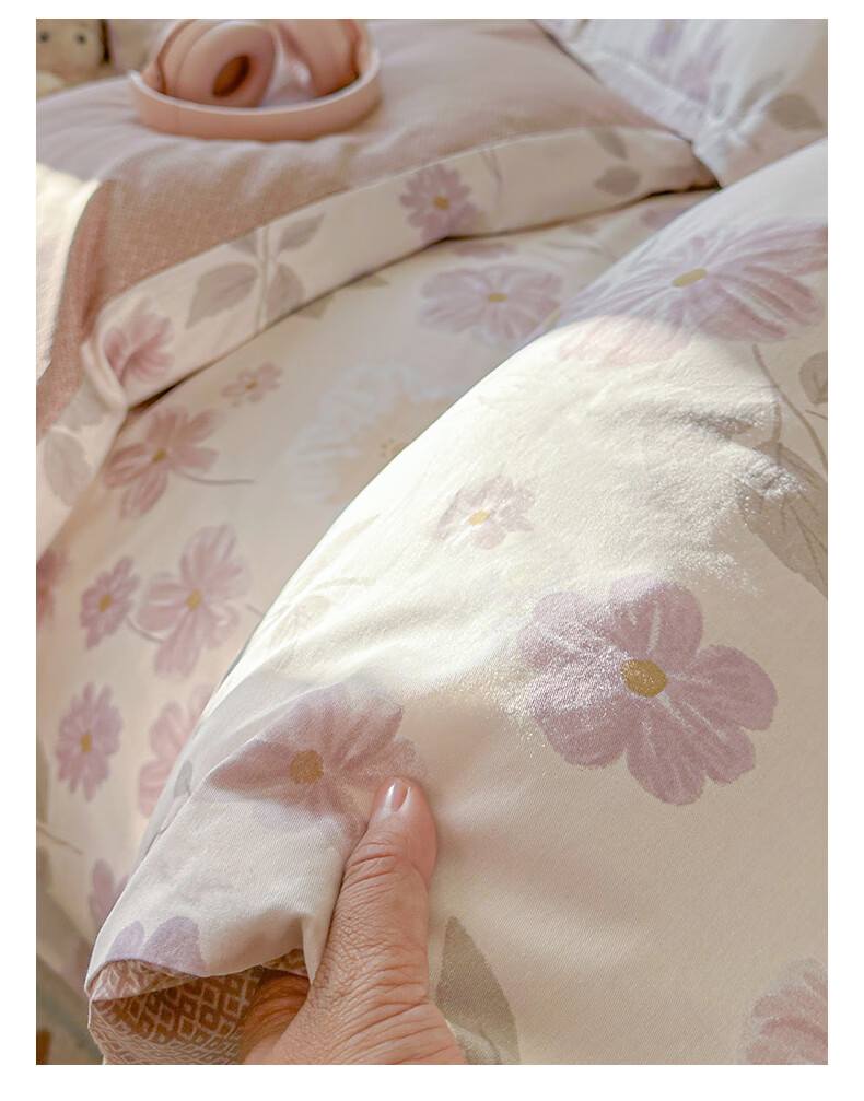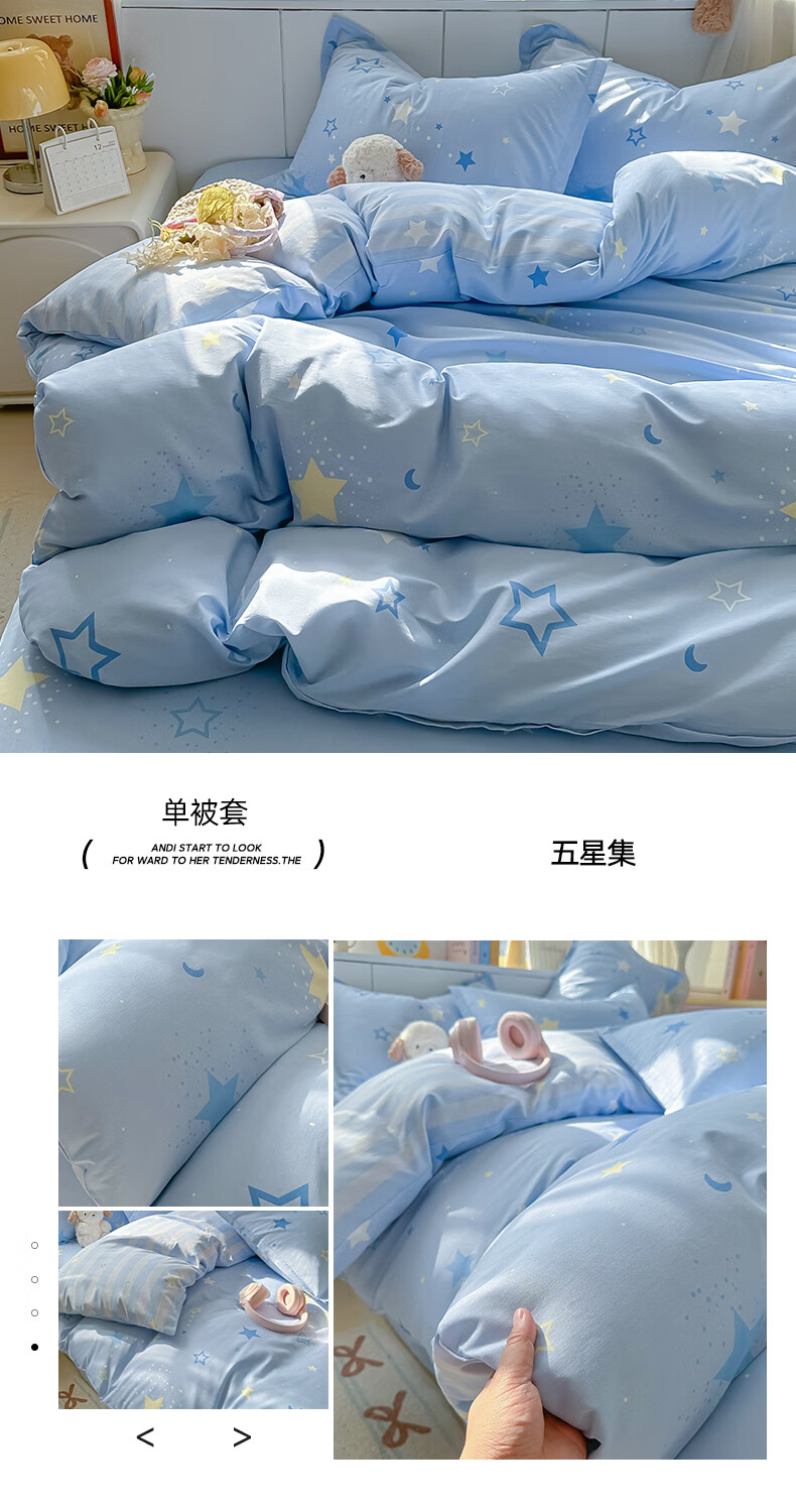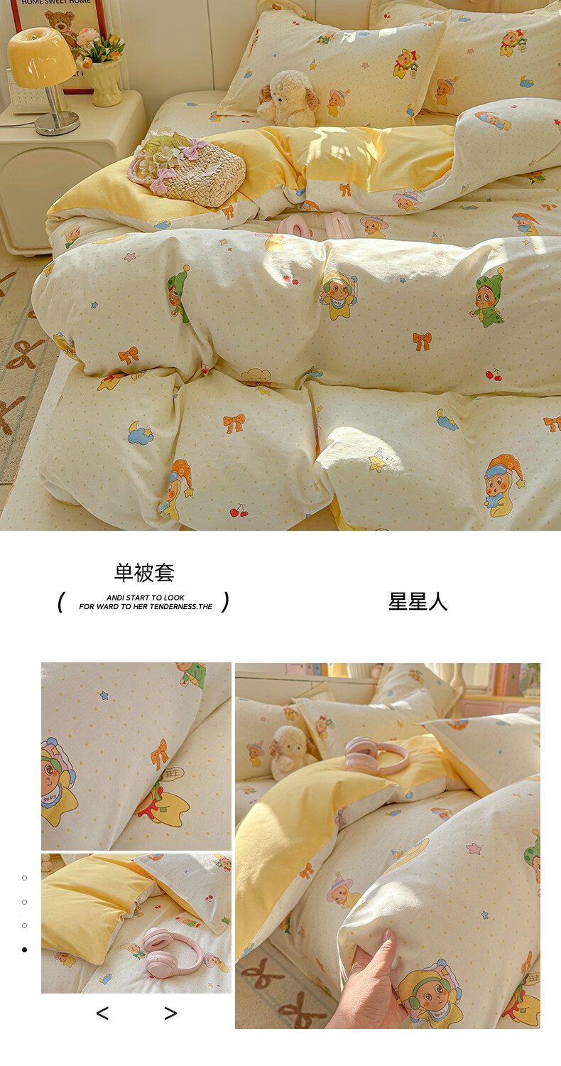 无印良品简约纯棉被套单件全棉单人被罩1.5米x2米家用床单四件套床上用品4 花寻觅兔 【100%全棉 亲肤舒适】 1.8m床单款四件套被套- 200cm*230cm
