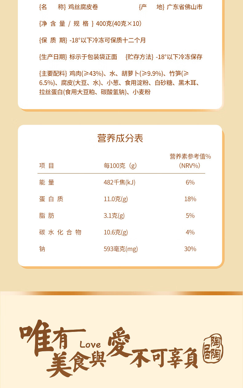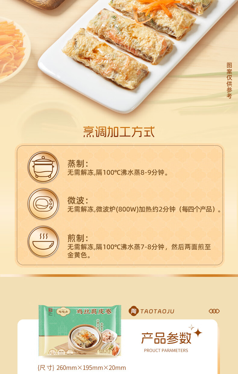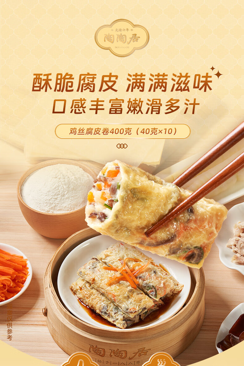 陶陶居鸡丝腐皮卷400g 广州茶楼广式点心广府早餐速冻半成品