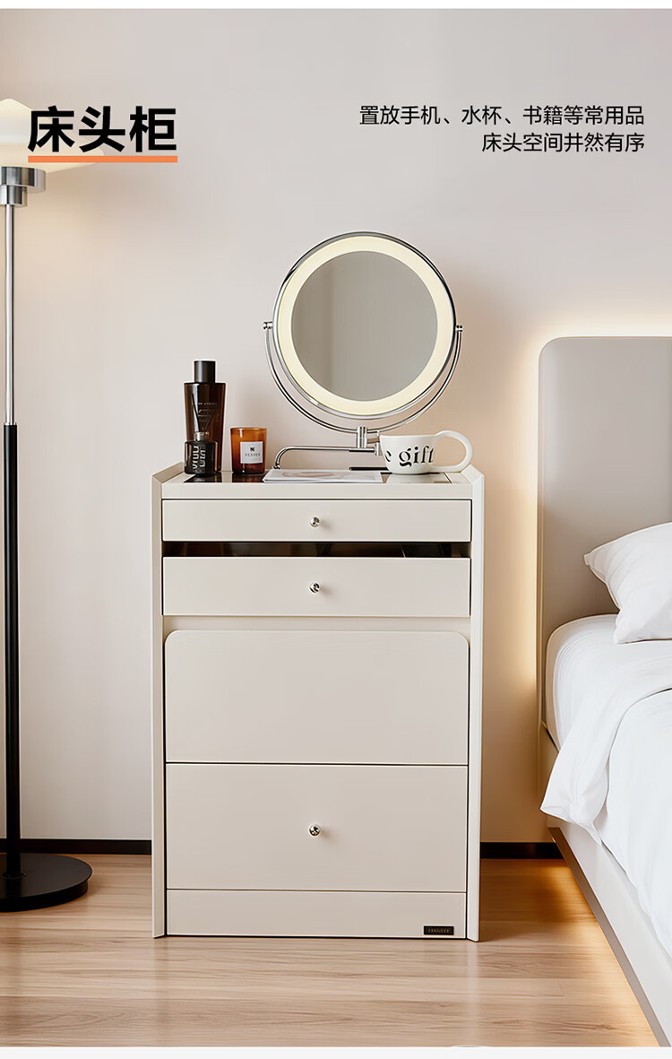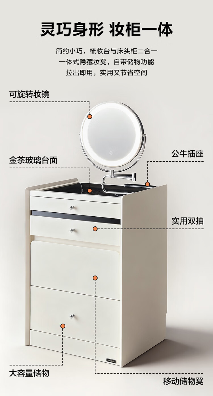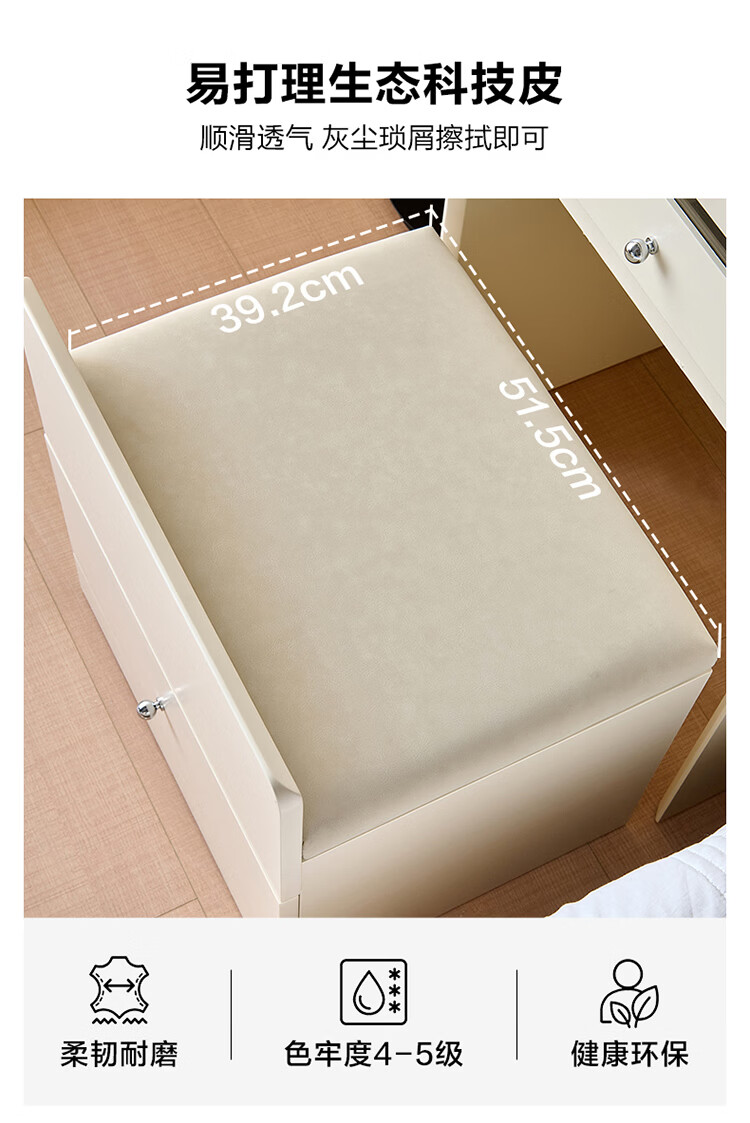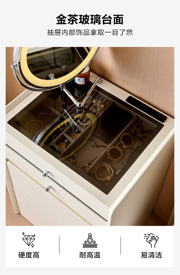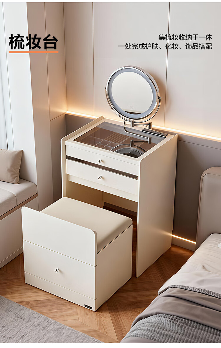 全友家居奶油风梳妆台小户型家用卧室储物收纳桌床头化妆桌化妆椅组合 【奶油白】妆台+妆镜+妆凳