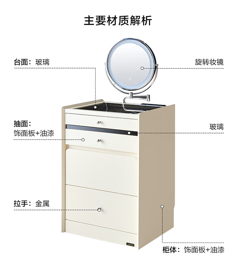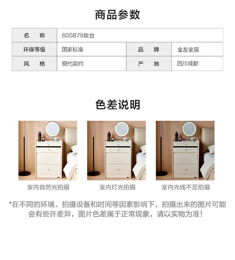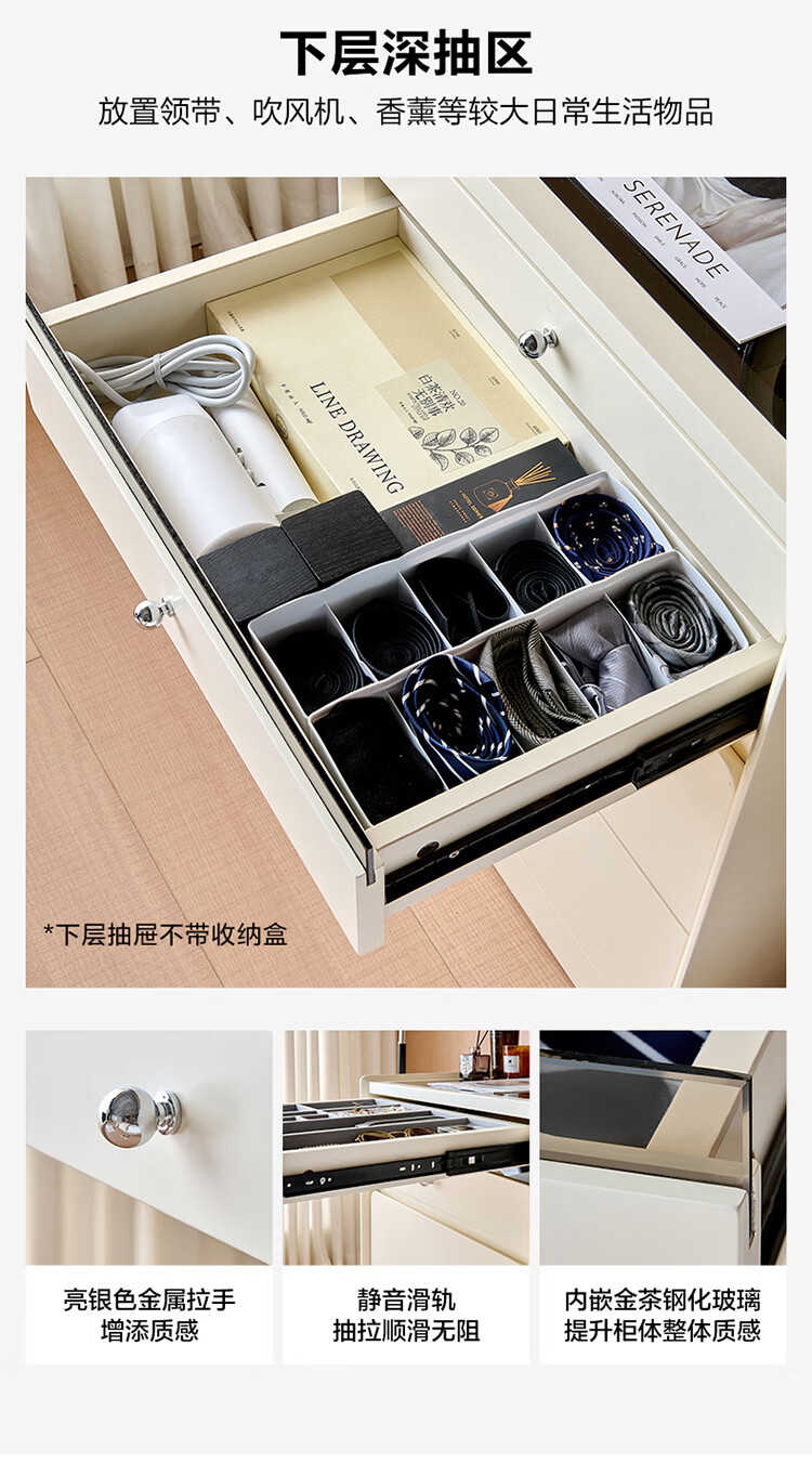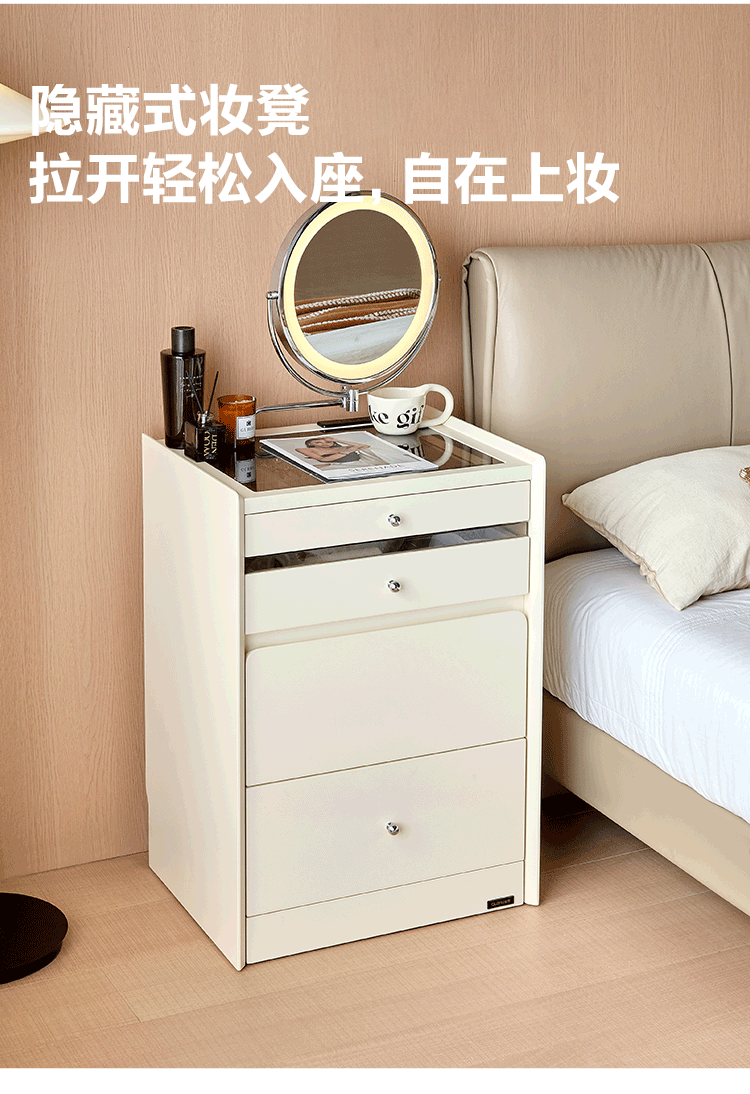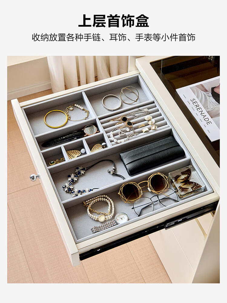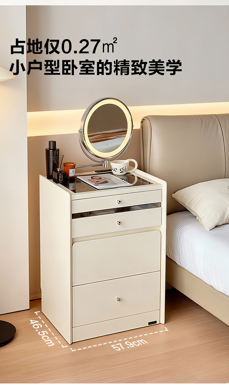 全友家居奶油风梳妆台小户型家用卧室储物收纳桌床头化妆桌化妆椅组合 【奶油白】妆台+妆镜+妆凳