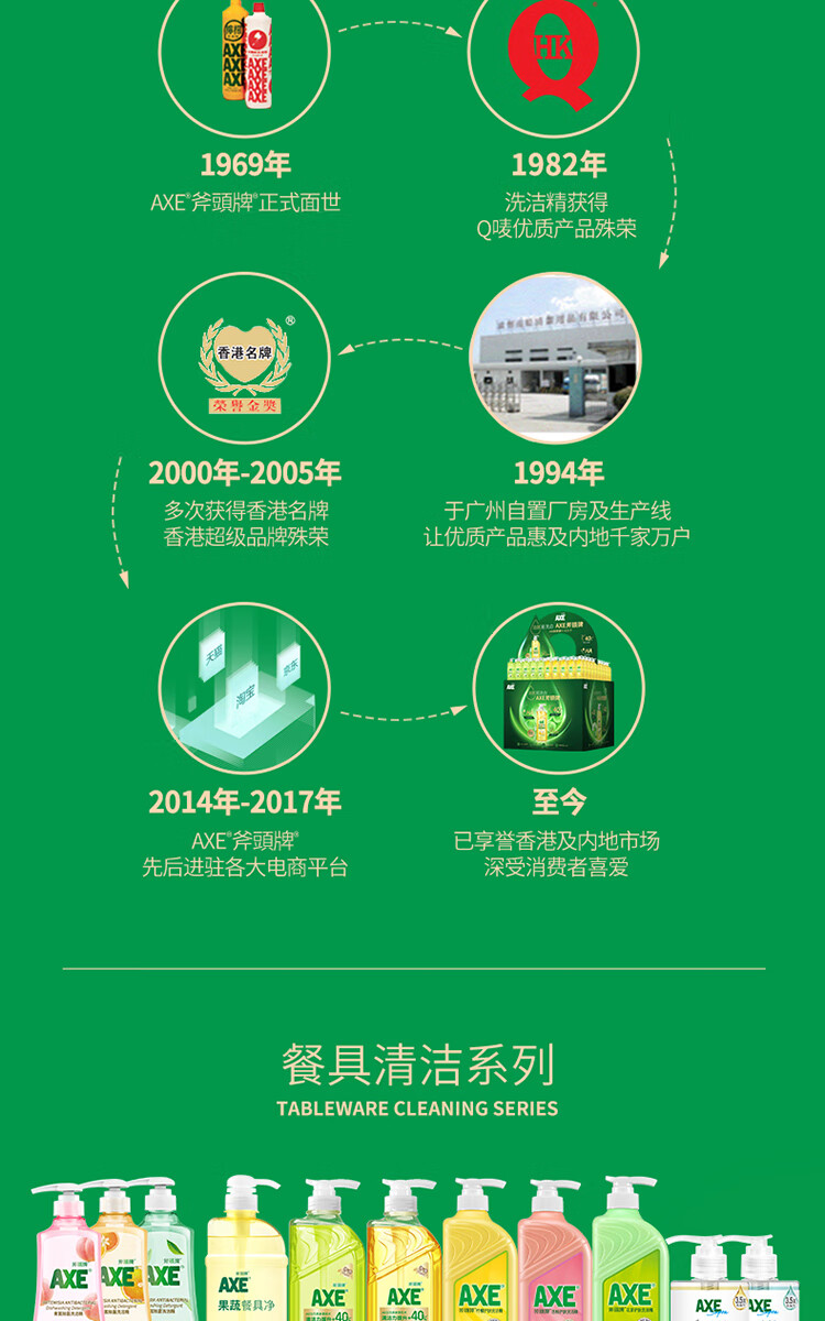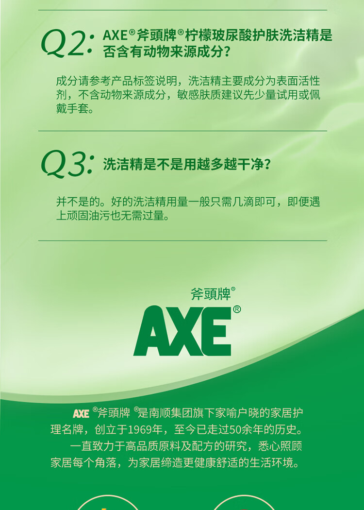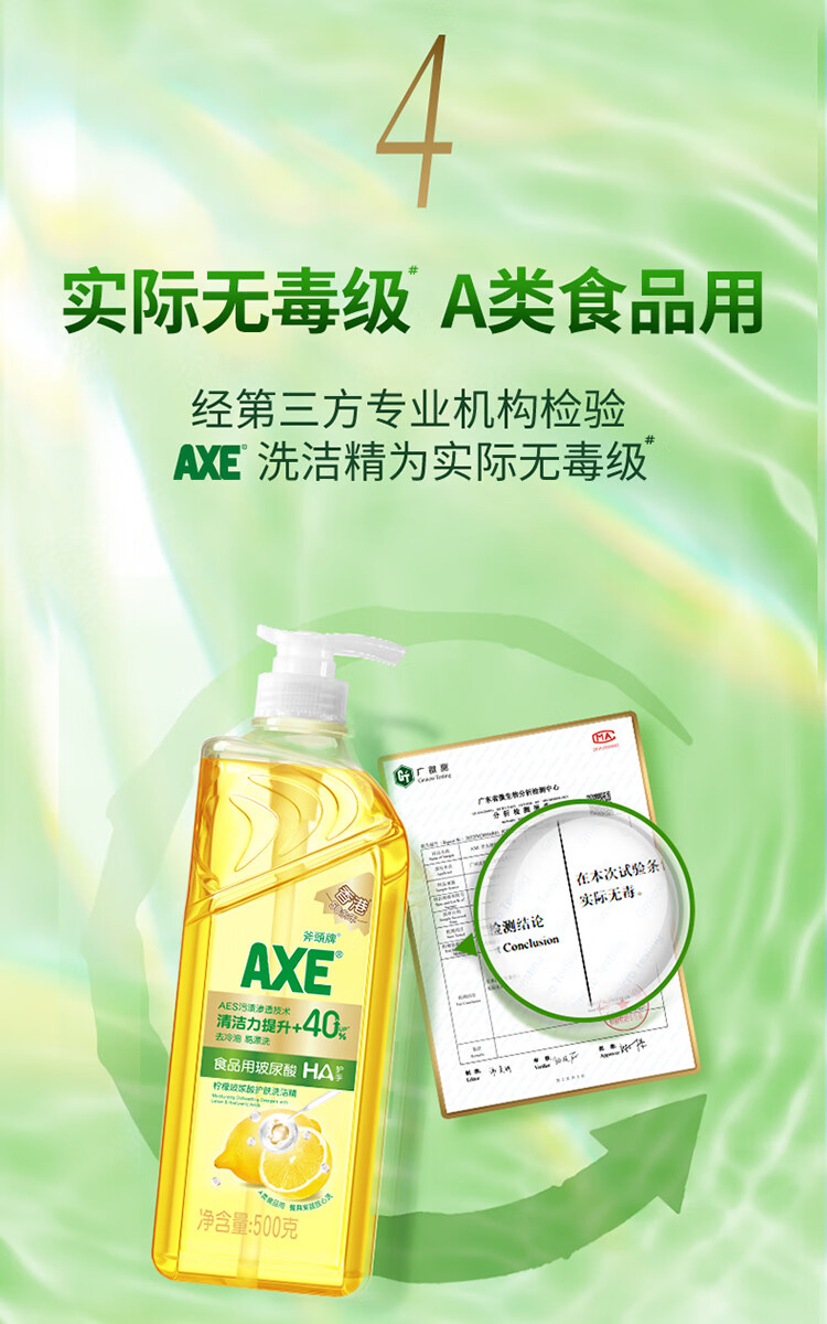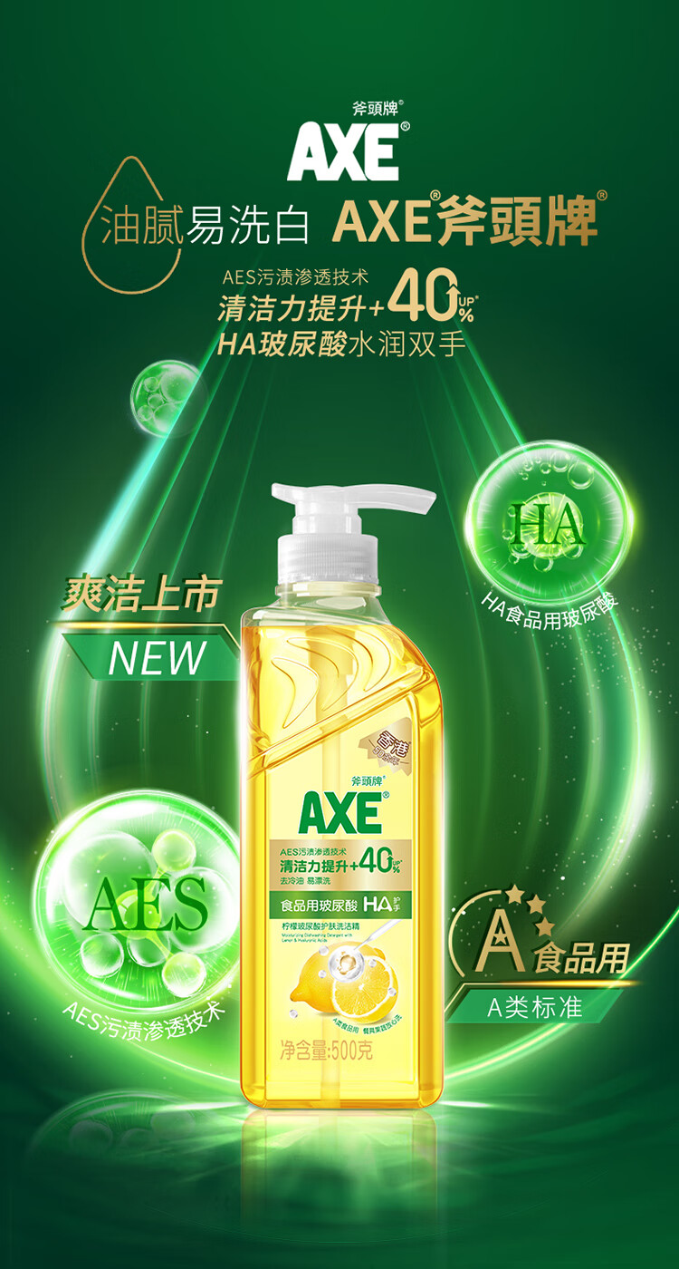 AXE斧头牌柠檬玻尿酸护肤洗洁精500g泵果蔬安心洗清洁力+40%