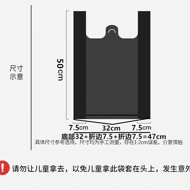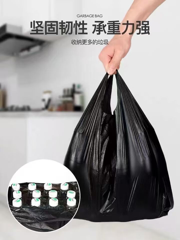 垃圾袋家用加厚手提背心式中大号厨房卫生间用一次性黑色袋子活动 50只【实惠装】手提垃圾袋
