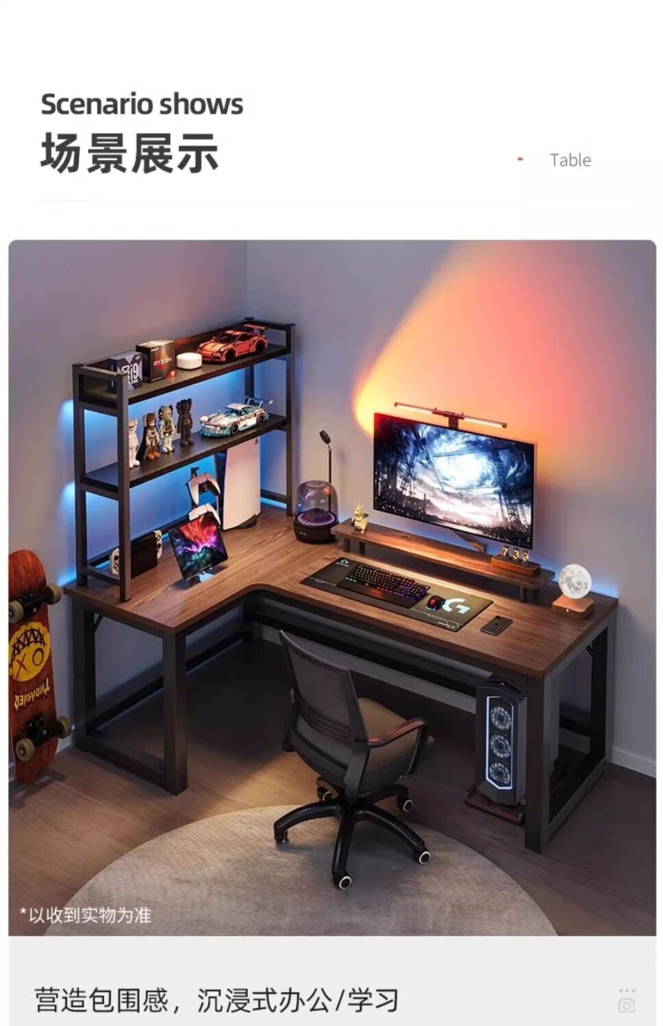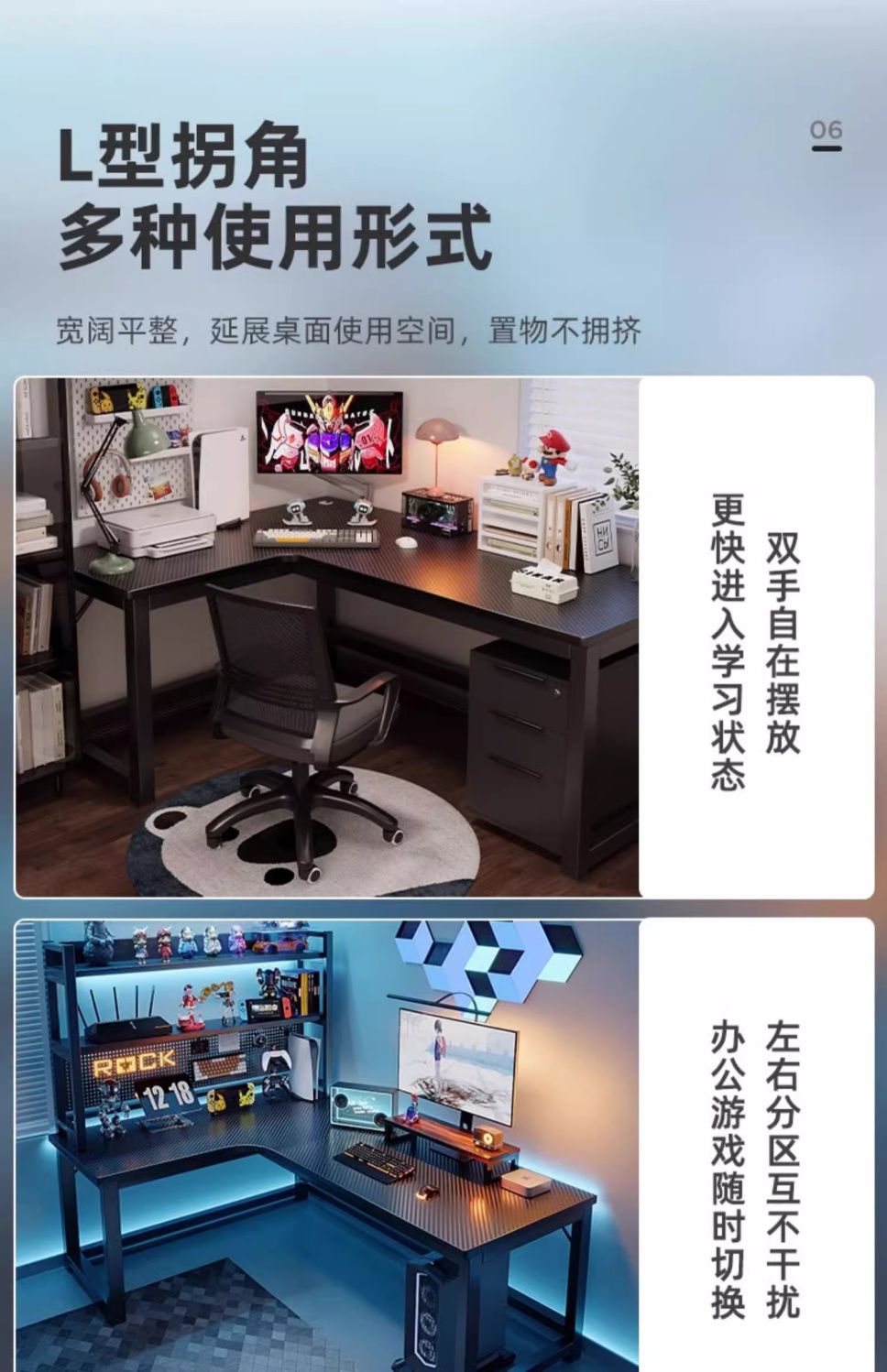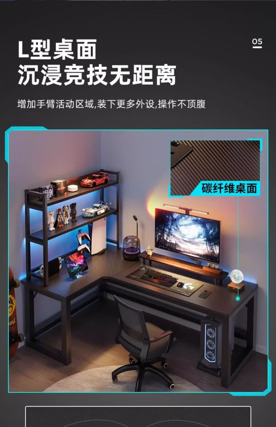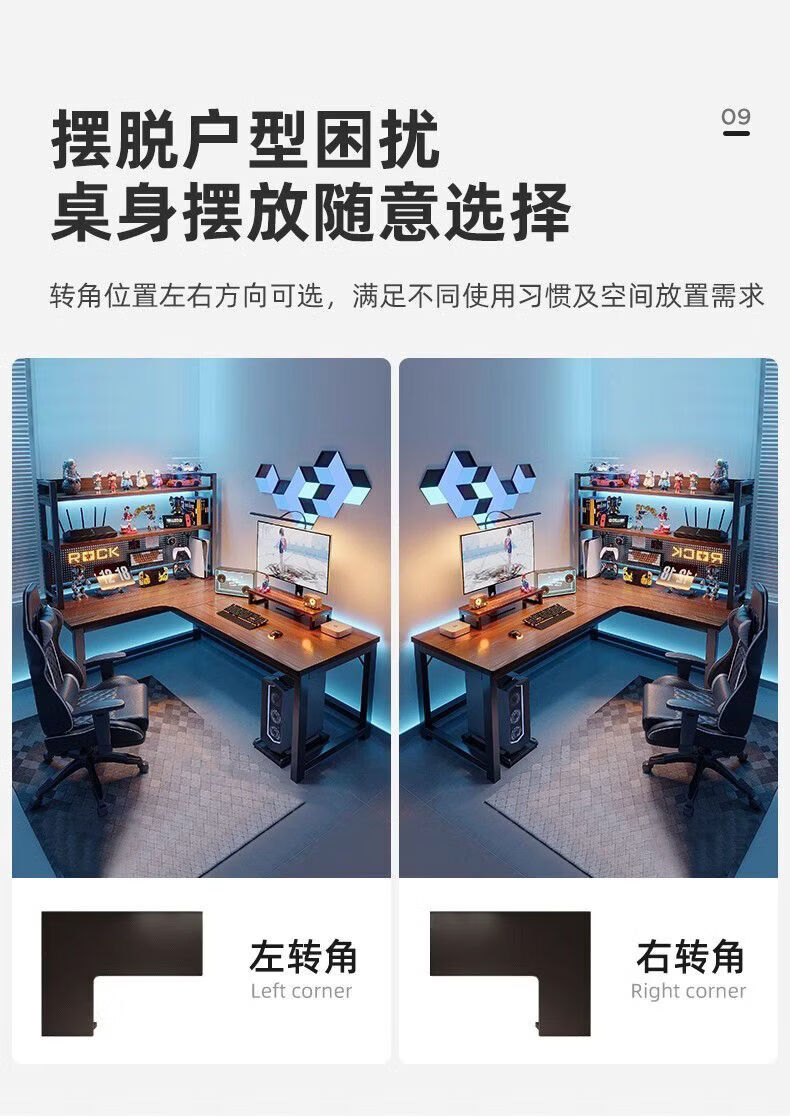 咏幻转角电脑桌卧室家用双人拐角电竞桌L型书桌书架一体组合办公桌子 转角可互换-80x50黑色