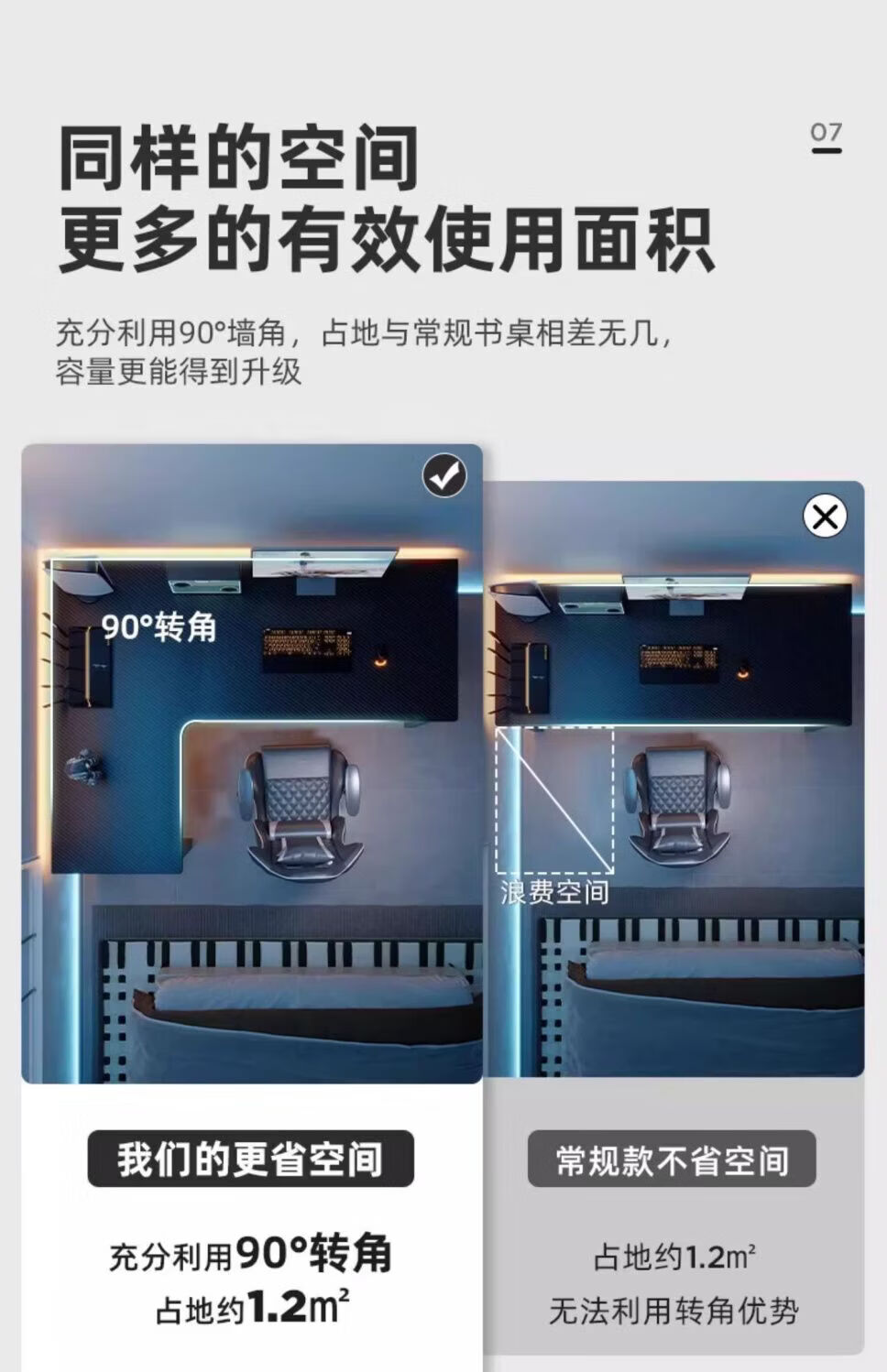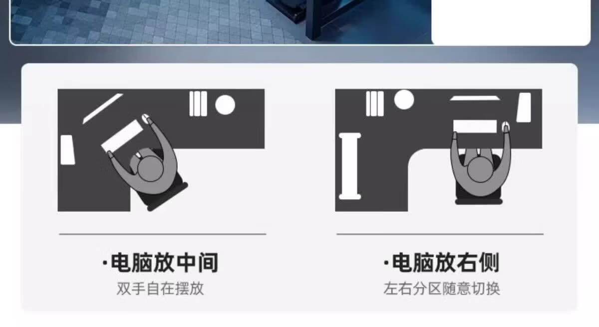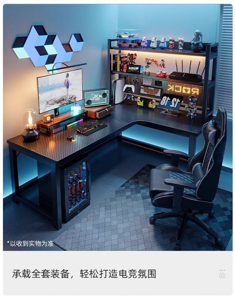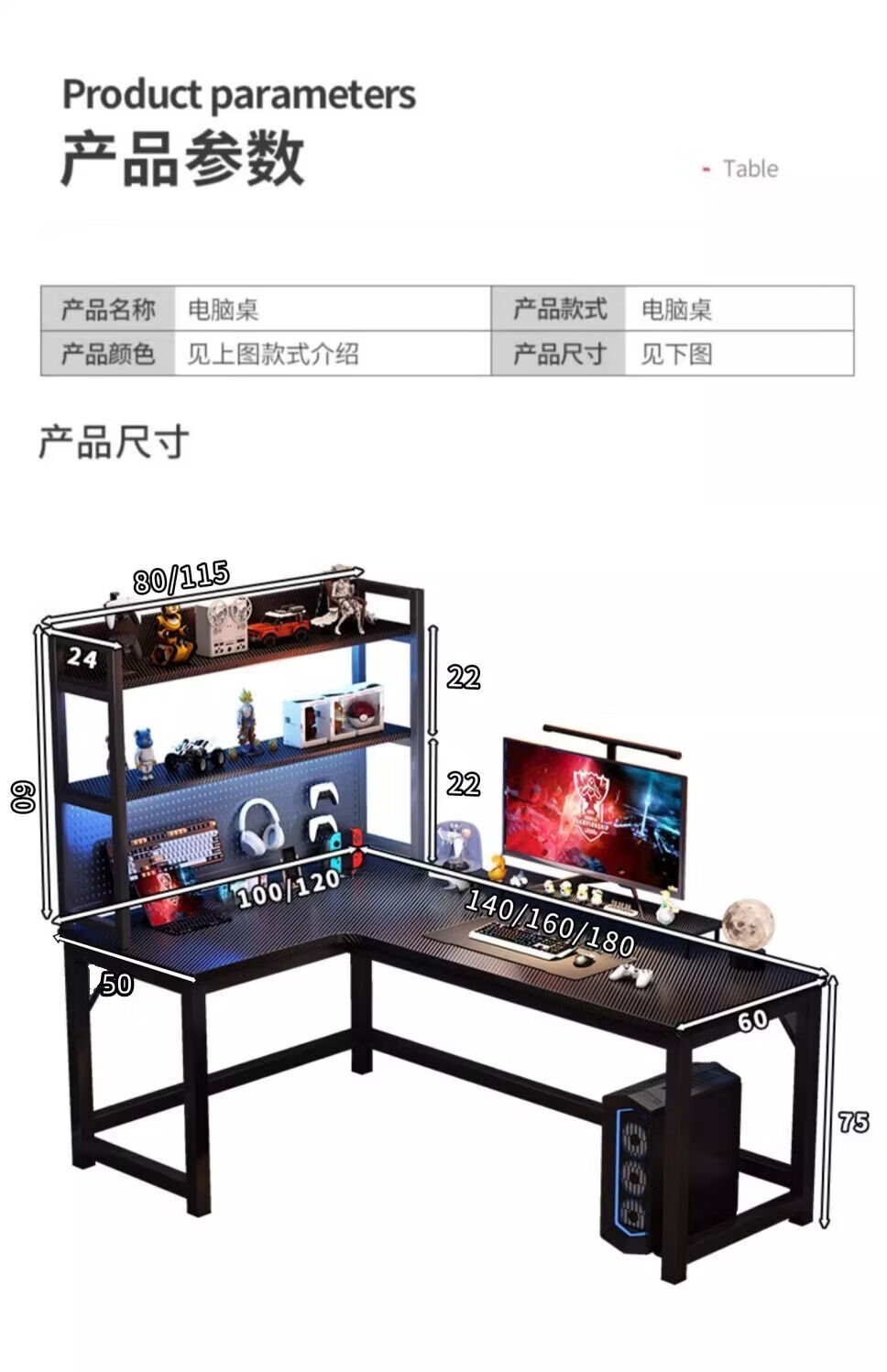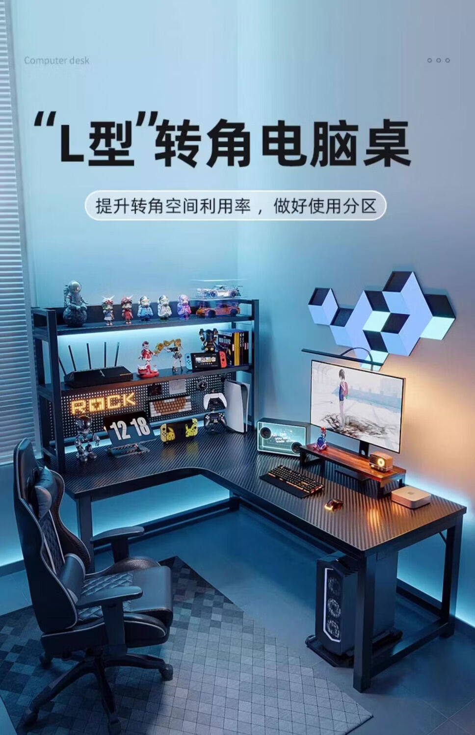 咏幻转角电脑桌卧室家用双人拐角电竞桌L型书桌书架一体组合办公桌子 转角可互换-80x50黑色