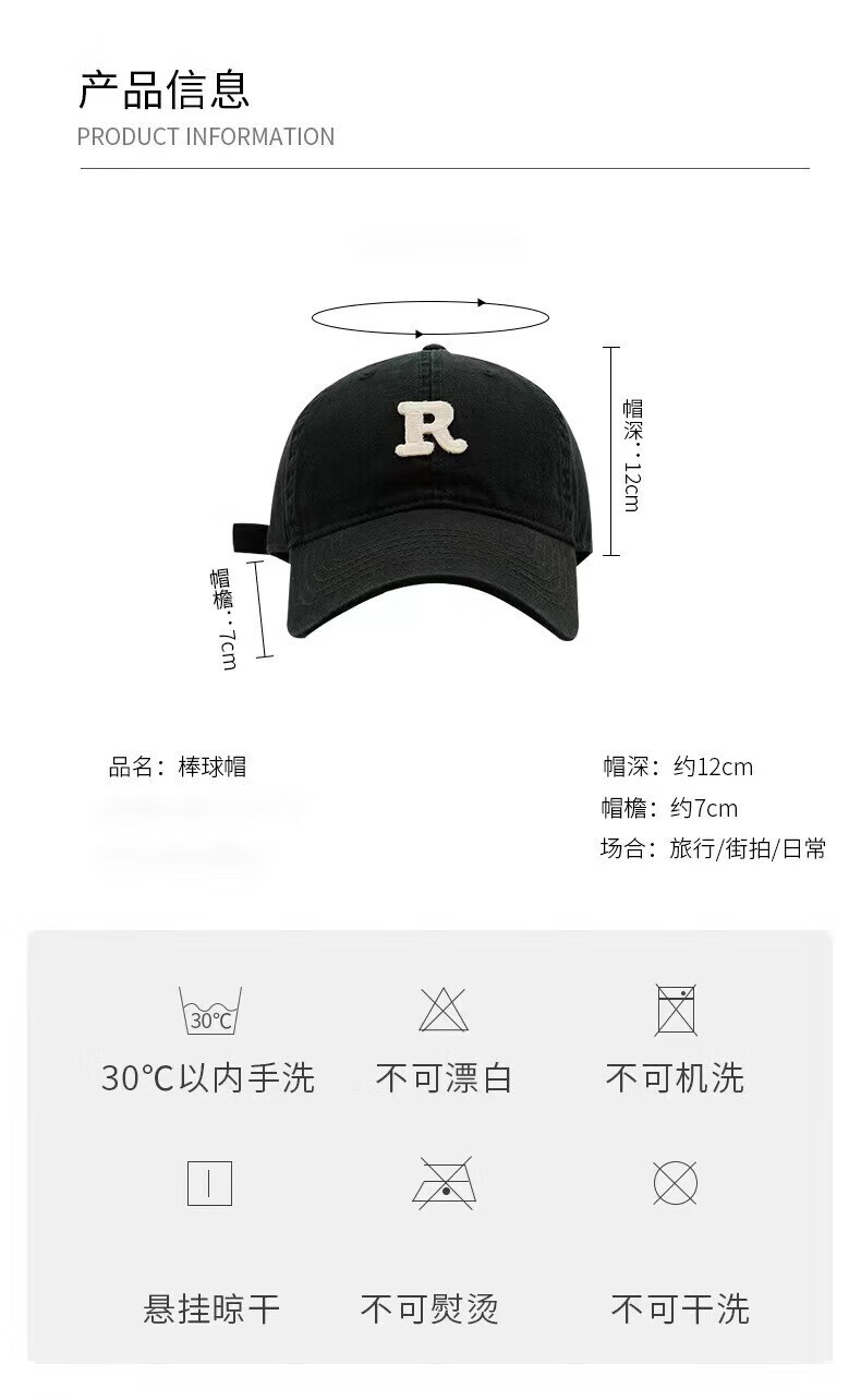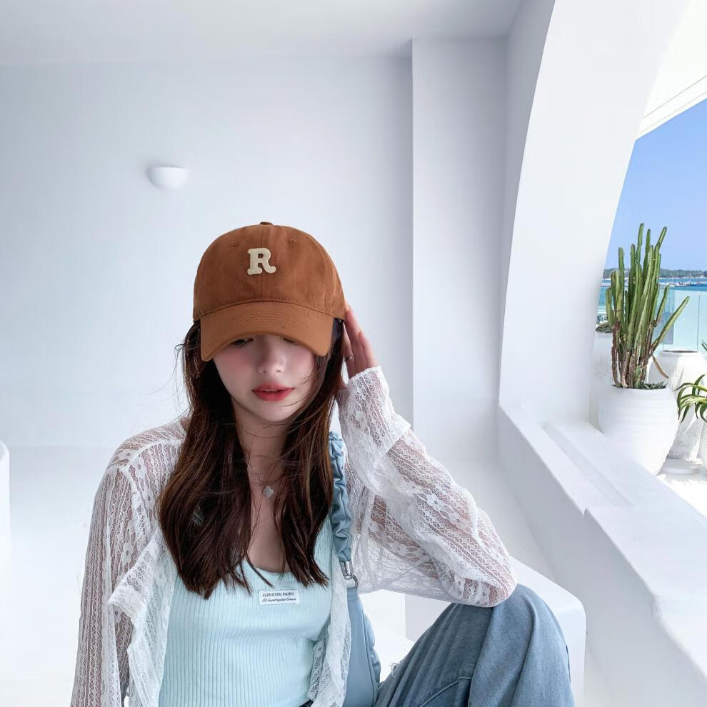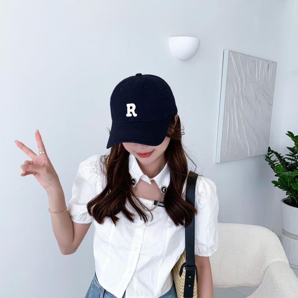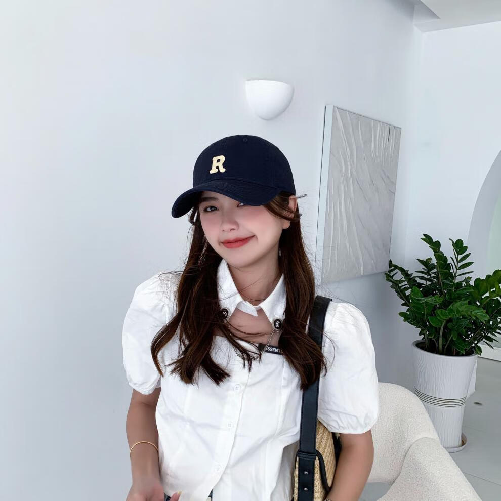 FOURDATRY帽子女夏季简约休闲鸭舌帽R标百搭字母棒球帽男士防晒帽 高品质款-宝蓝色贴布R字母 均码