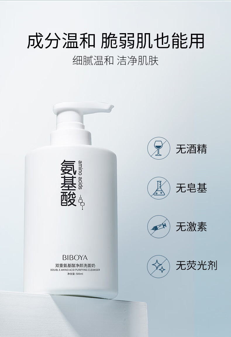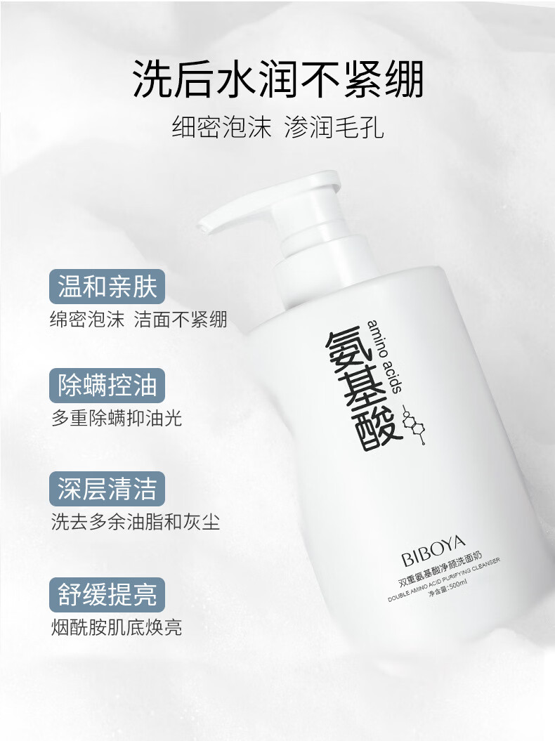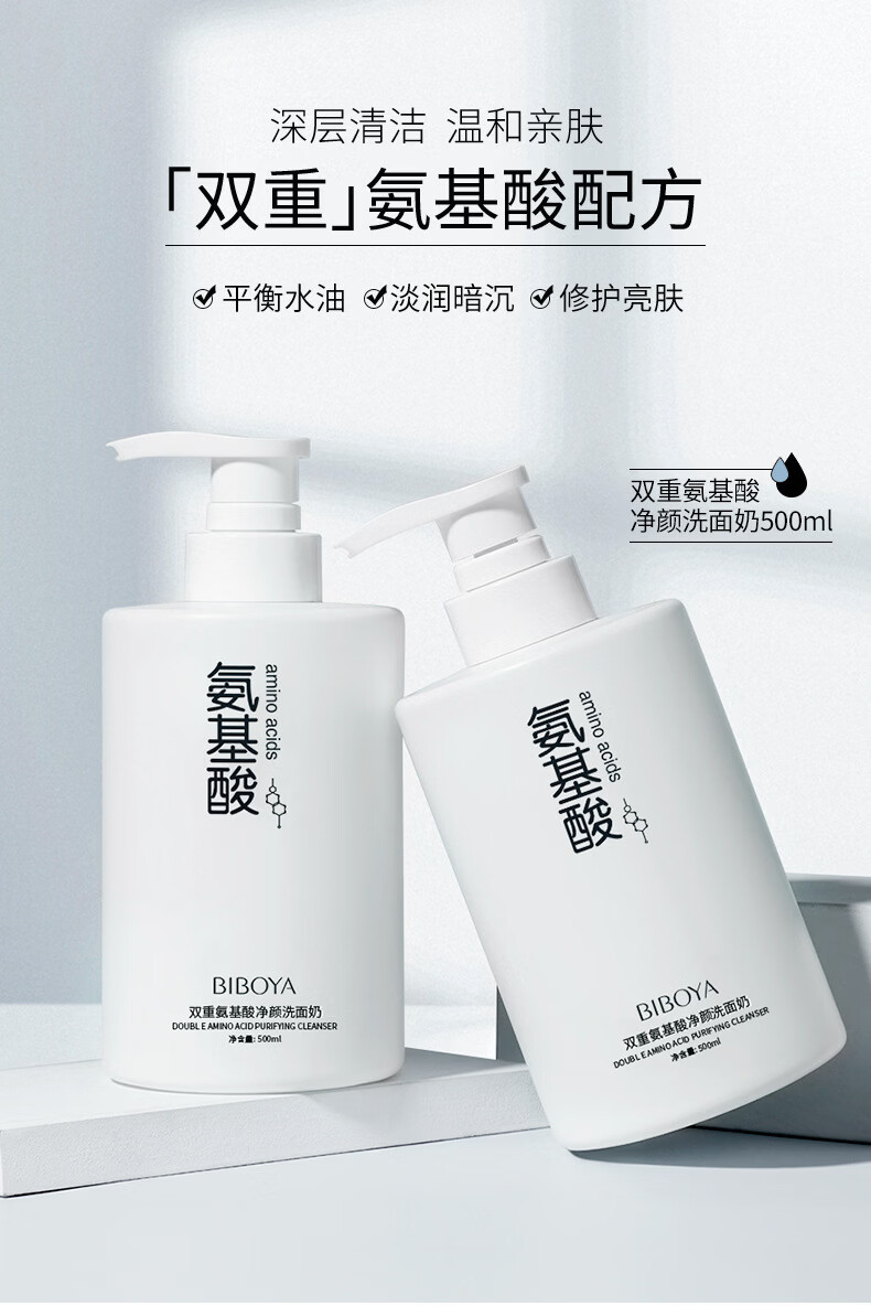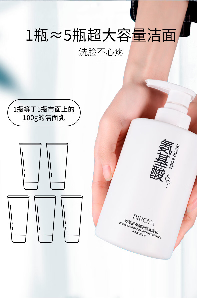 碧柏雅【厂家直发】双重氨基酸净颜洗面奶深层清洁保湿不紧绷洁面乳厂家 500ml 碧柏雅双重氨基酸净颜洗面奶(大瓶装