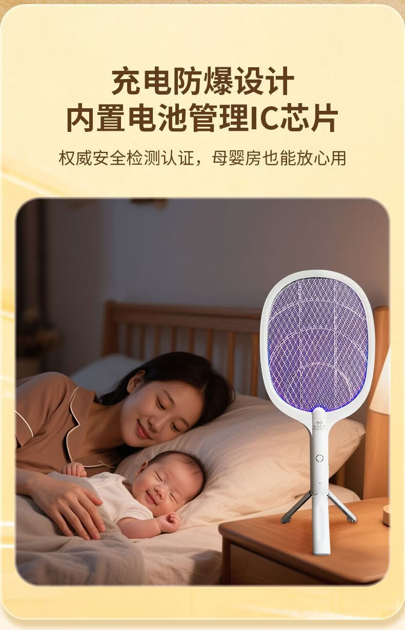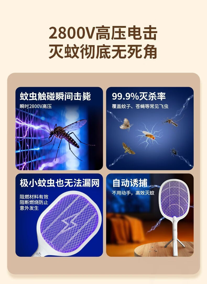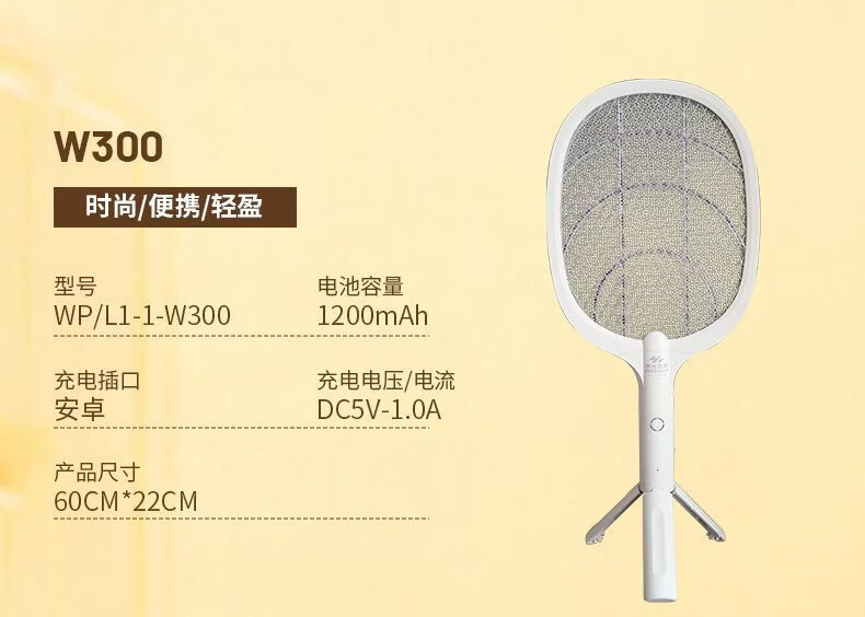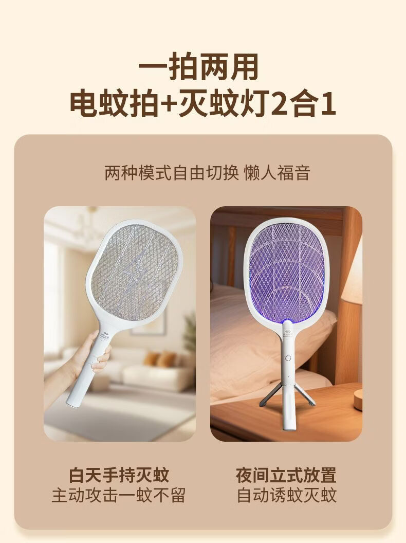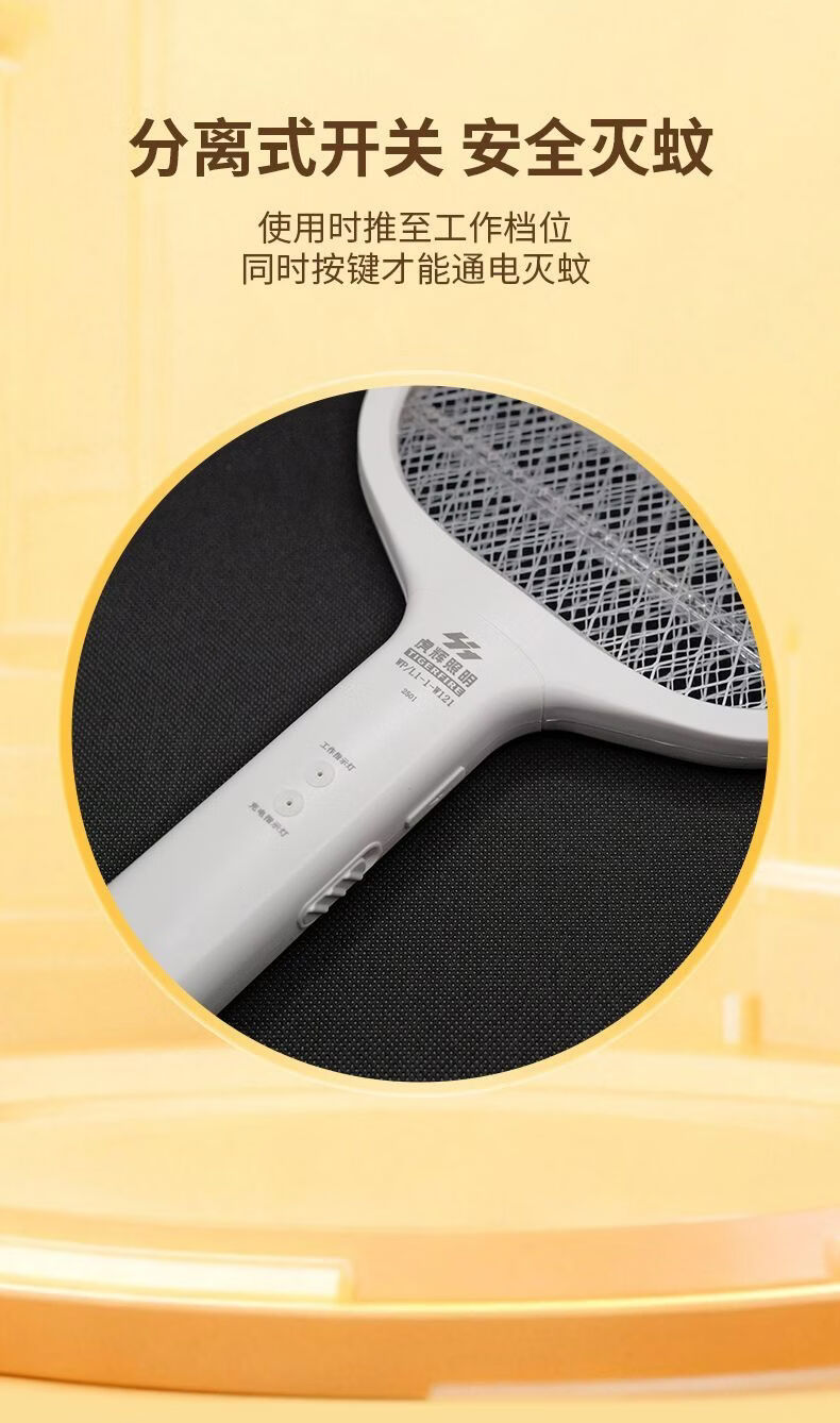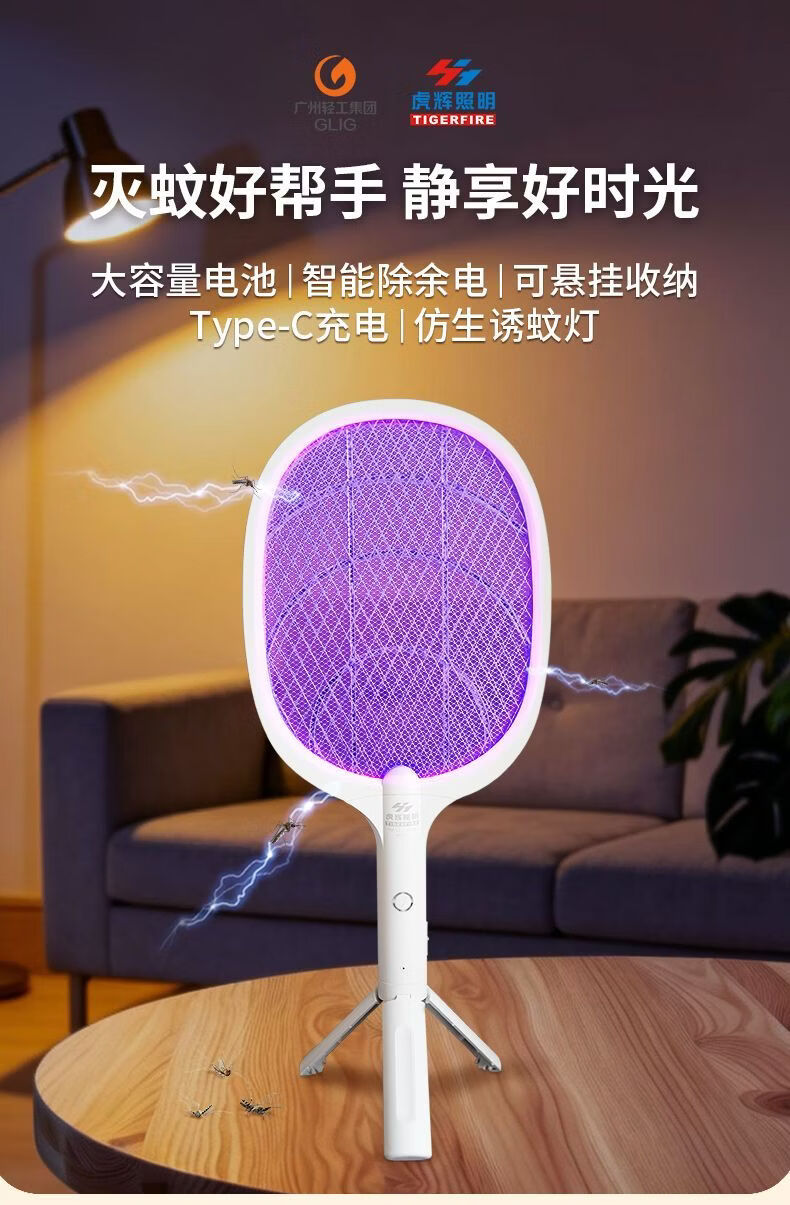 虎辉照明可充电家用锂电紫光自动诱蚊强劲电蚊拍1s消灭蚊神器二合一灭蚊灯 W300三脚架充电式电蚊拍带诱蚊灯(新国标)