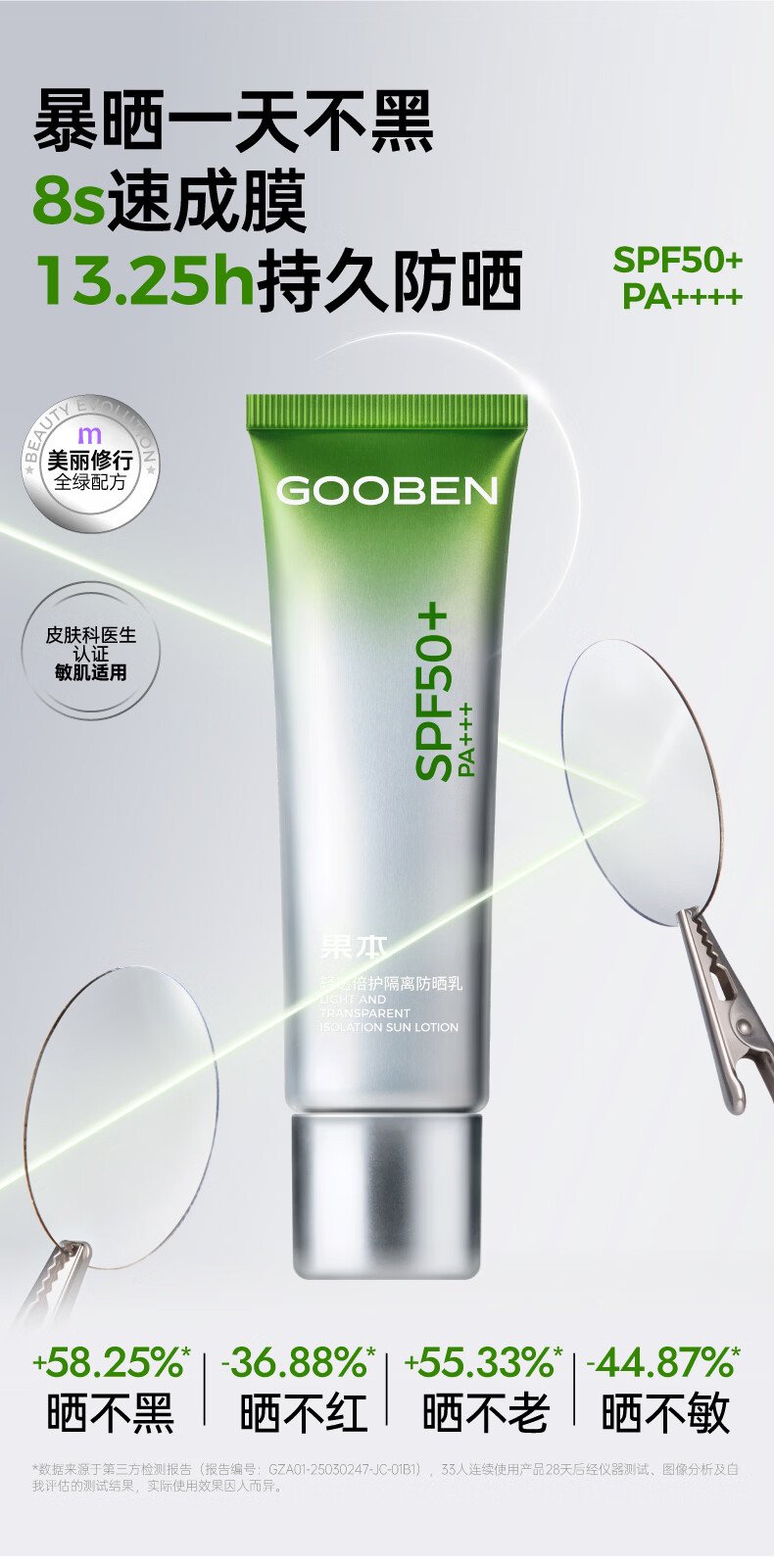 果本防晒霜 军训户外隔离清爽养肤美白防晒乳SPF50+PA+++ 高倍防晒乳30g*2支