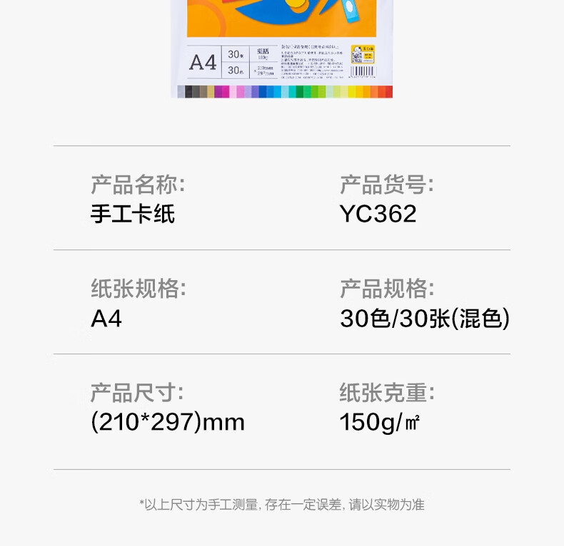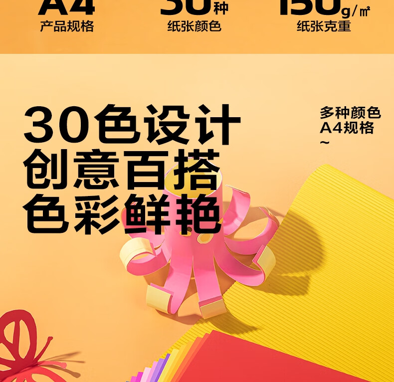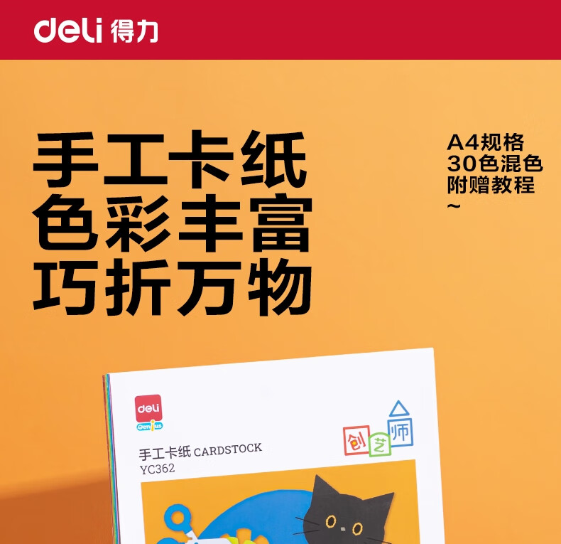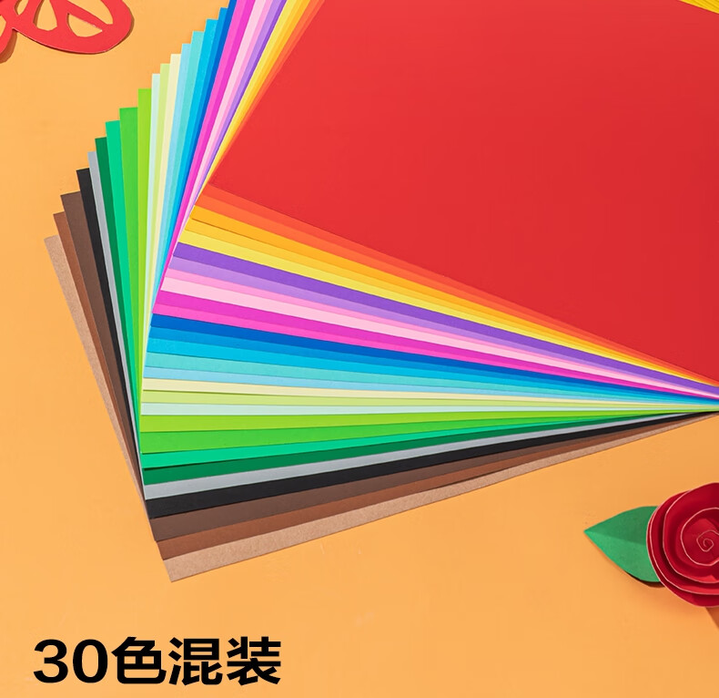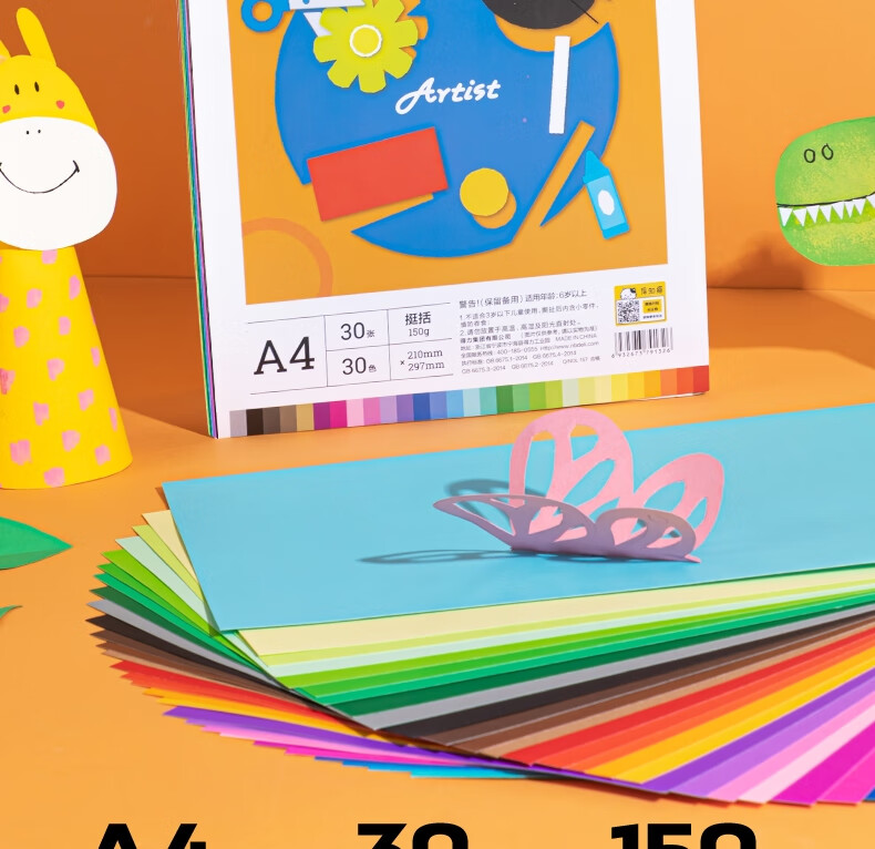 得力(deli)30色30张彩色手工卡纸A4硬卡纸加厚150g彩纸剪纸手工DIY绘画美工彩纸 儿童学生幼儿园生日开学礼物
