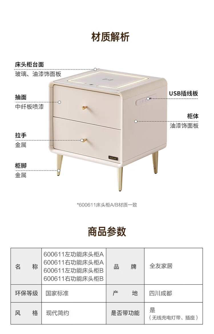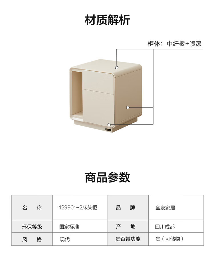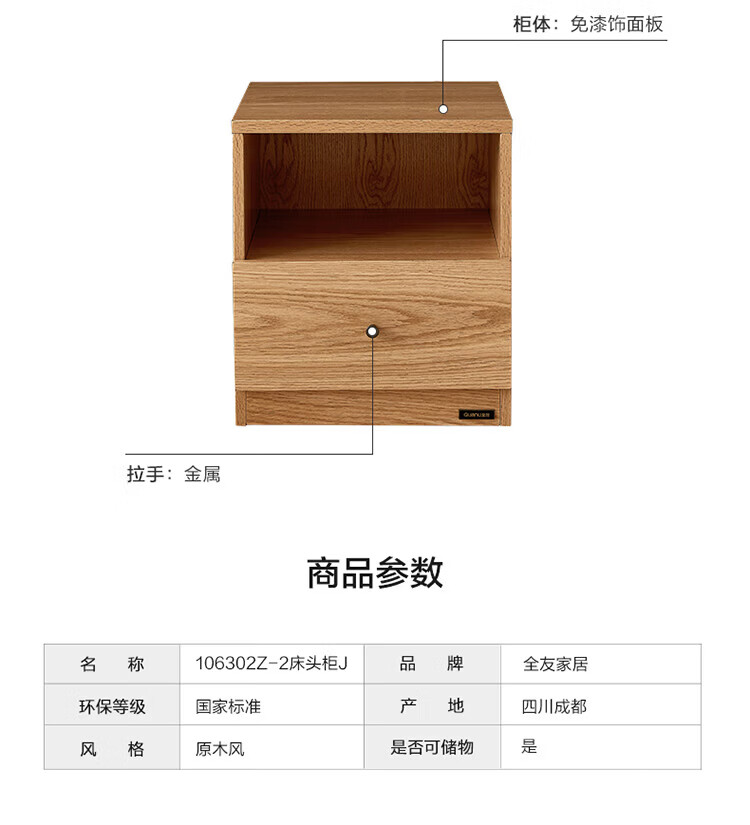 全友(QUANU)家居【床头柜合集】小型收纳储物柜卧室小桌子客厅边角柜斗柜家具 127801床头柜
