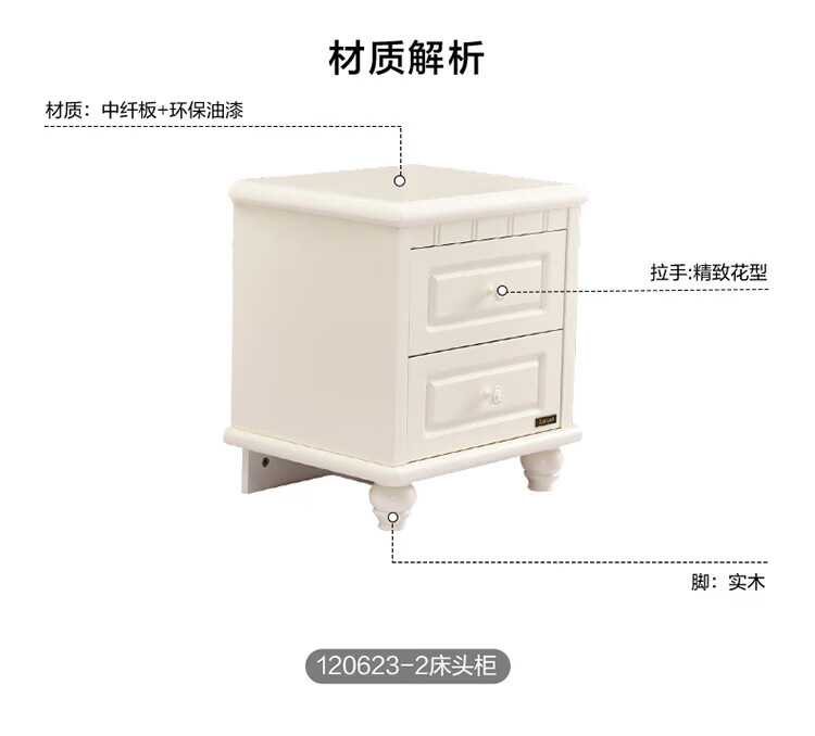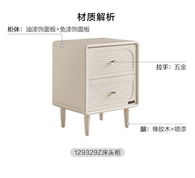 全友家居奶油风法式复古斗柜家用卧室储物收纳柜床尾柜客厅沙发边柜 【米白】储物柜