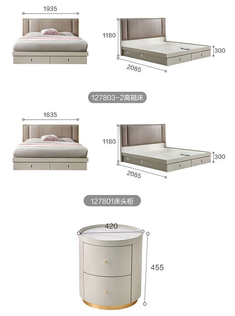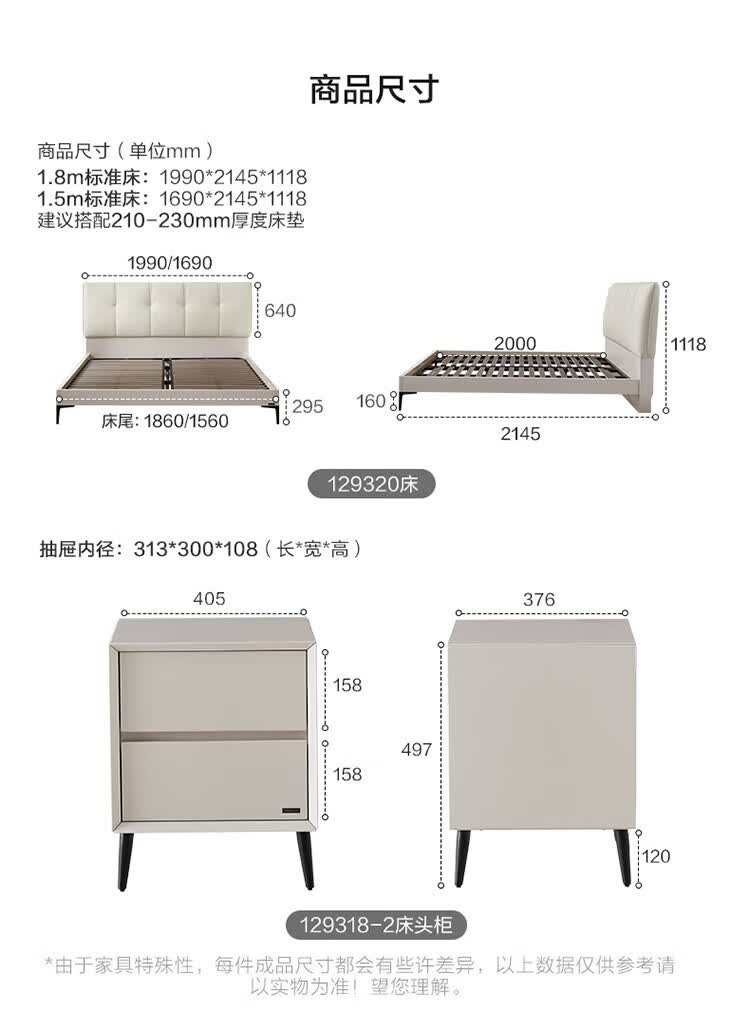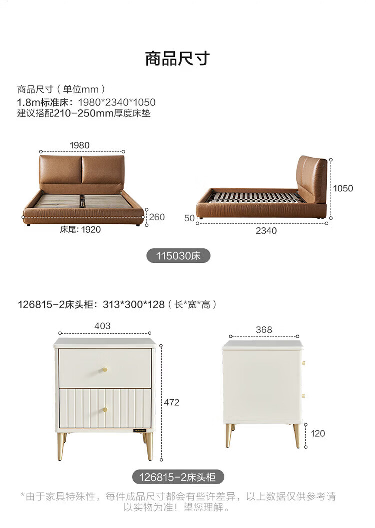 全友家居奶油风茉伊真皮床轻奢高级感2026年新款头层牛皮软包靠背床 【猫抓皮 | 米白 | 高脚】 1.2米x2米 床+床头柜*2+床垫