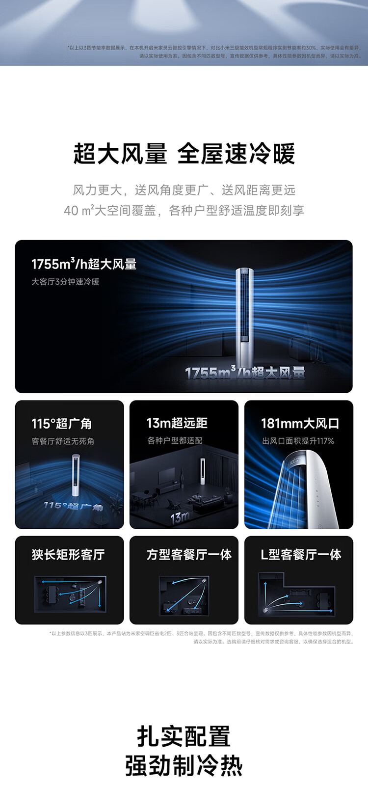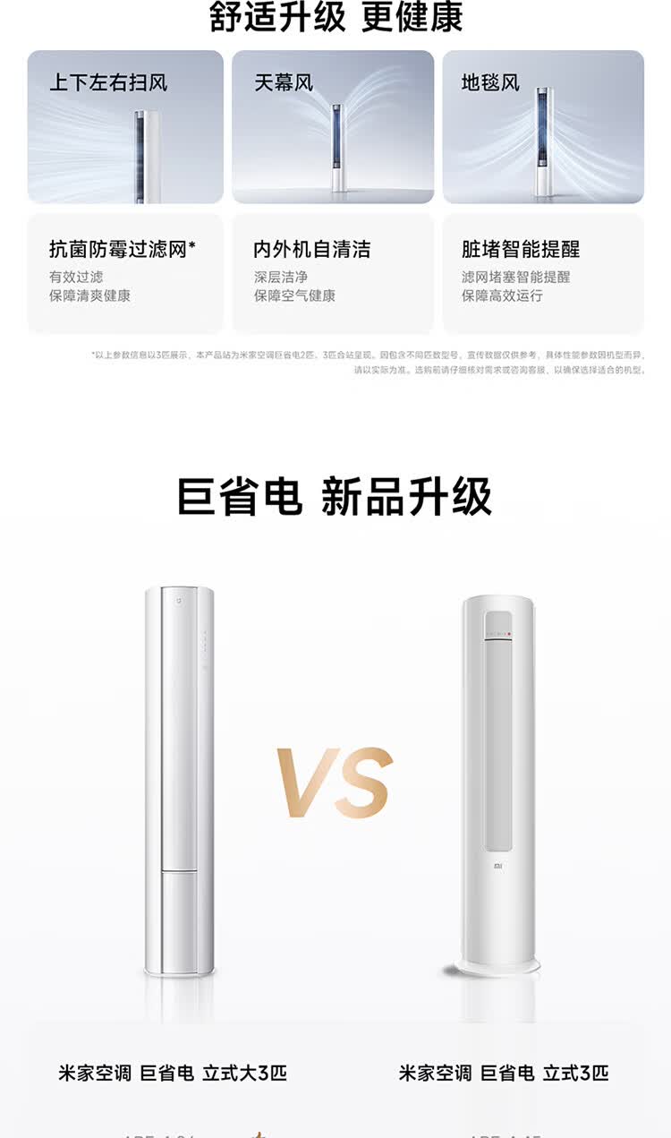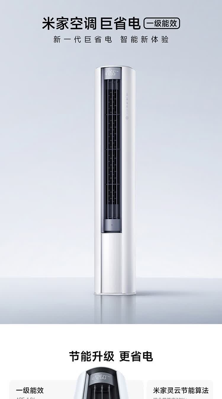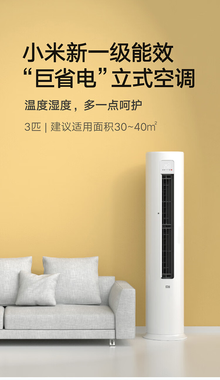 小米立式空调 巨省电 新一级变频冷暖客厅温湿双控智能柜机节能空调大广角超远距送风 国家补贴 巨省电 2026款 大3匹 1755m³/h大风量