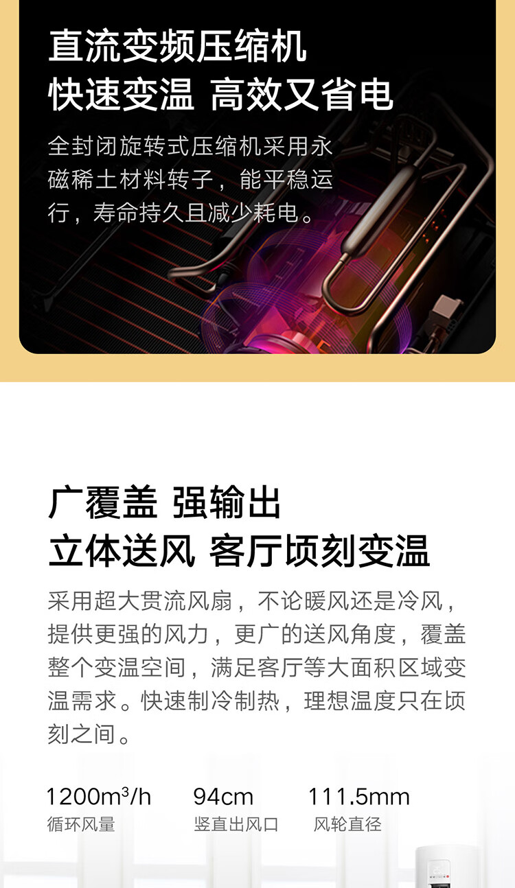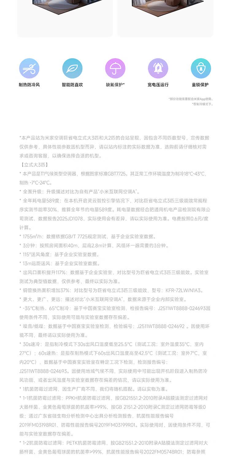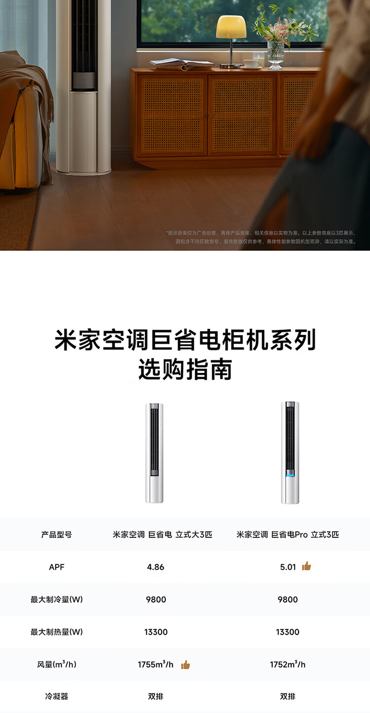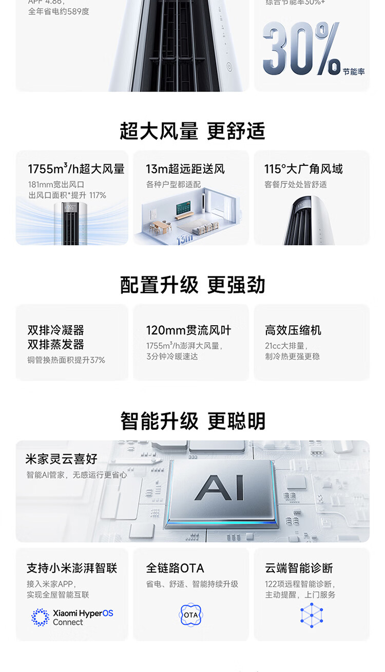 小米立式空调 巨省电 新一级变频冷暖客厅温湿双控智能柜机节能空调大广角超远距送风 国家补贴 巨省电 2026款 大3匹 1755m³/h大风量