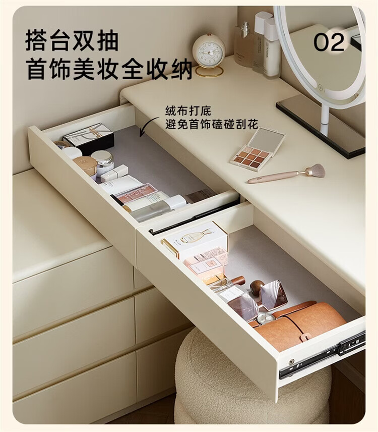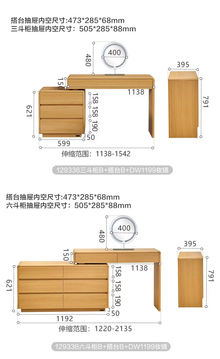 全友家居现代简约风斗柜家用伸缩化妆台斗柜卧室储物用收纳置物小柜子 【原木色】三斗柜
