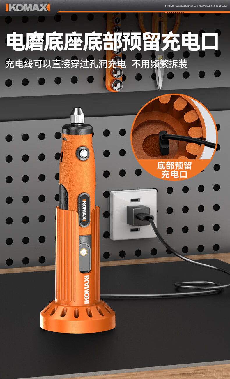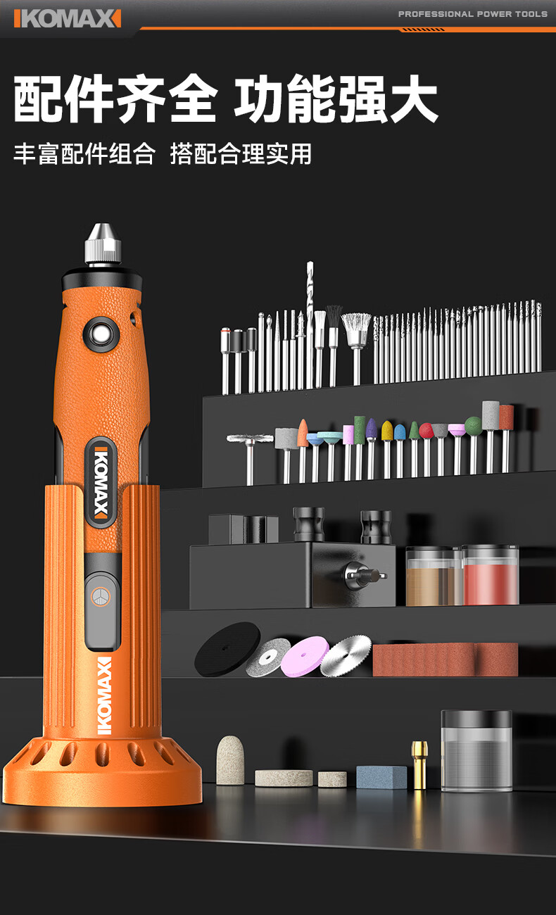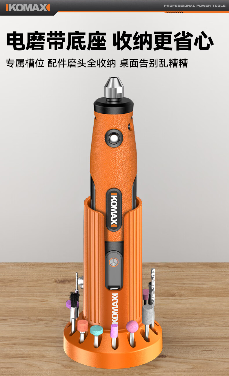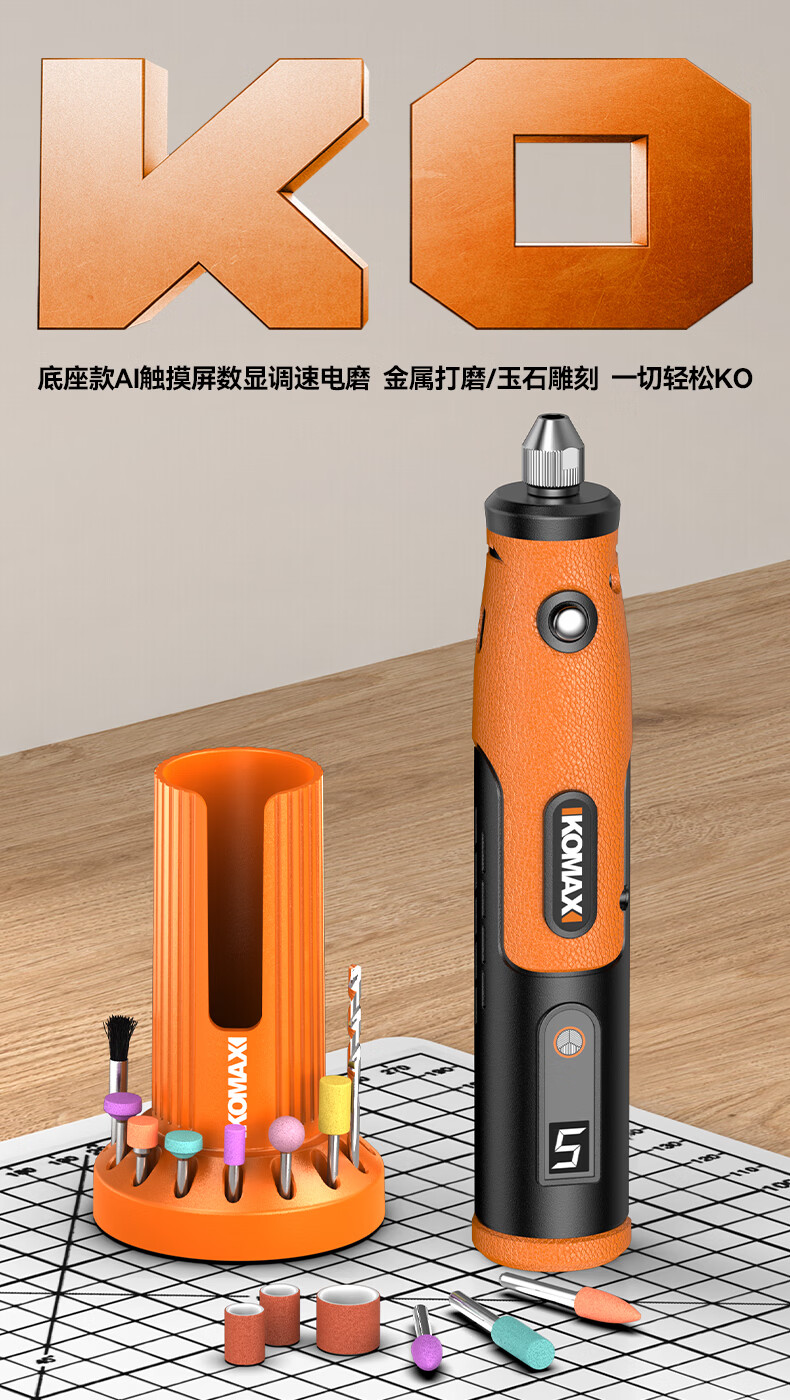 科麦斯(KOMAX)AI触摸屏数显电磨便携式充电底座锂电切割打磨抛光神器 橙色底座款/高低双速简配