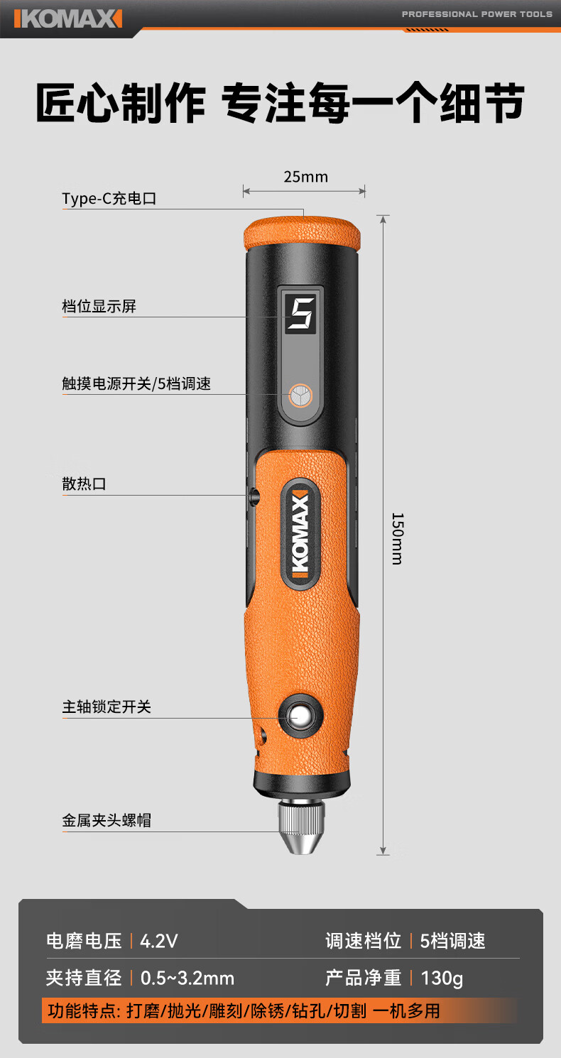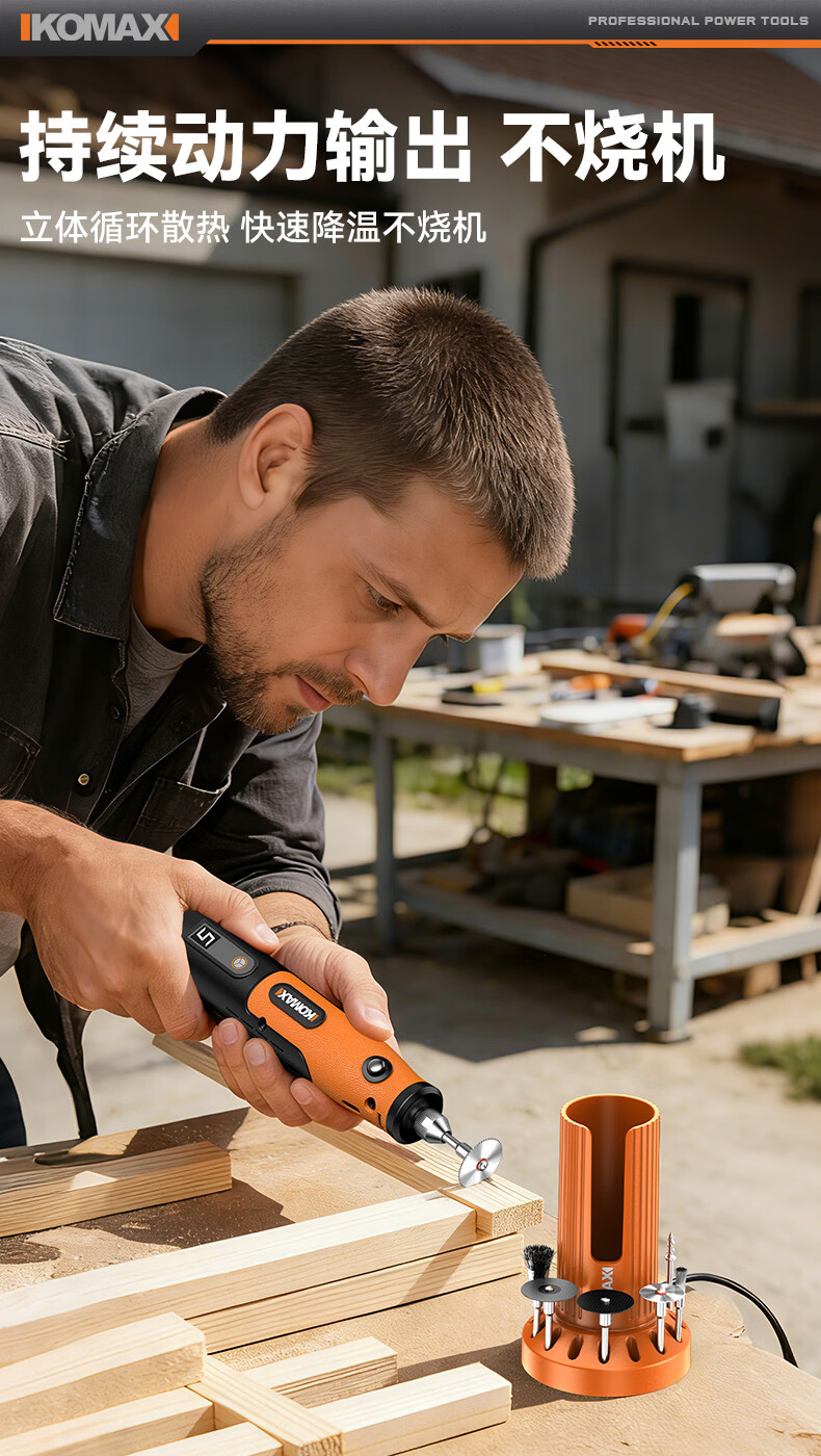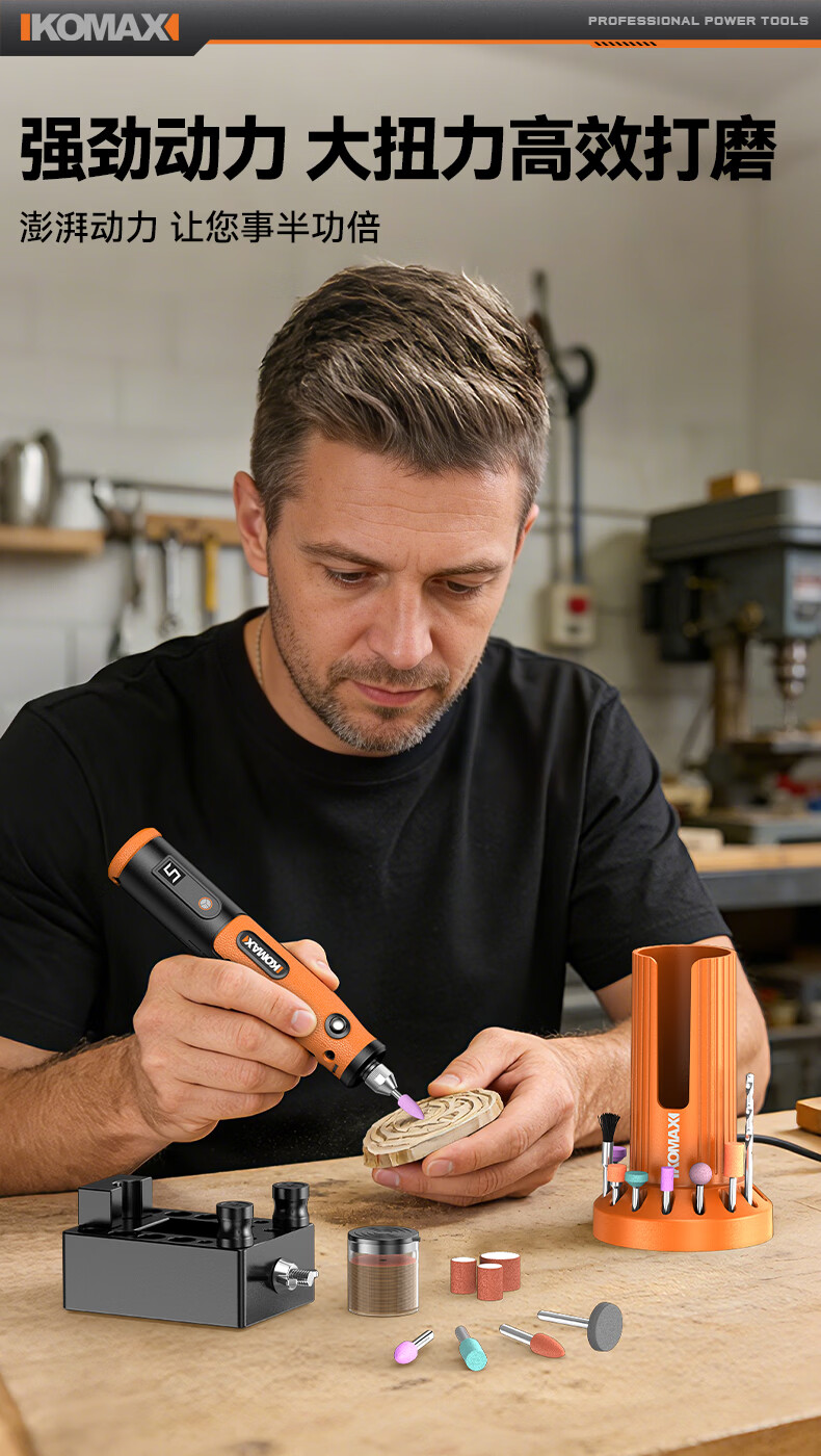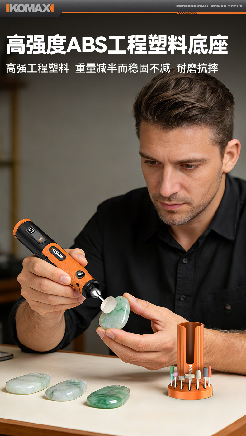 科麦斯(KOMAX)AI触摸屏数显电磨便携式充电底座锂电切割打磨抛光神器 橙色底座款/高低双速简配