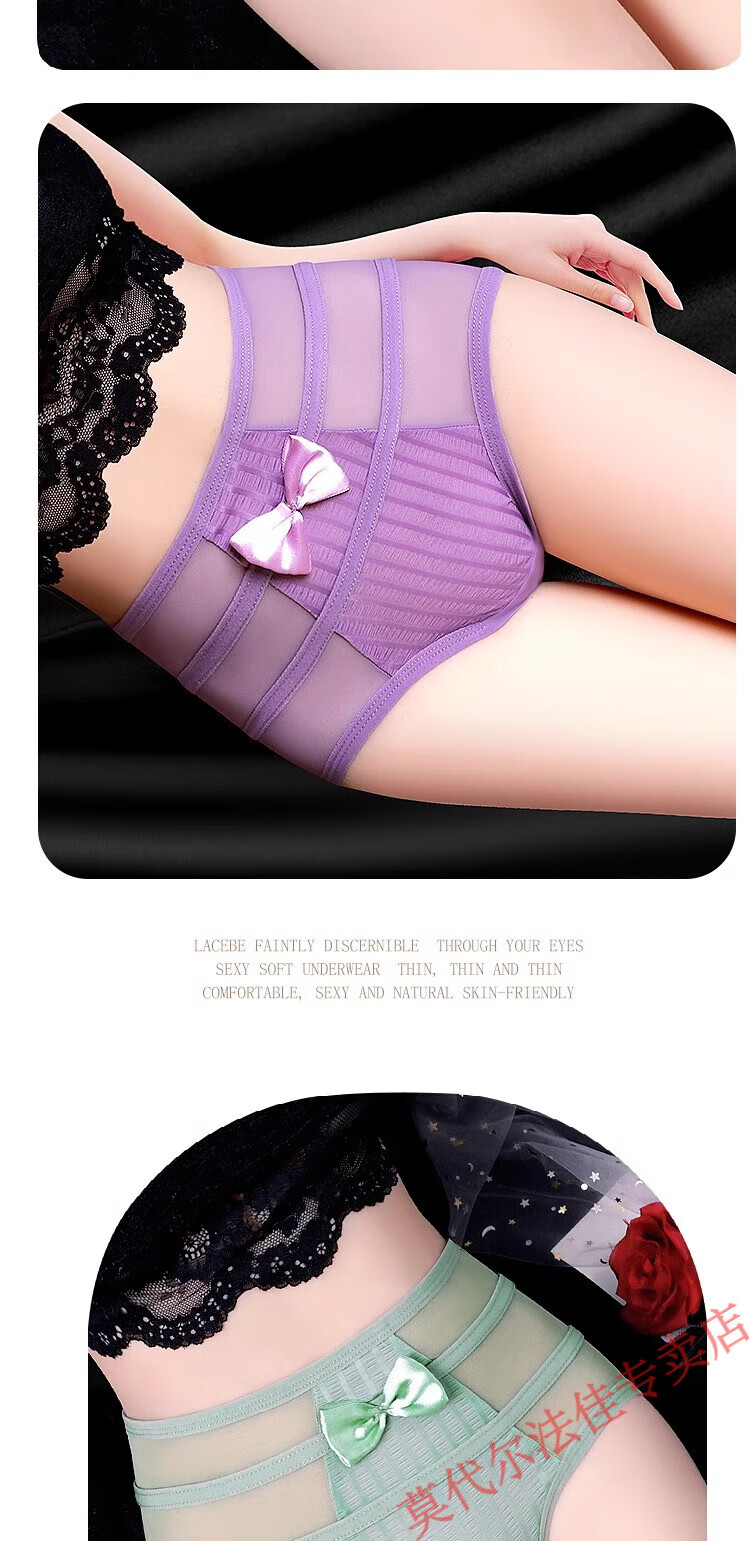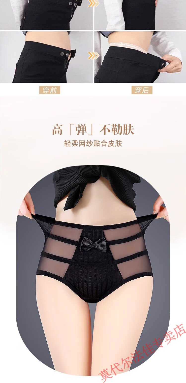 莫代尔高腰收腹收小肚子内裤女生性感蕾丝2026新款大码胖mm女士三角裤 【4条收腹款】503紫色+黄色+红色+黑色 S 体重80-105斤