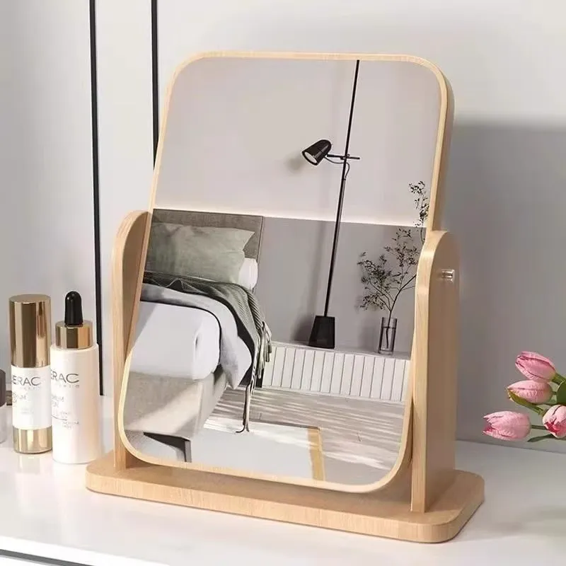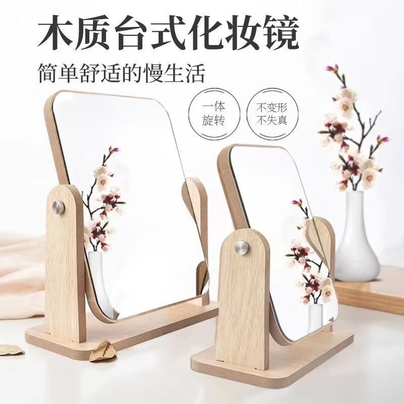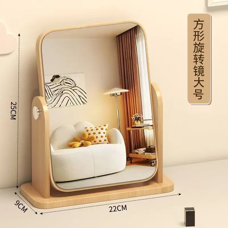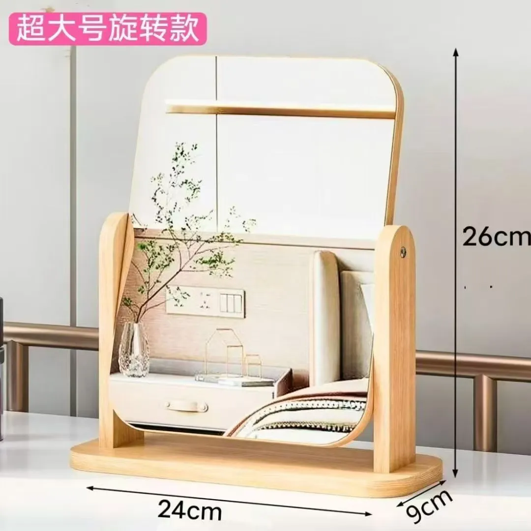 镜子化妆镜学生宿舍梳妆台梳妆镜大号木质旋转镜卧室家用台式桌面 超大号方形木质旋转镜