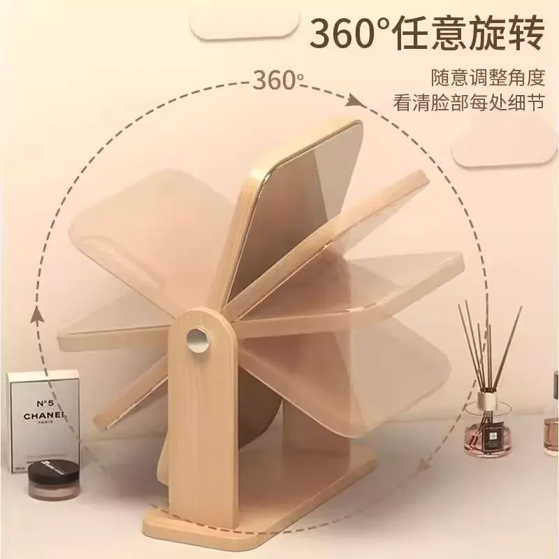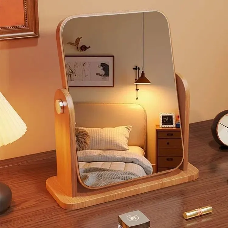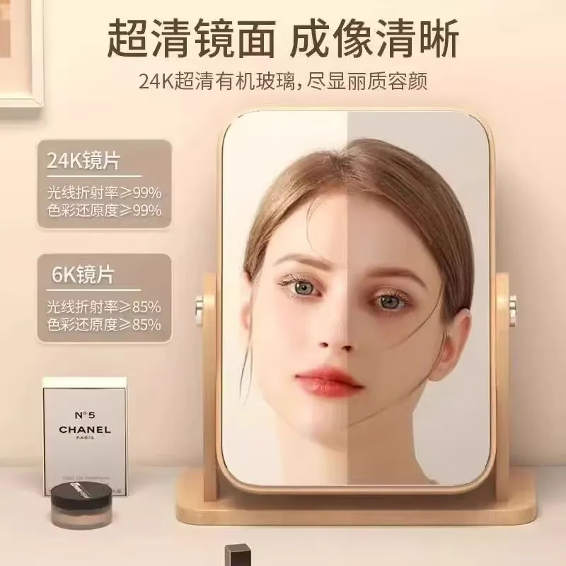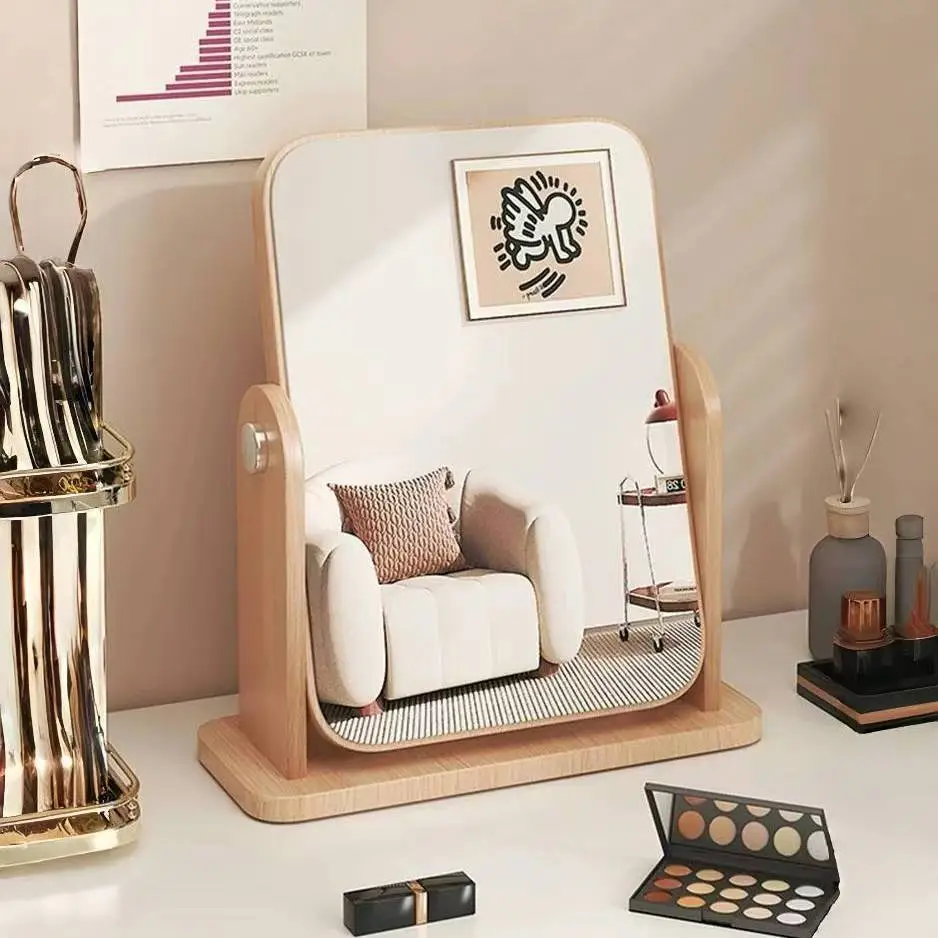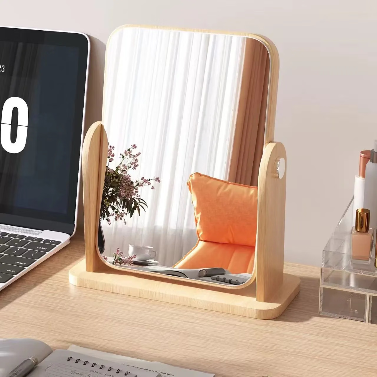 镜子化妆镜学生宿舍梳妆台梳妆镜大号木质旋转镜卧室家用台式桌面 超大号方形木质旋转镜