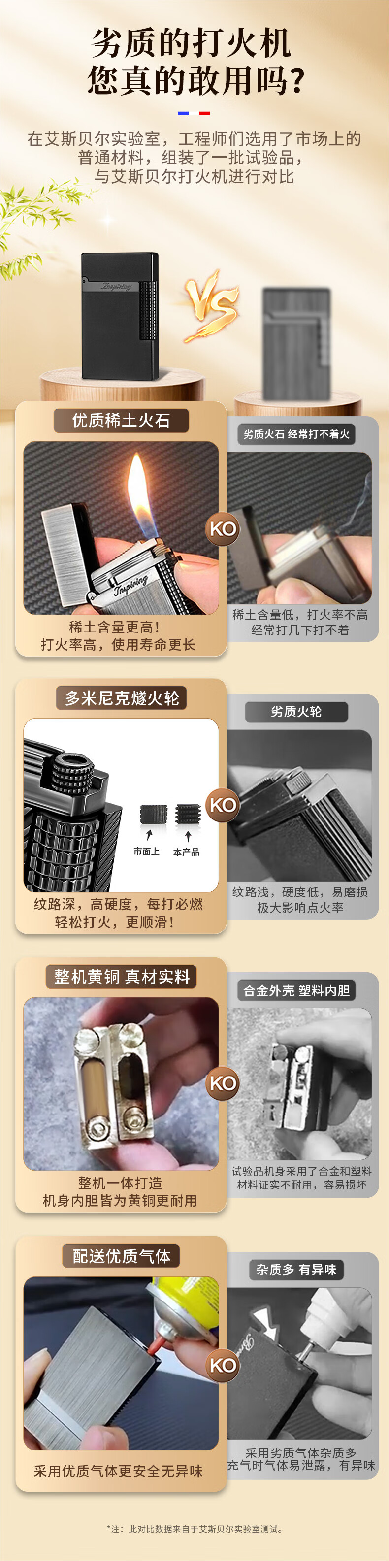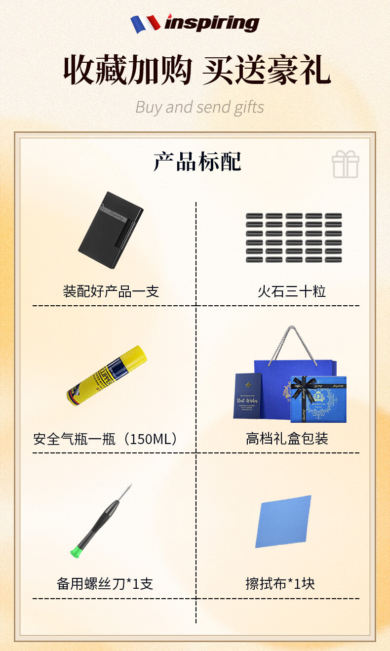 艾斯贝尔正品高端磨砂充气朗声打火机男士高级感定制送男生礼物实用成年人 备用火石 30个