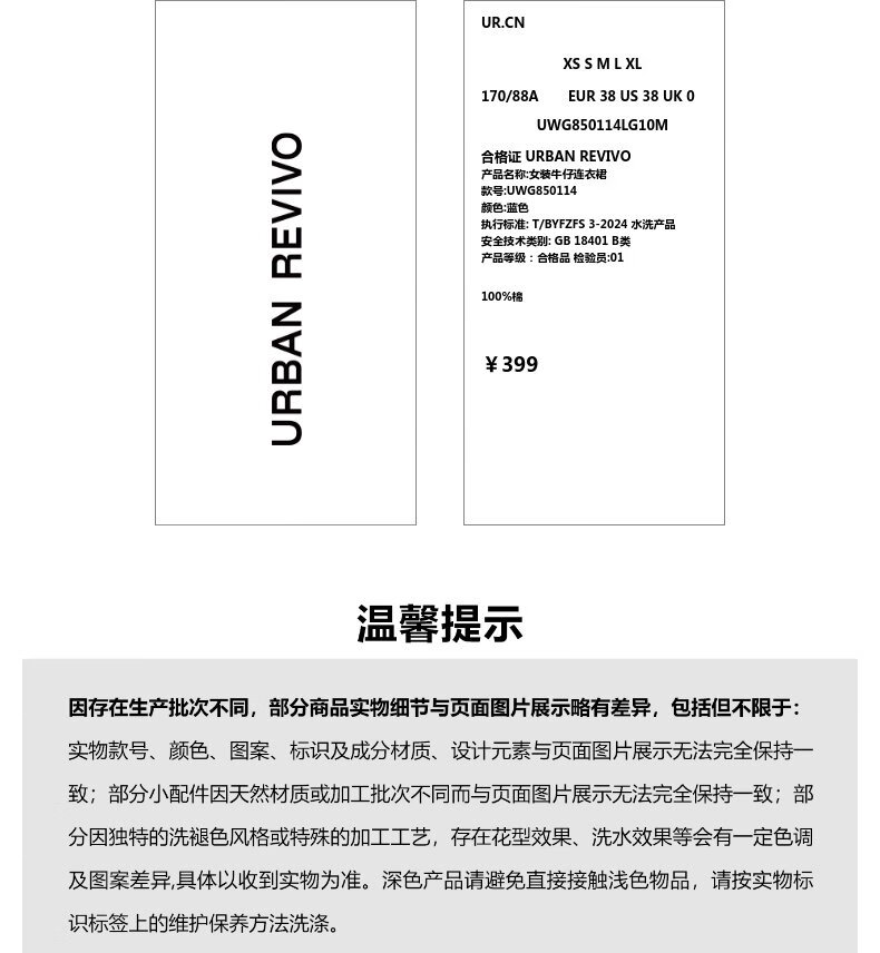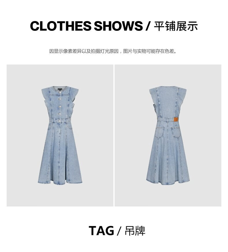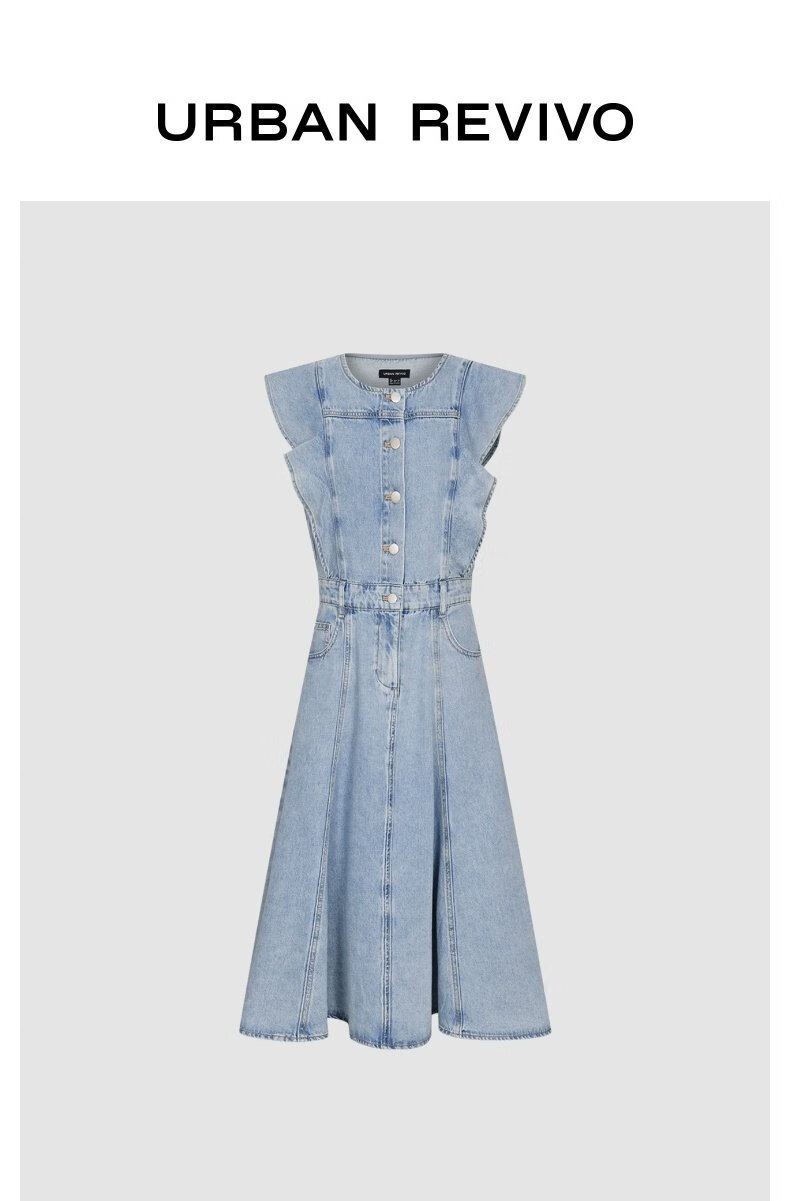 UR2025夏季新款女装复古牛仔荷叶边牛仔连衣裙UWG850114