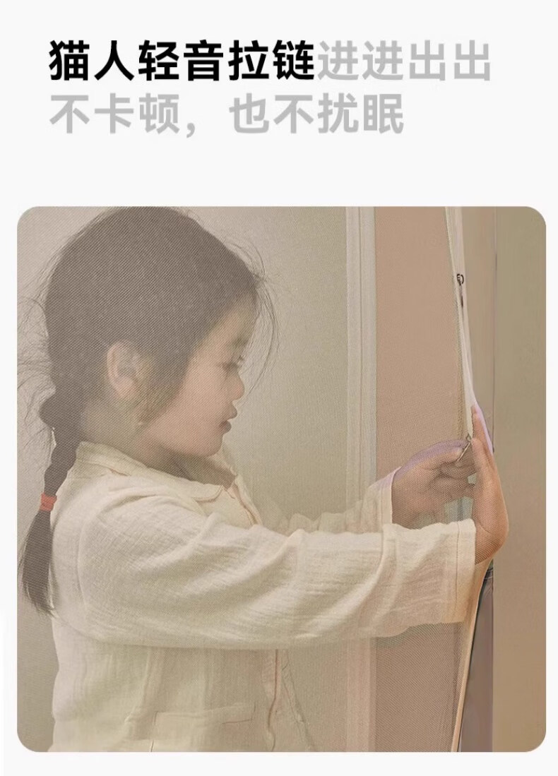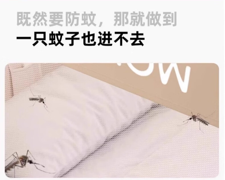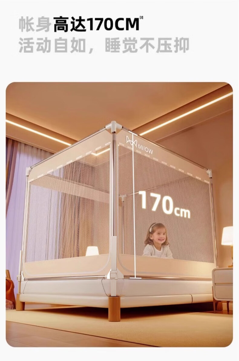 美朵嘉A类婴儿防摔蚊帐架家用三开门卧室拉链防摔1.51.8*2米方顶床围栏 经典款【单独蚊帐】浅米 加厚稳固 180cm*198cm*170cm