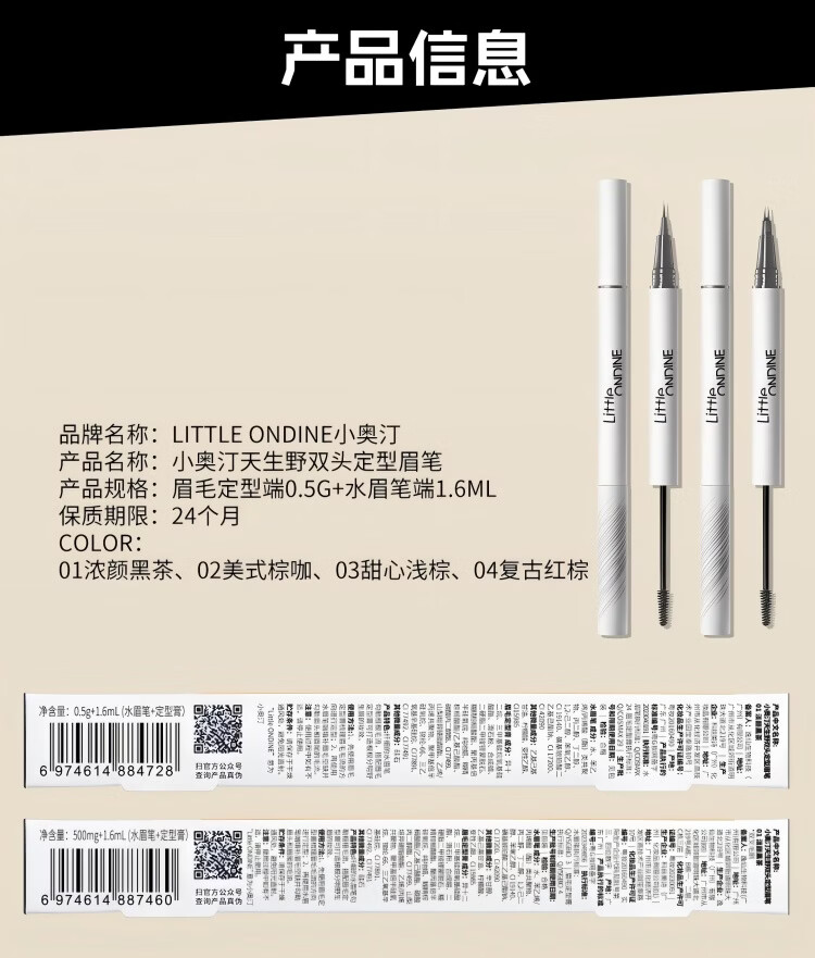 屈臣氏小奥汀天生野双头定型眉笔 02美式棕咖 500mg+1.6ml
