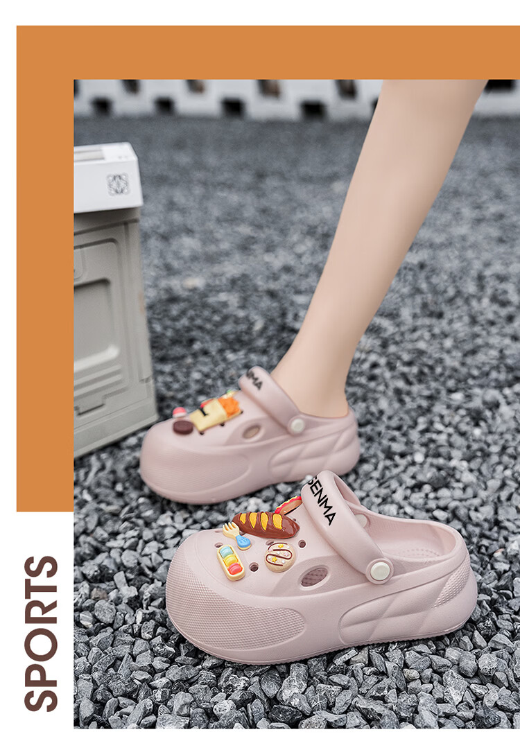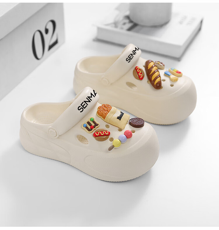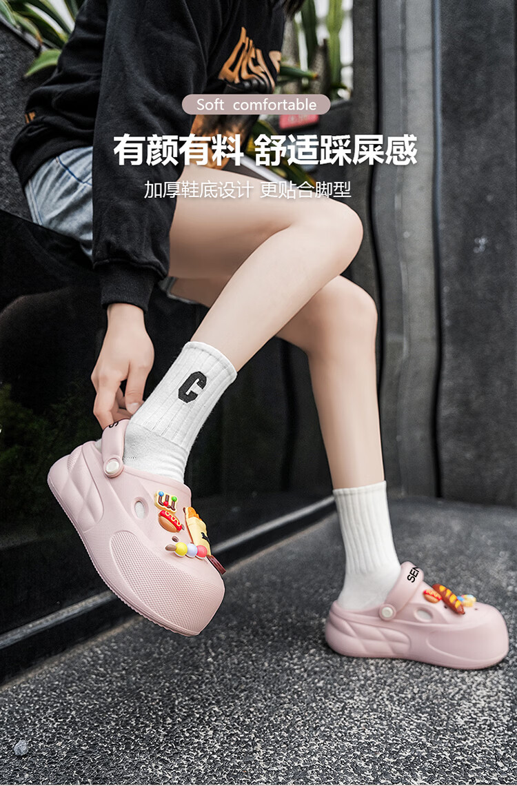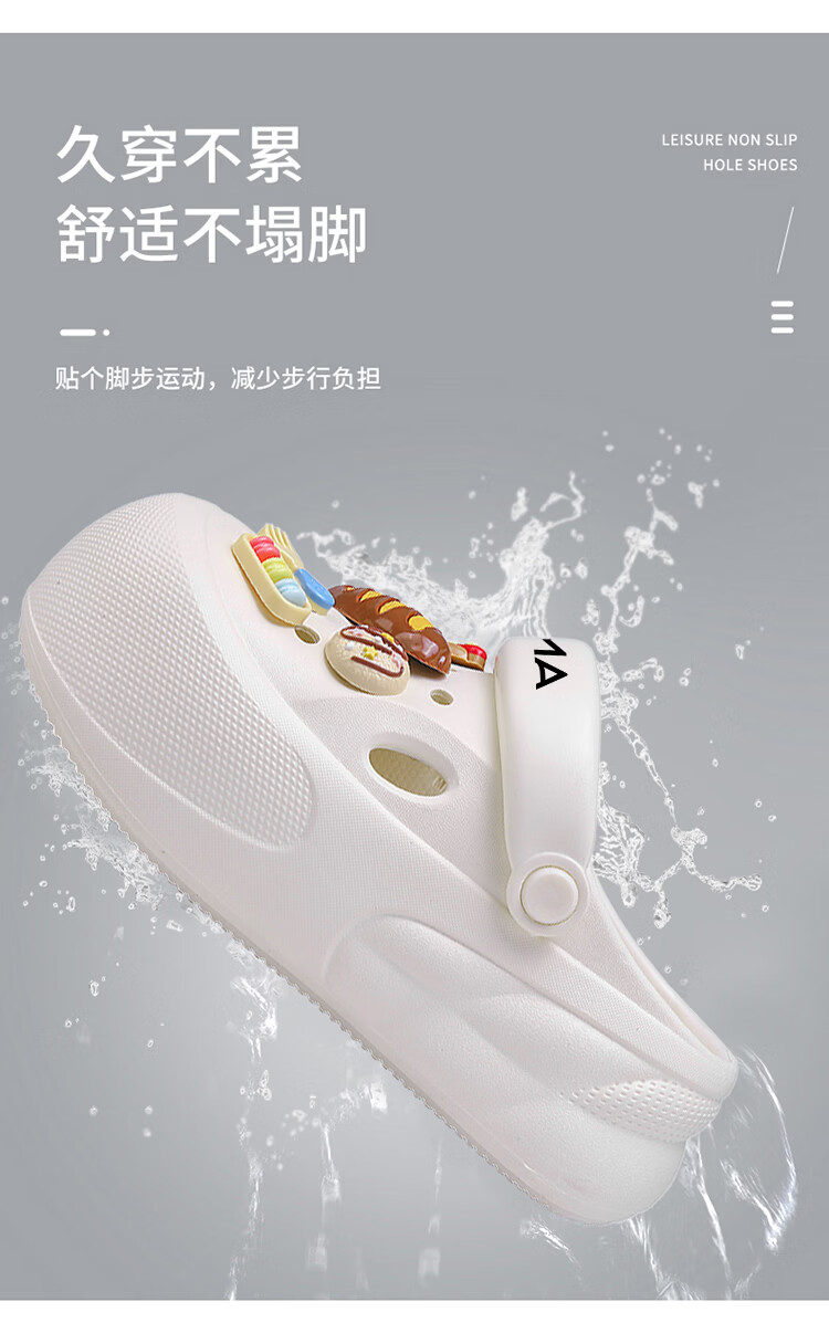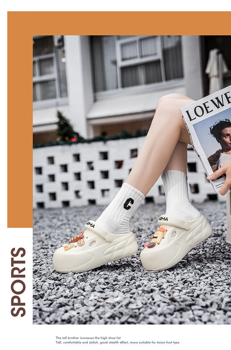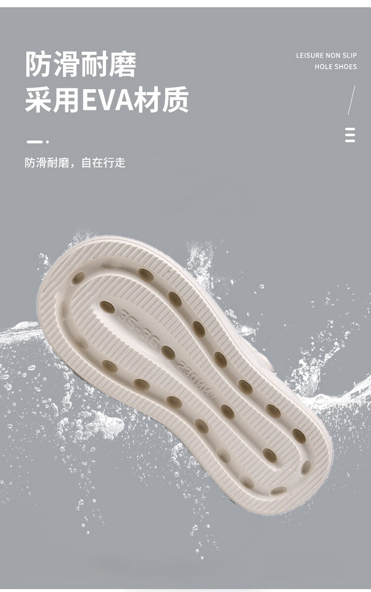 森馬洞洞鞋女款夏季厚底增高包头拖鞋踩屎感防滑防臭网红爆款沙滩凉鞋 米白【基础款】 35-36 【现货秒发】
