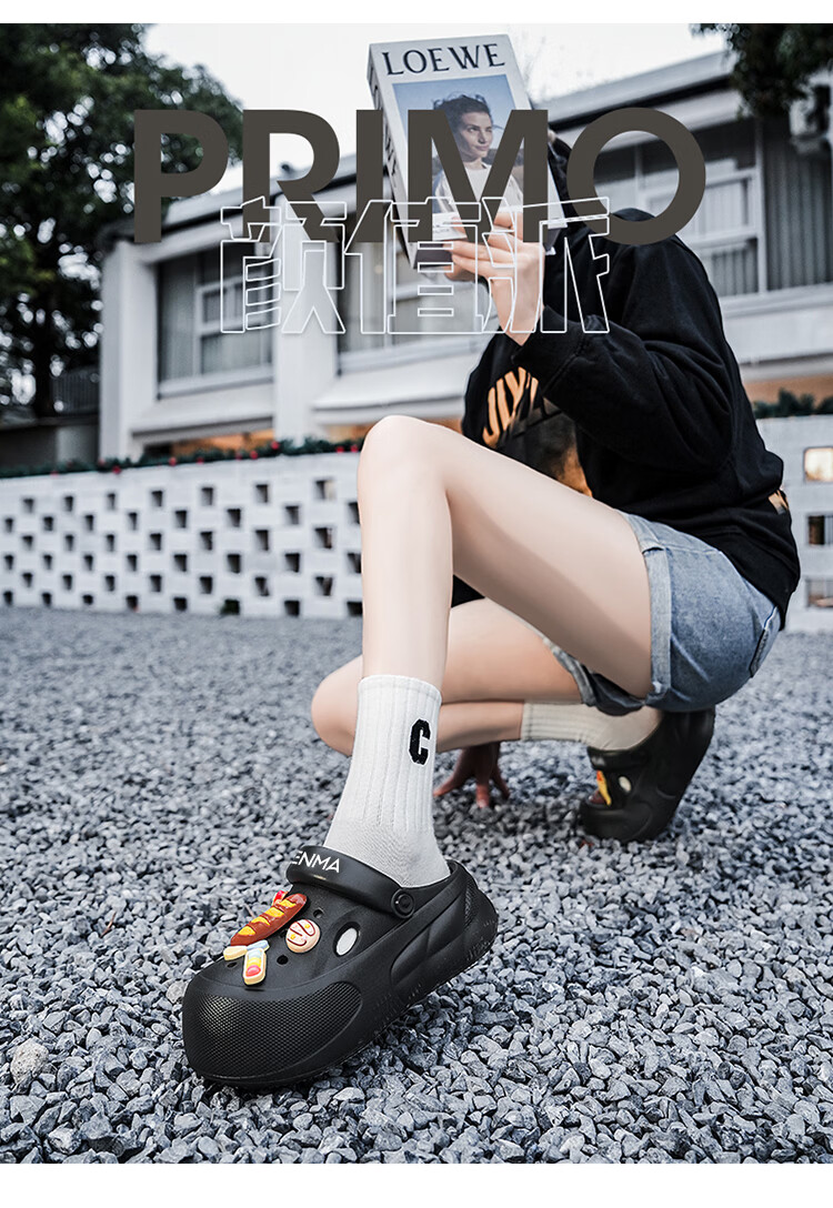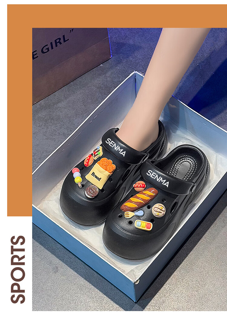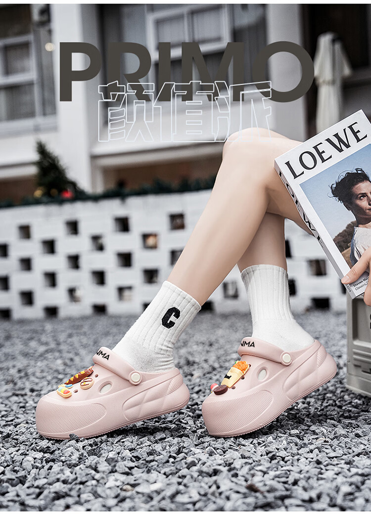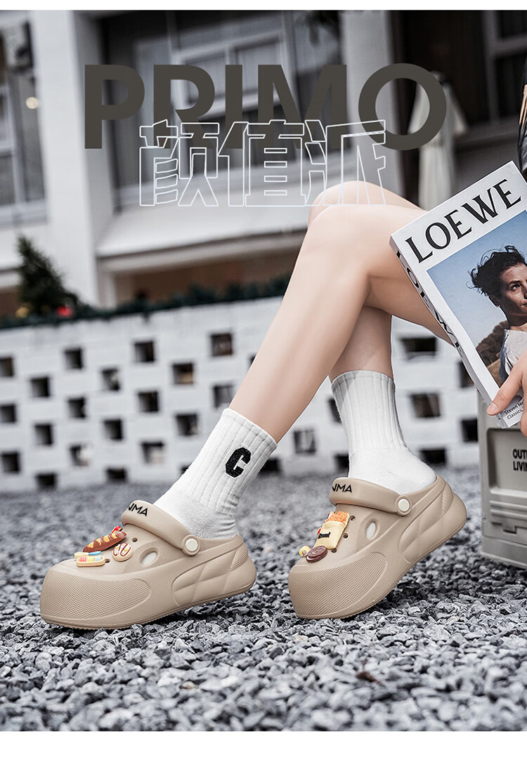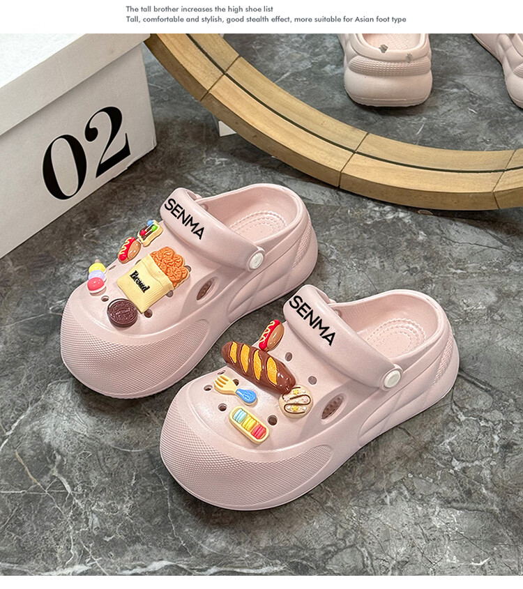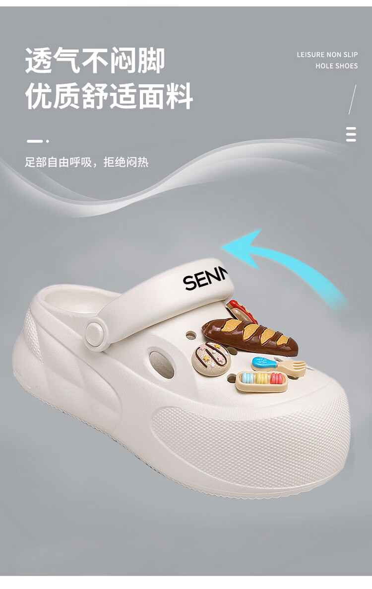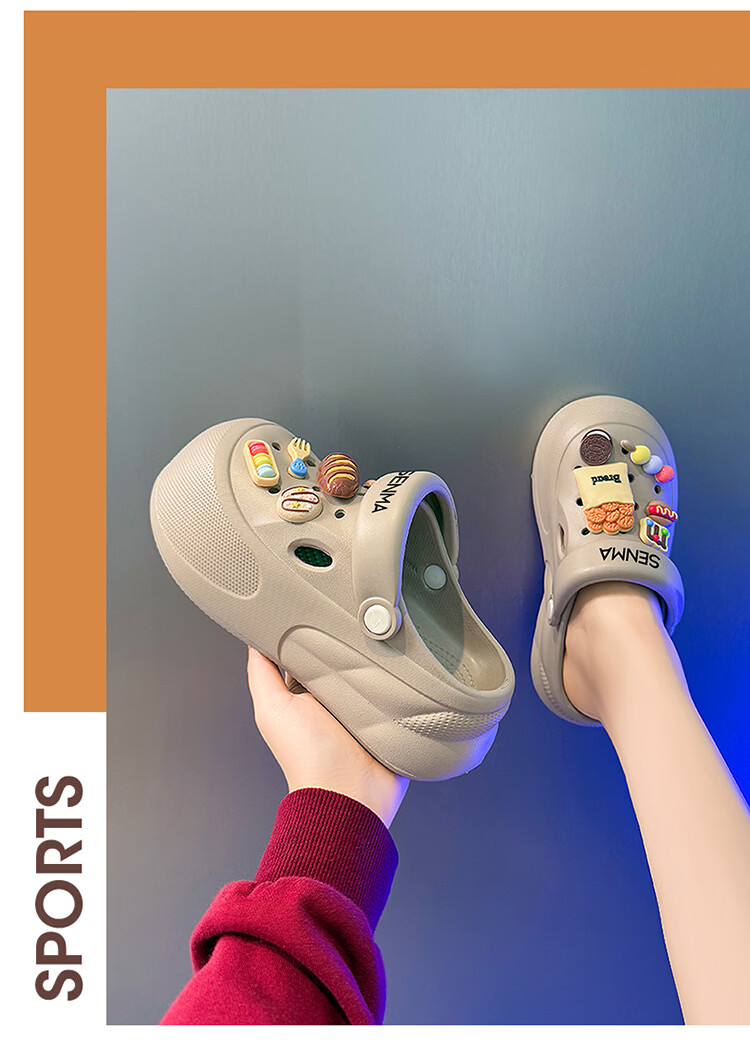 森馬洞洞鞋女款夏季厚底增高包头拖鞋踩屎感防滑防臭网红爆款沙滩凉鞋 米白【基础款】 35-36 【现货秒发】
