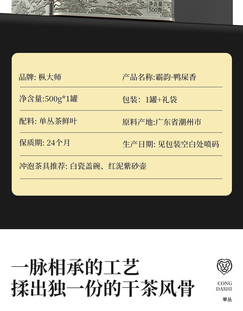 枞大师乌龙茶爷爷传承凤凰单丛鸭屎香特级500g足火礼盒单枞茶叶年货
