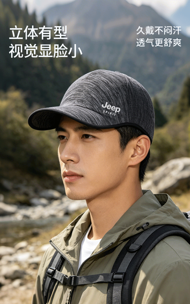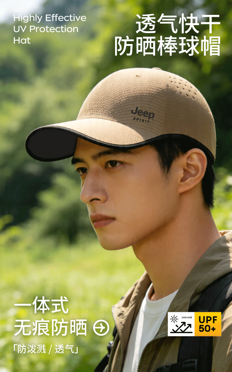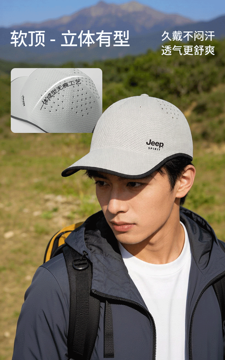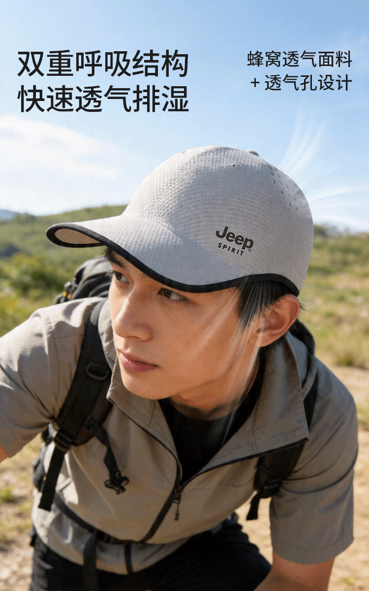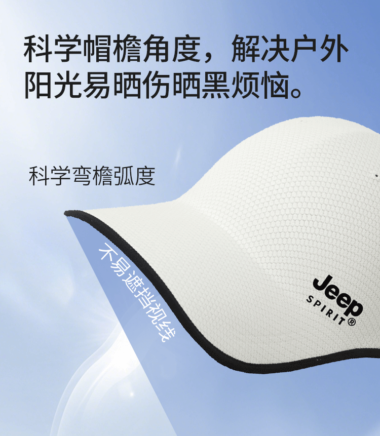 JEEP轻薄鸭舌帽棒球帽男士帽子时尚运动户外遮阳帽全脸防晒帽女防泼水 轻量化防晒棒球帽 棕色 均码