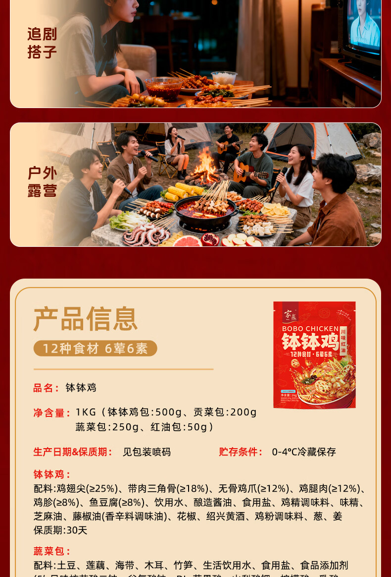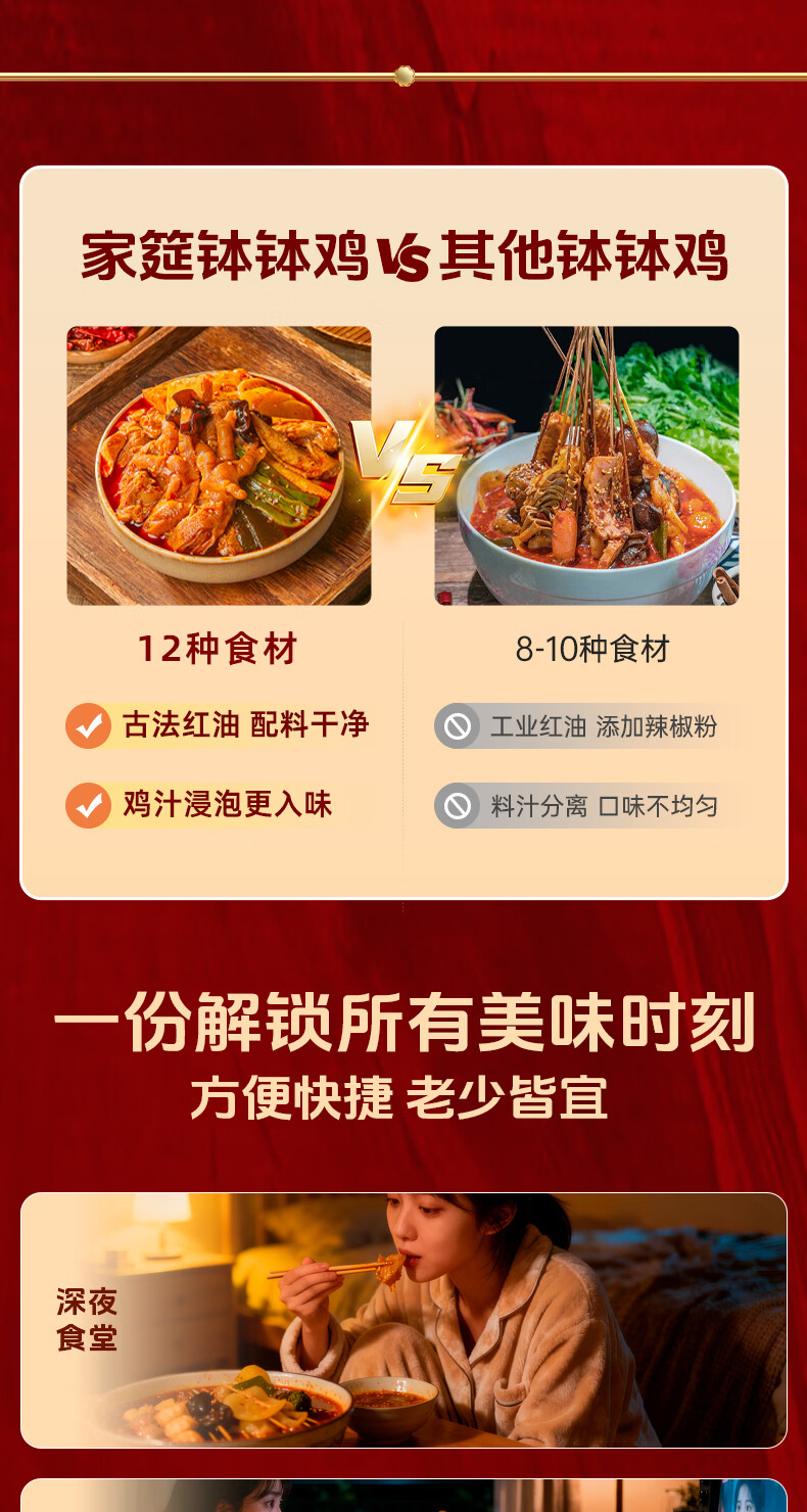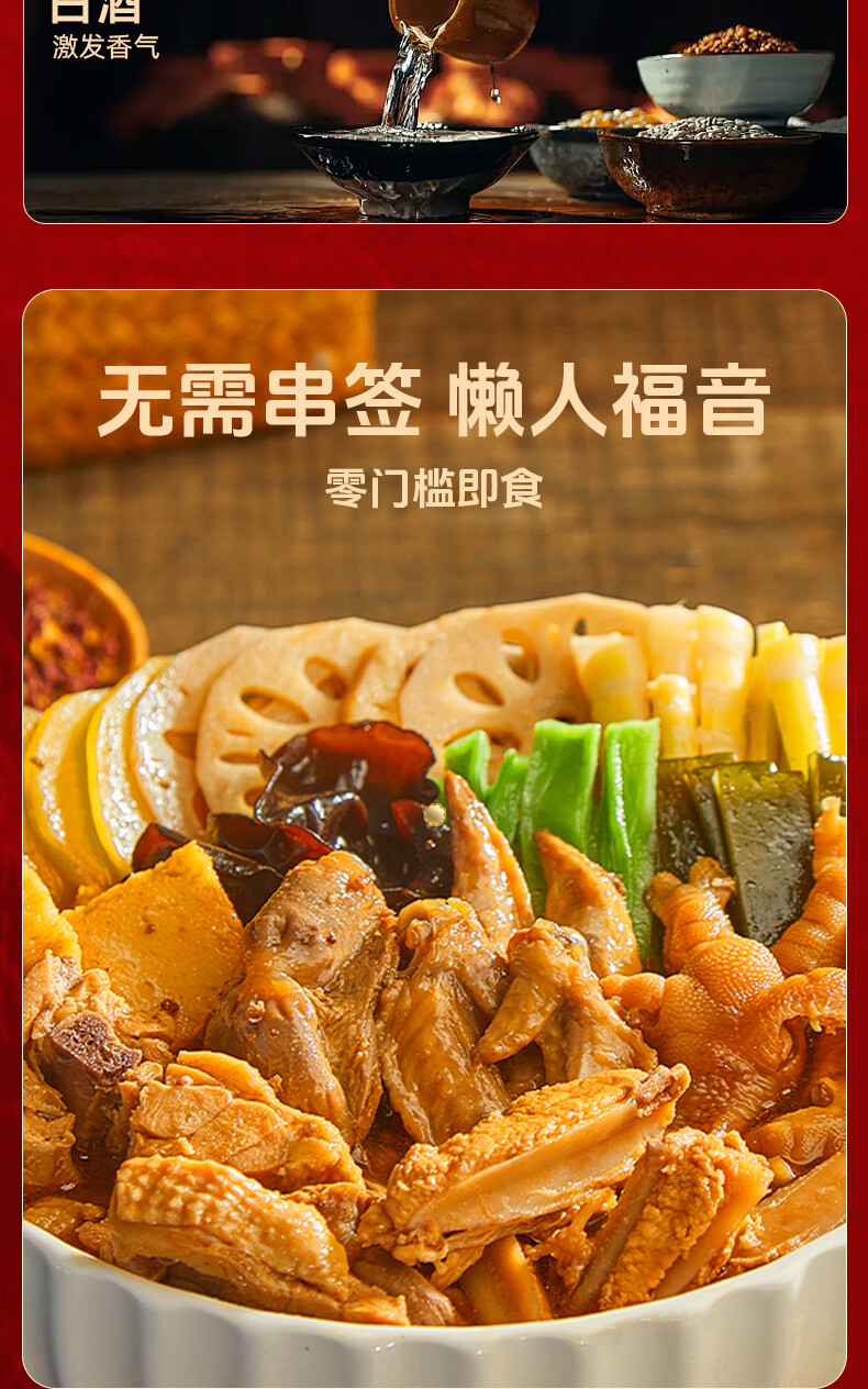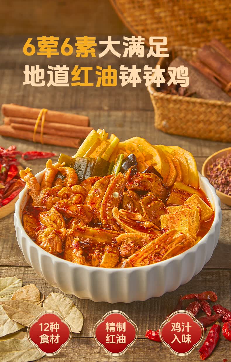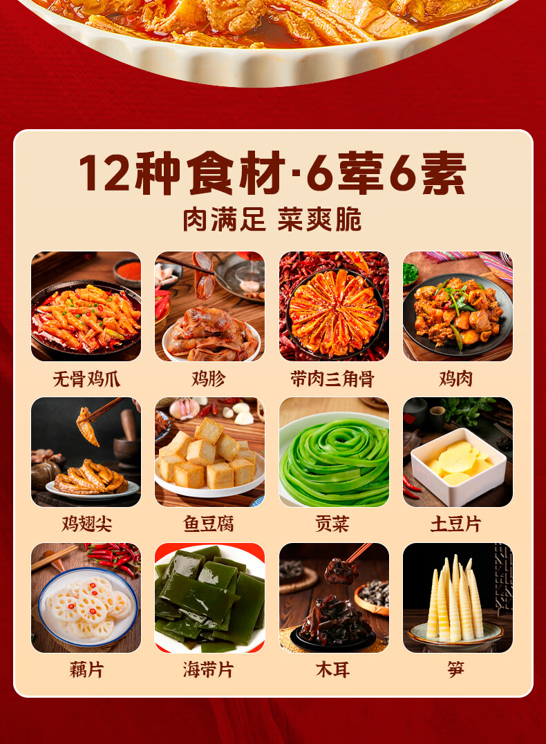 家筵钵钵鸡冷吃热吃无骨鸡爪椒麻大杂烩1000g贡菜零食速食下午茶小吃 6荤6素1000g*1盒