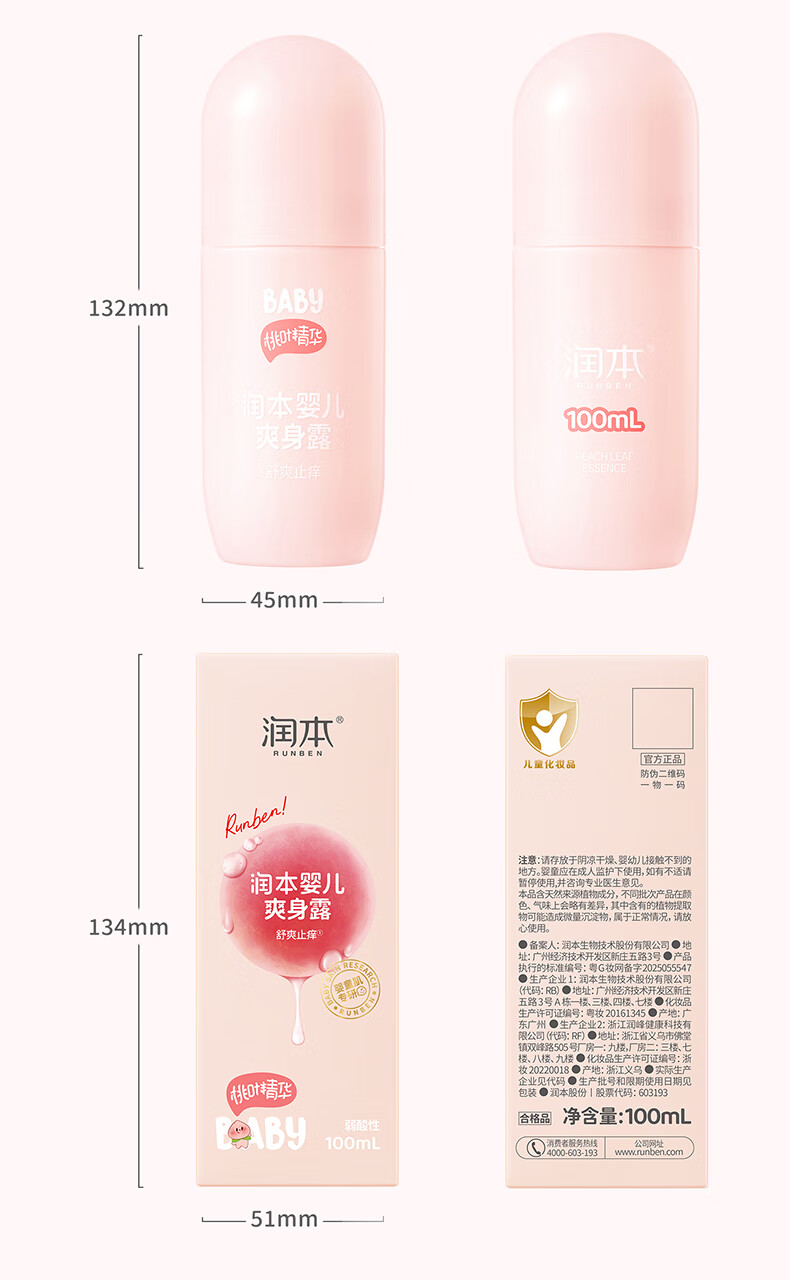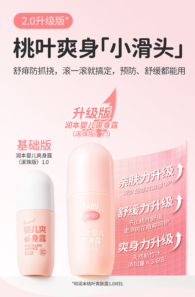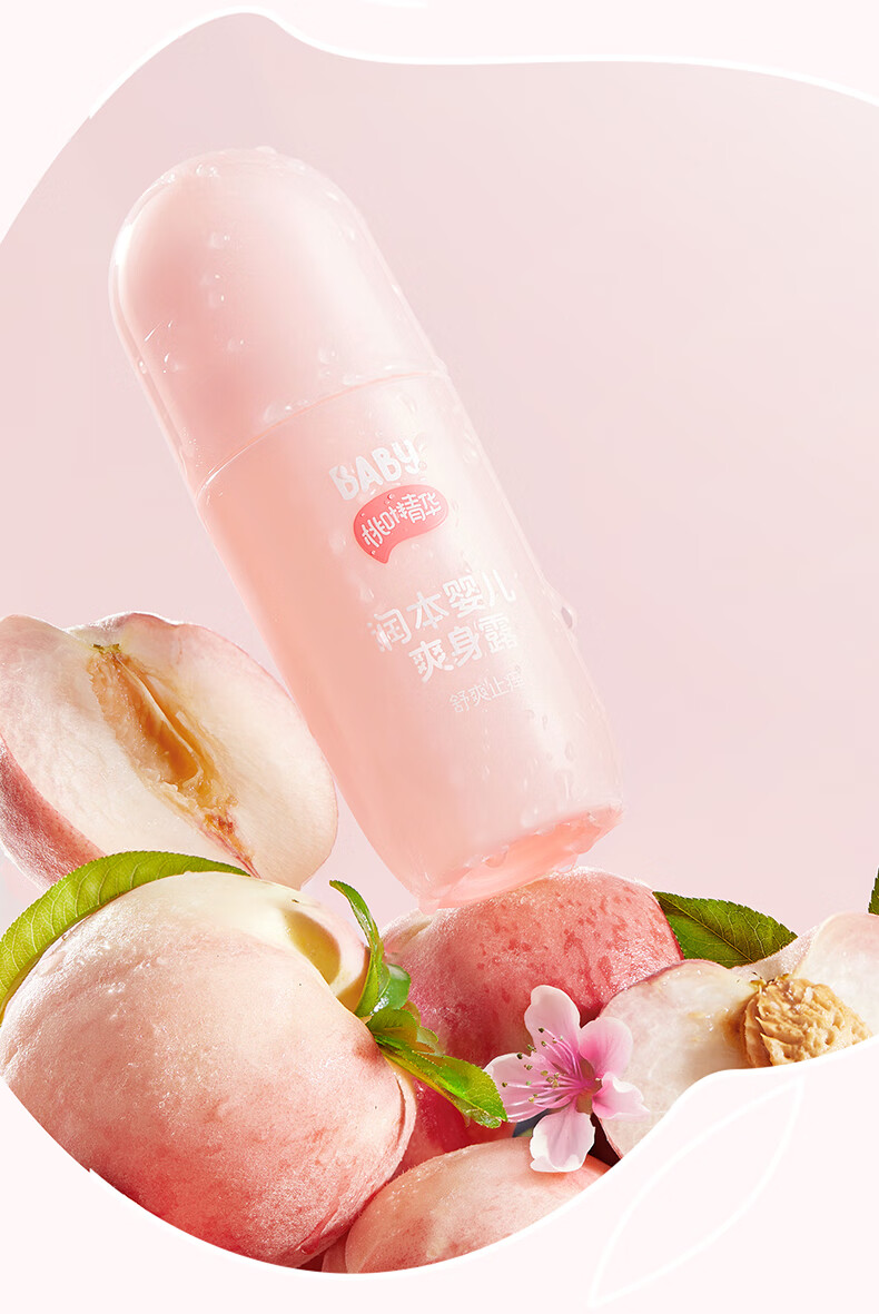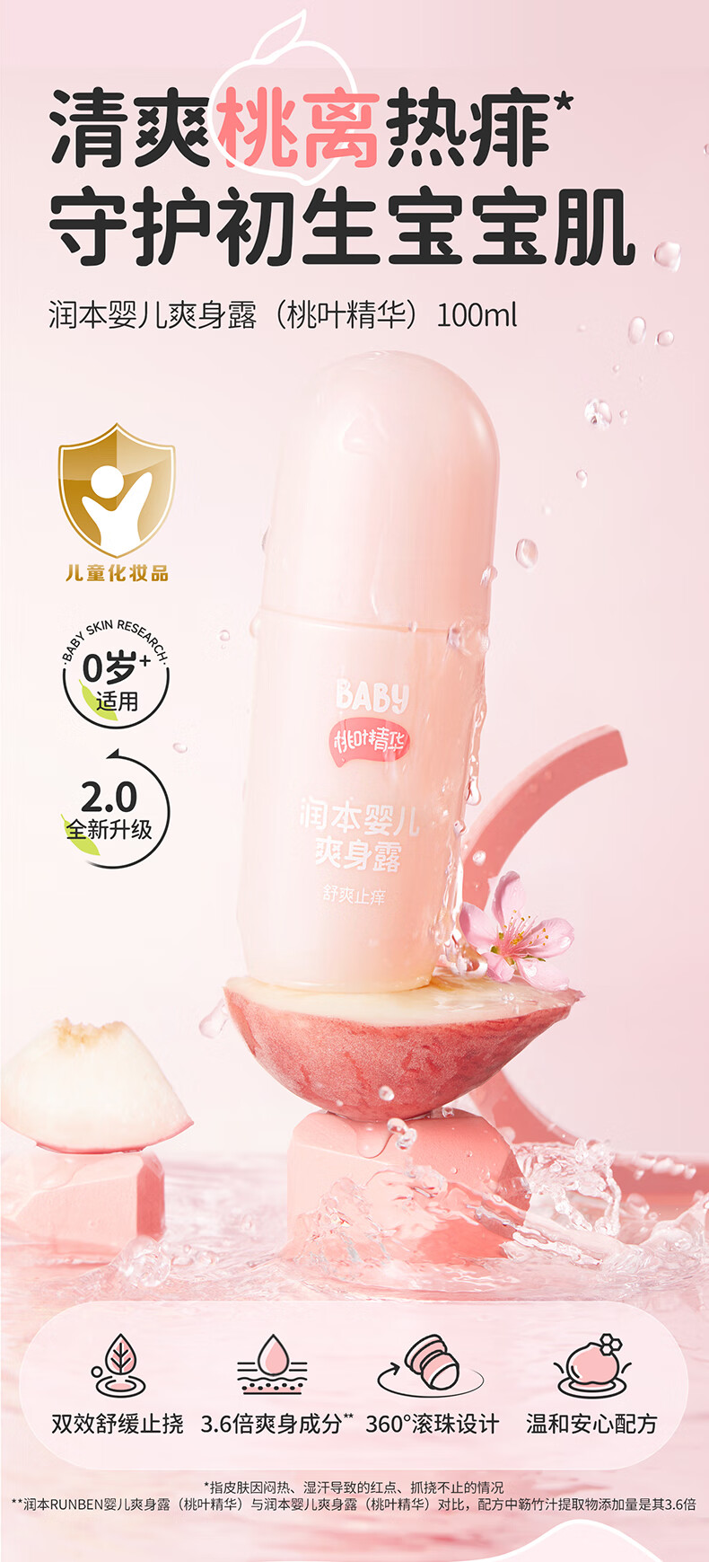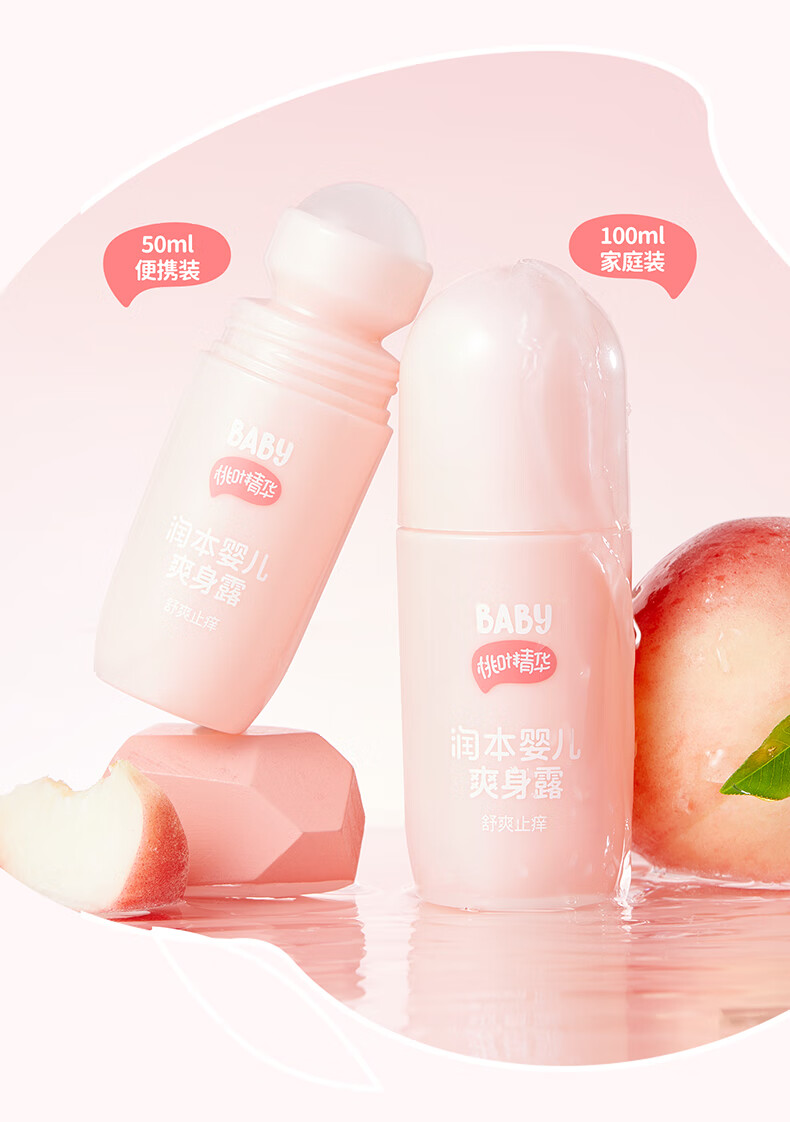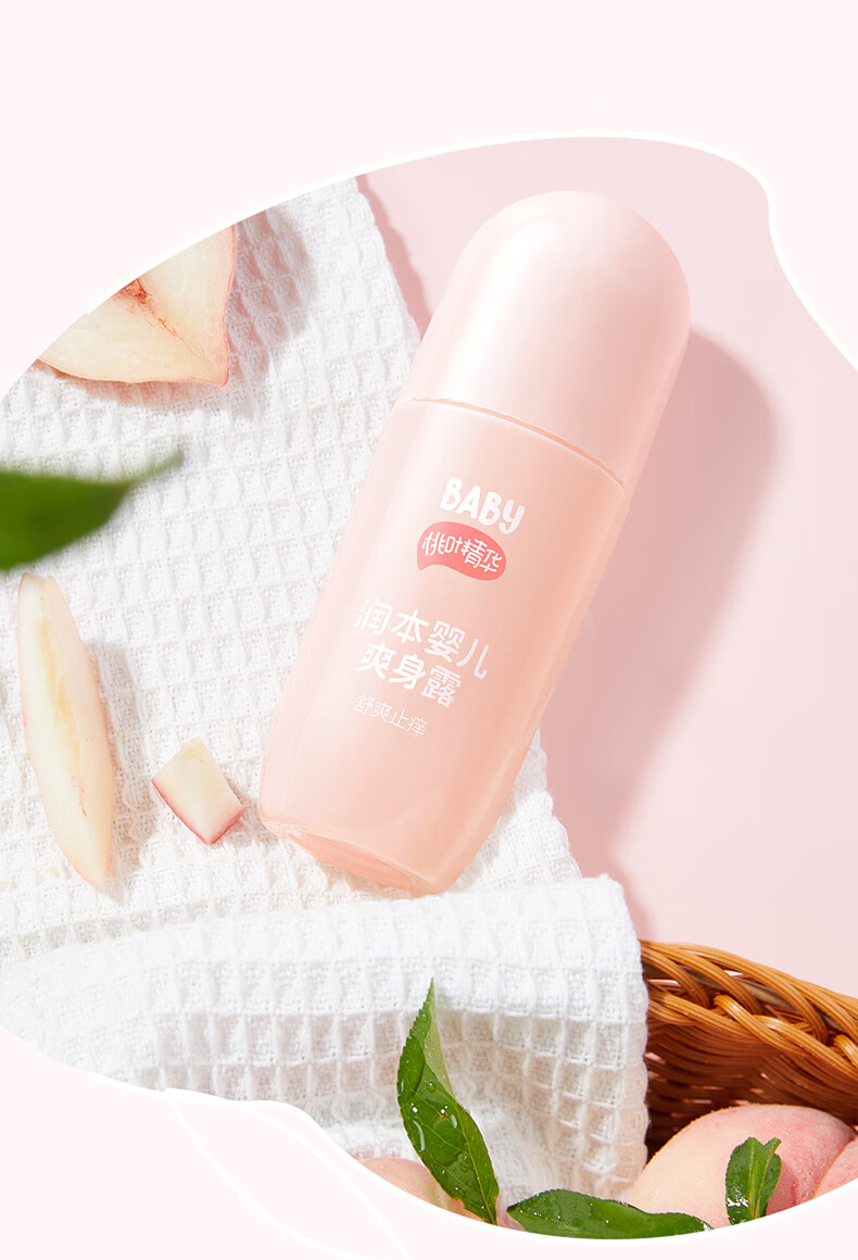 润本桃子水婴儿爽身露100ml宝宝痱子液体爽身粉舒痱干爽滚珠款润肤露