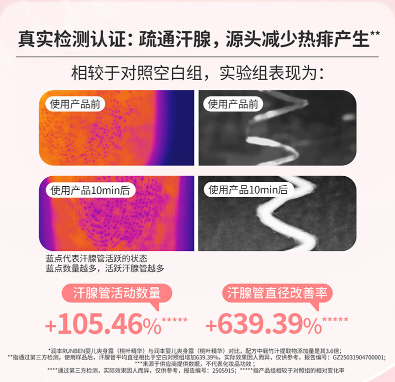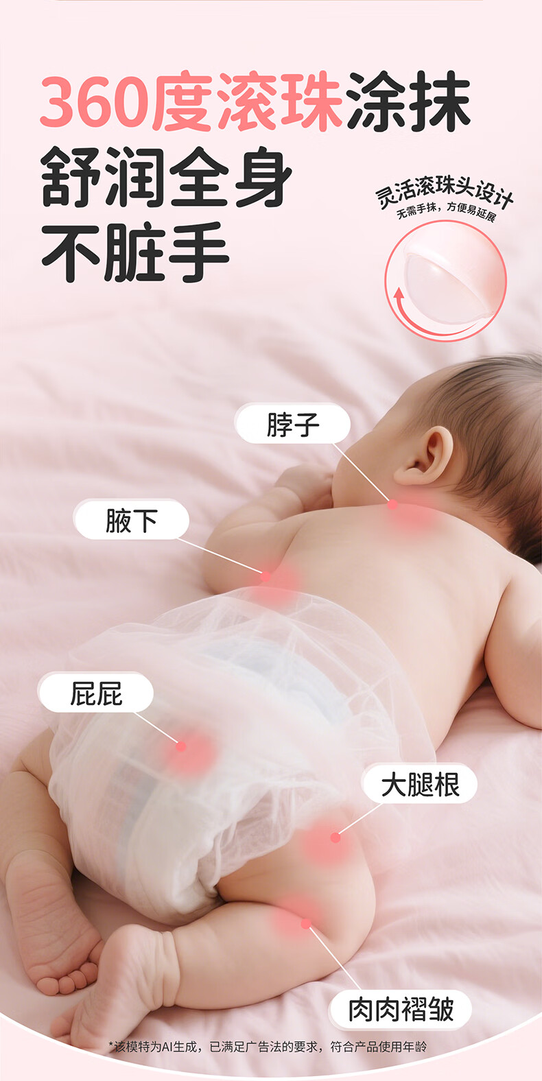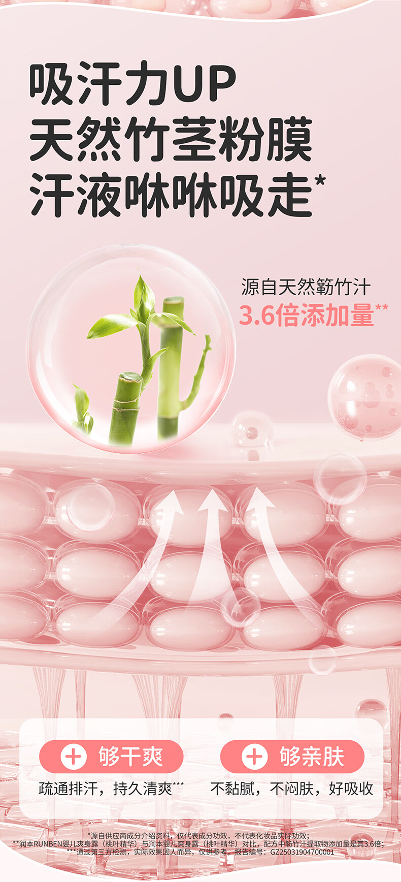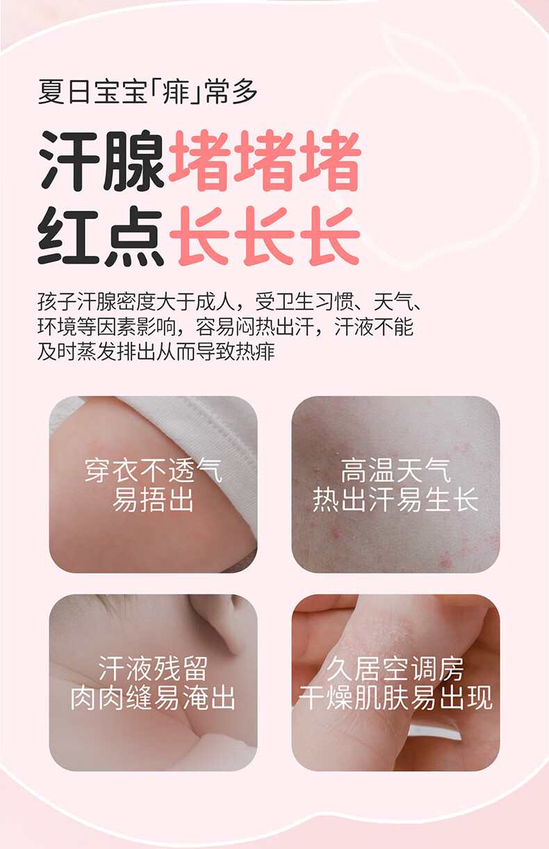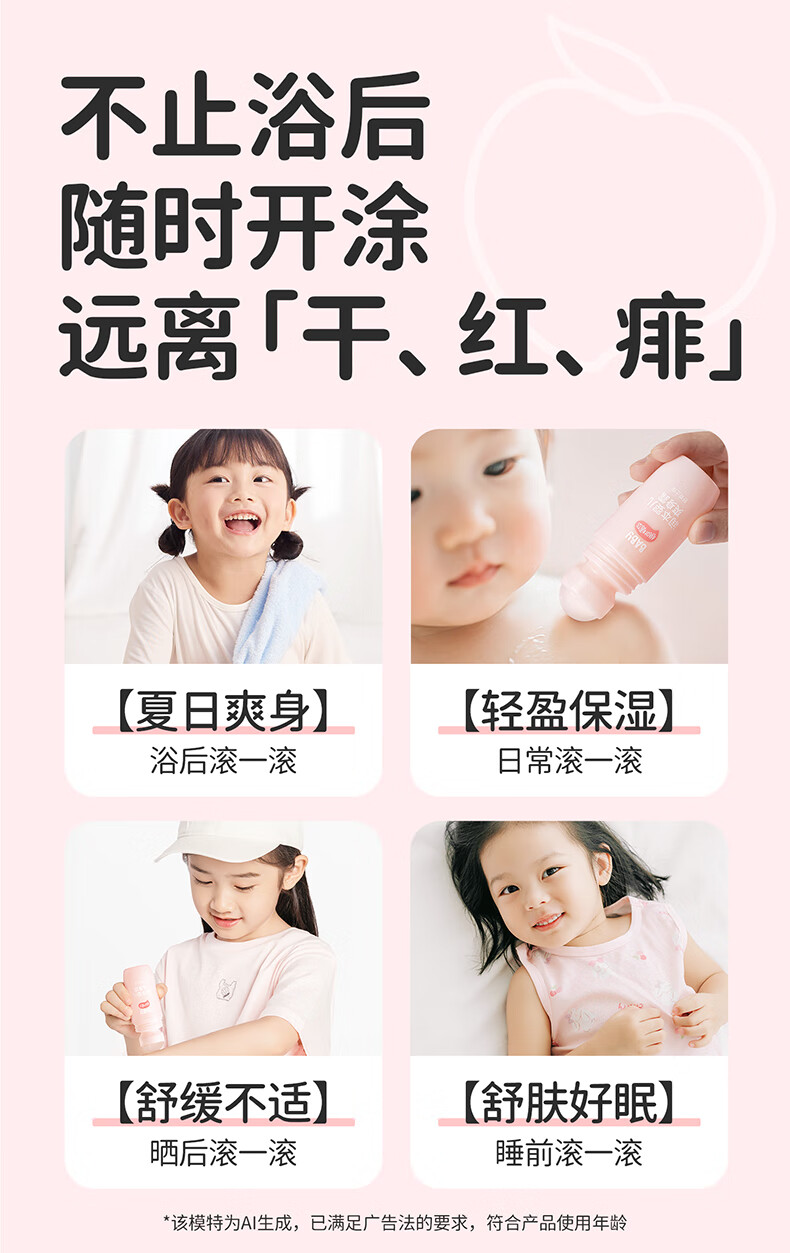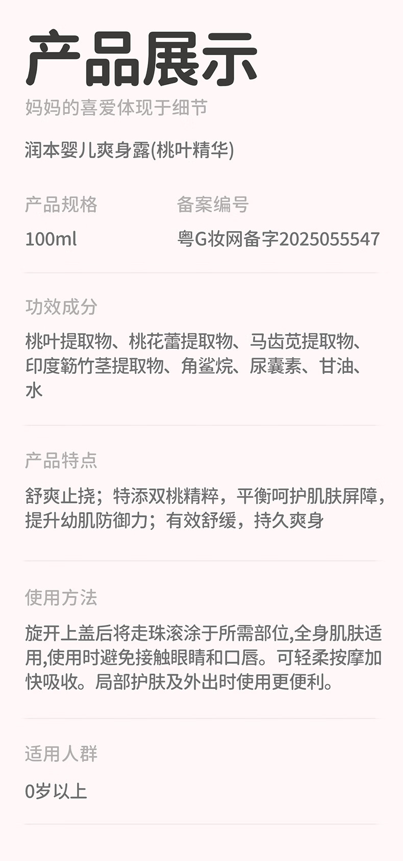润本桃子水婴儿爽身露100ml宝宝痱子液体爽身粉舒痱干爽滚珠款润肤露