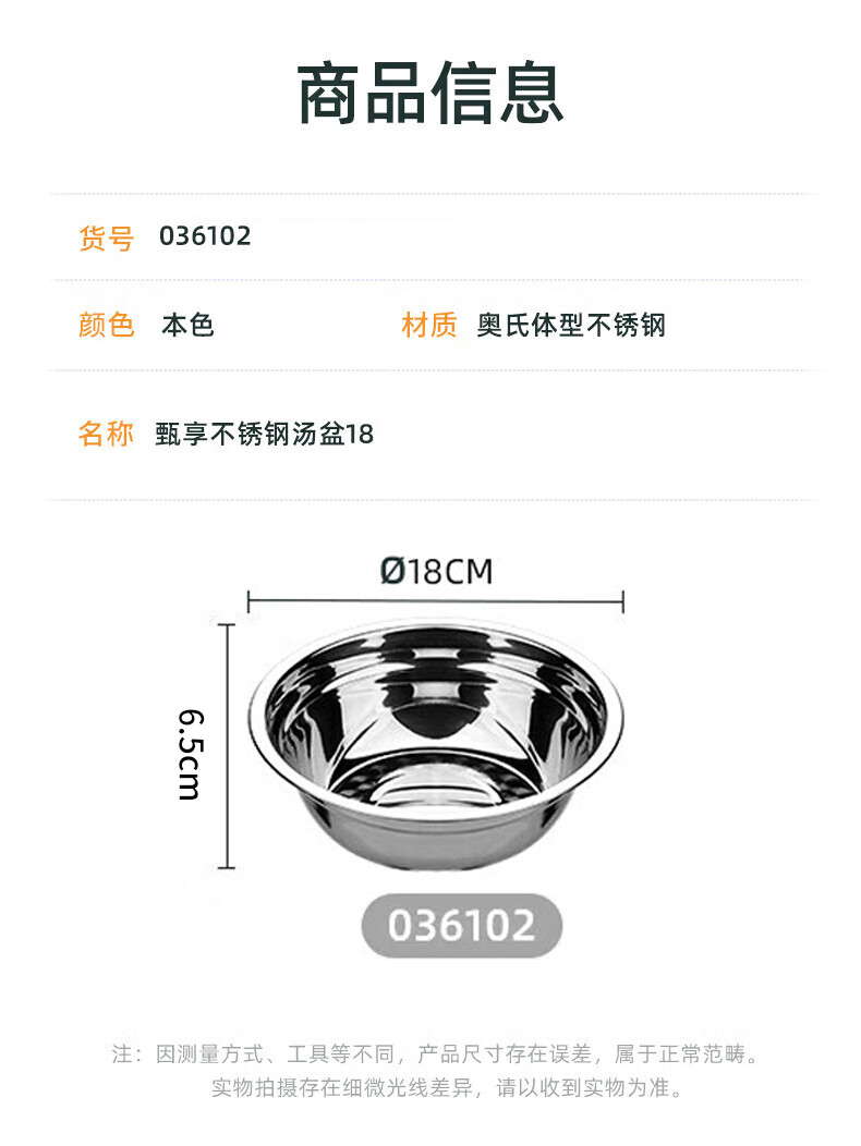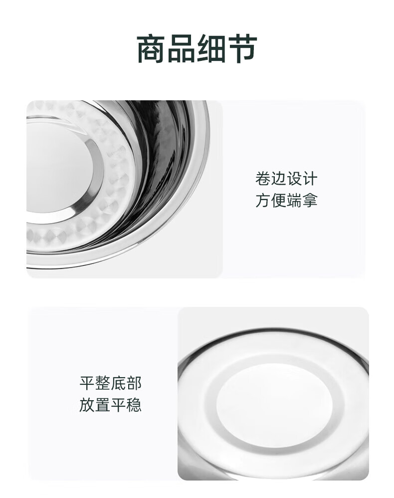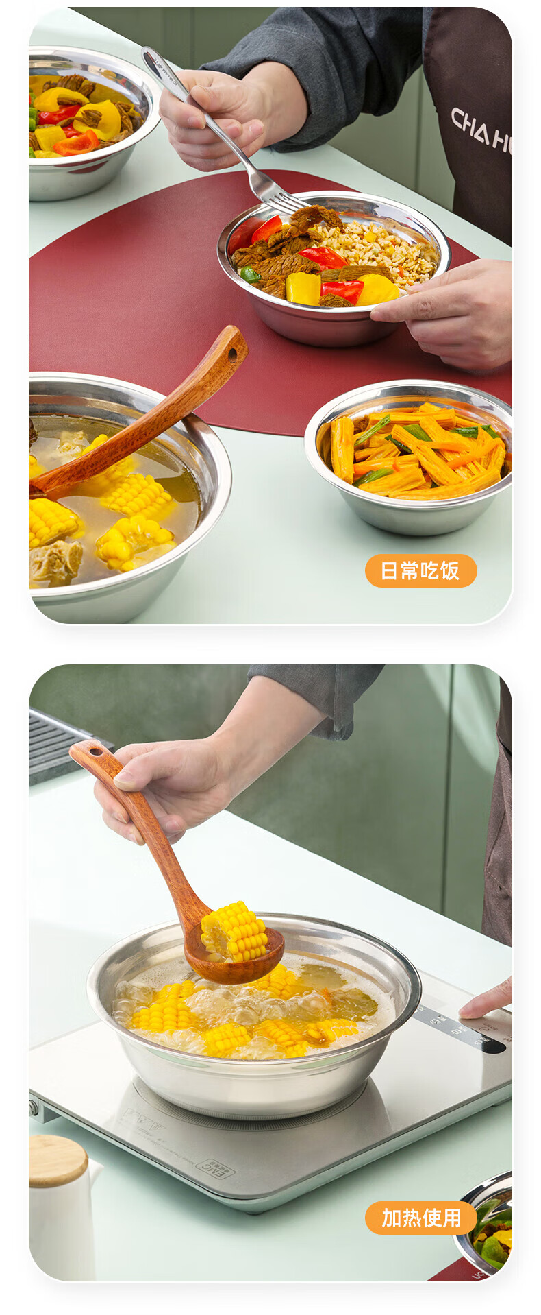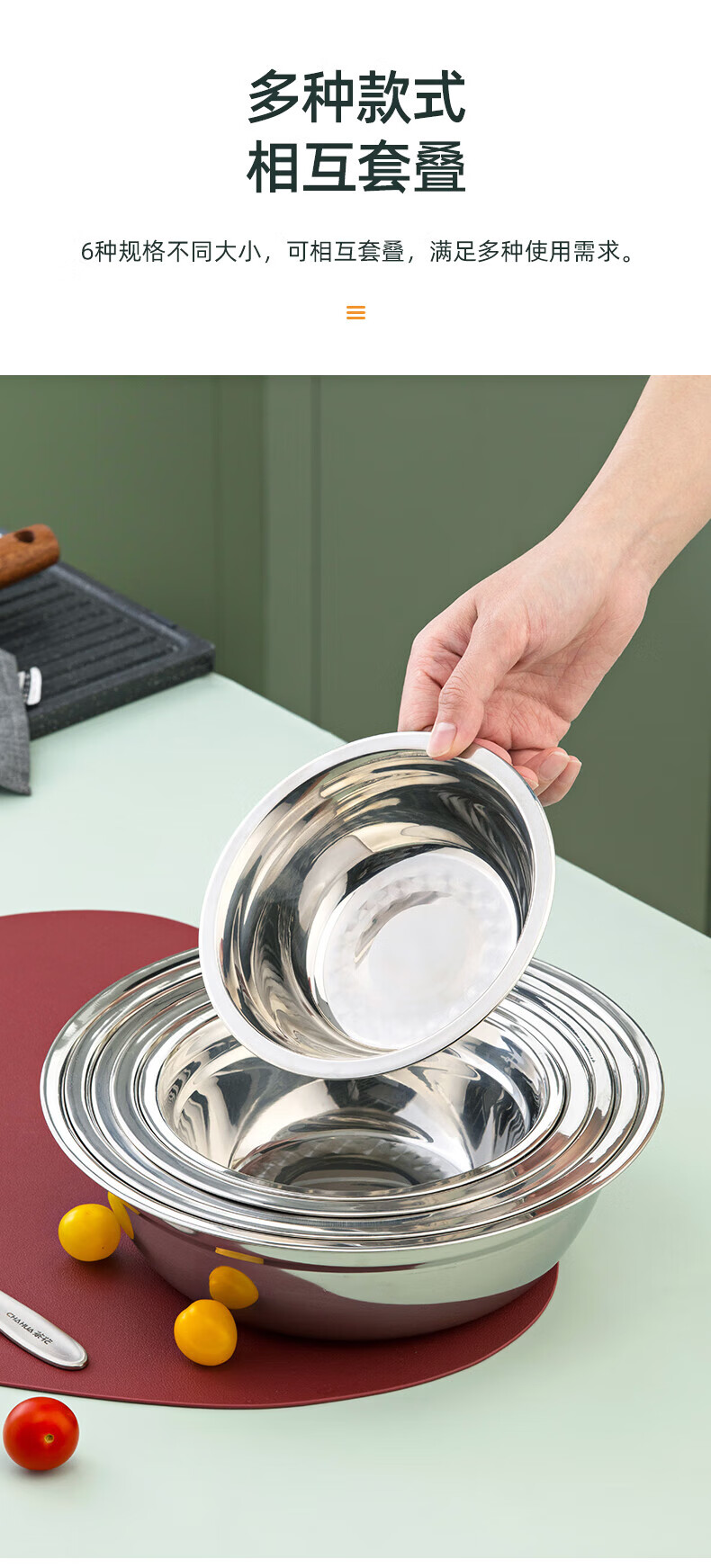 茶花(CHAHUA)甄享不锈钢盆加厚平底汤盆厨房打蛋和面盆洗菜烘焙盆子18厘米