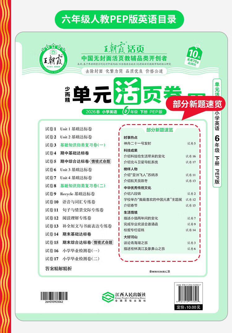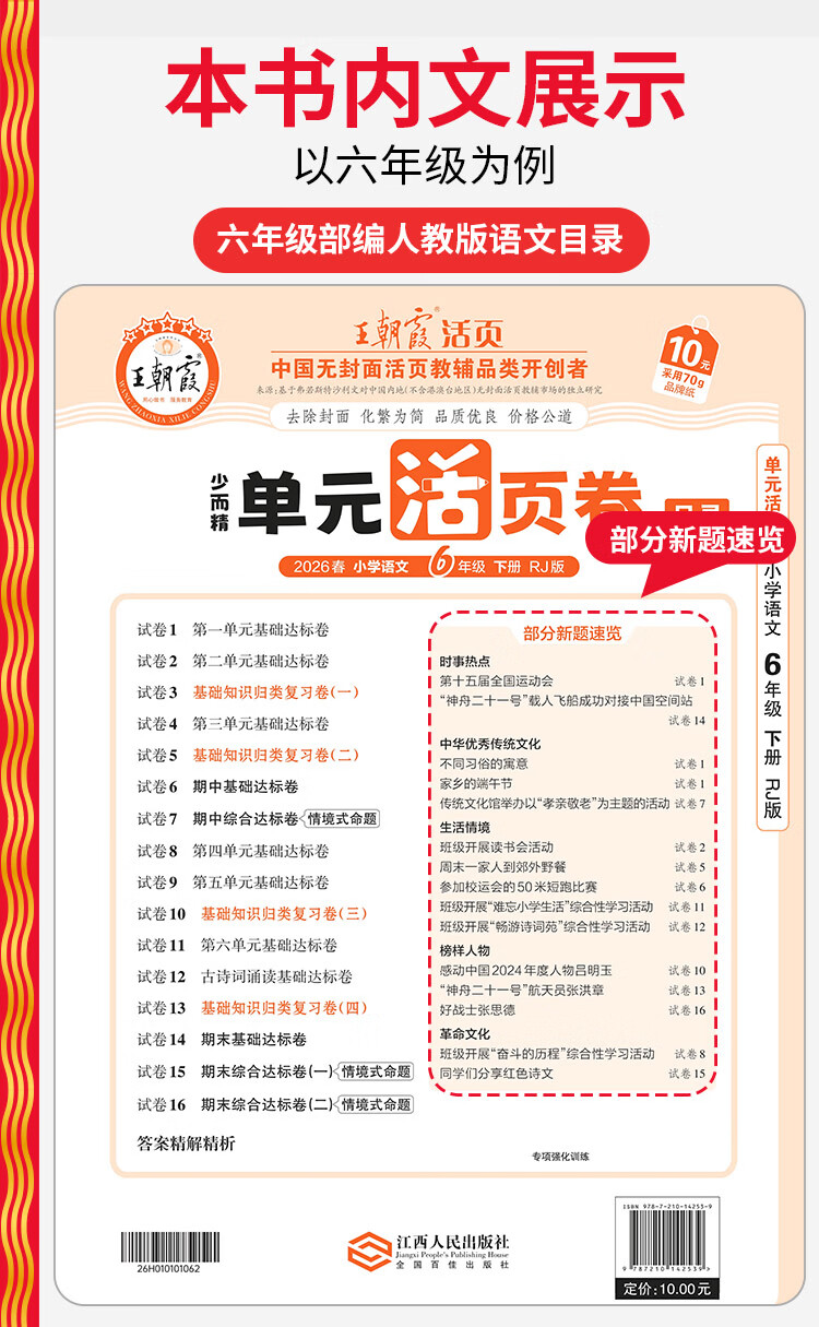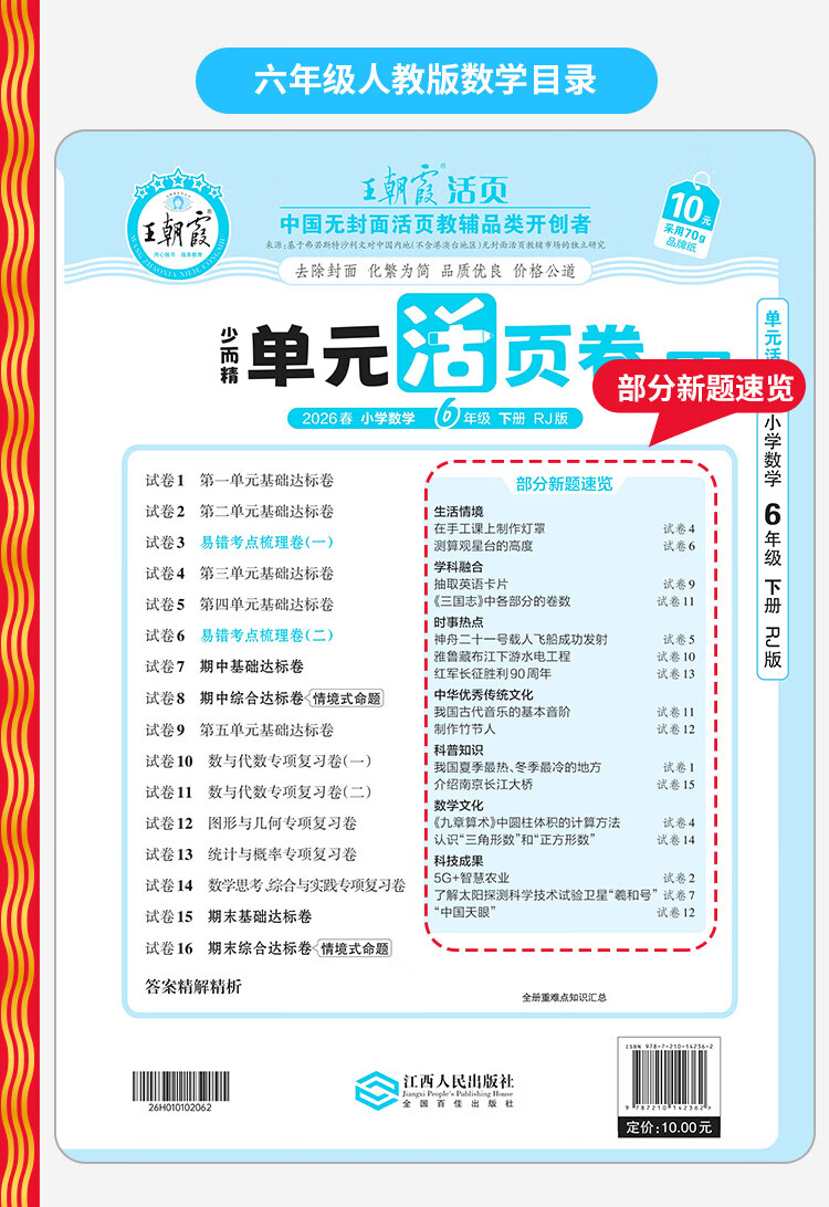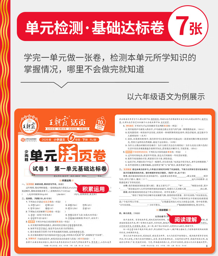 王朝霞2026新版活页单元下册一二三四五六年级上下册王朝霞活页单元测试卷语文数学英语测试全能练考课堂北师苏教同步人教版 下册-数学(人教版) 三年级