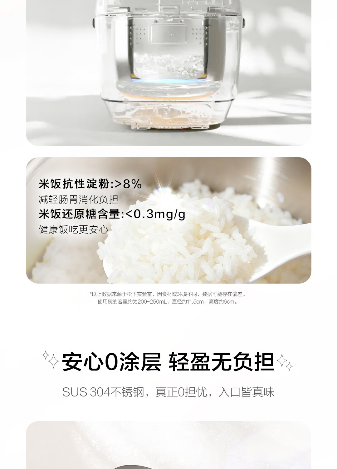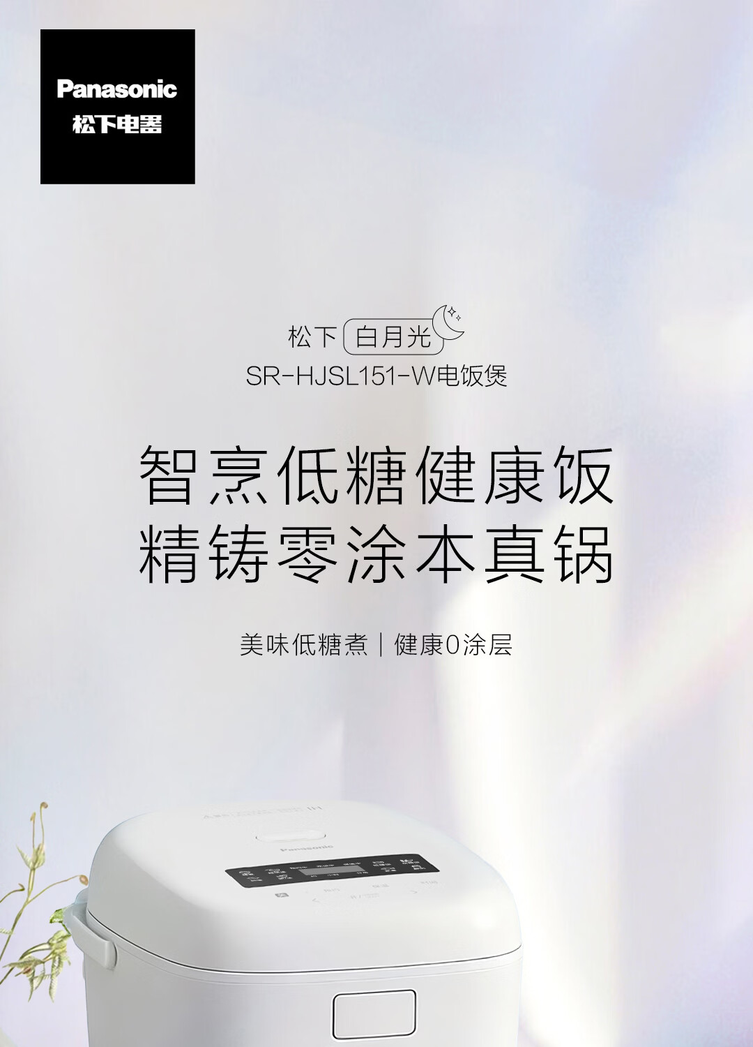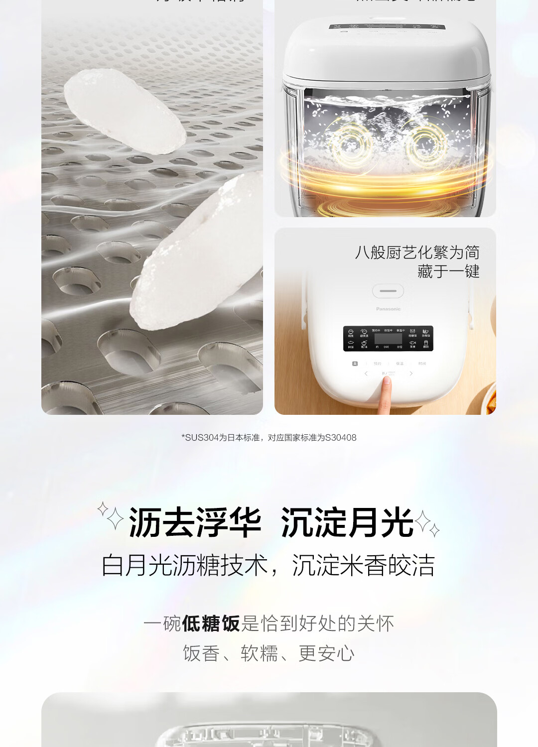 松下(Panasonic)白月光低糖电饭煲0涂层IH家用无涂层电饭锅4-5人不锈钢一级能效4升 白月光 4L 【白月光系列】0涂层低糖