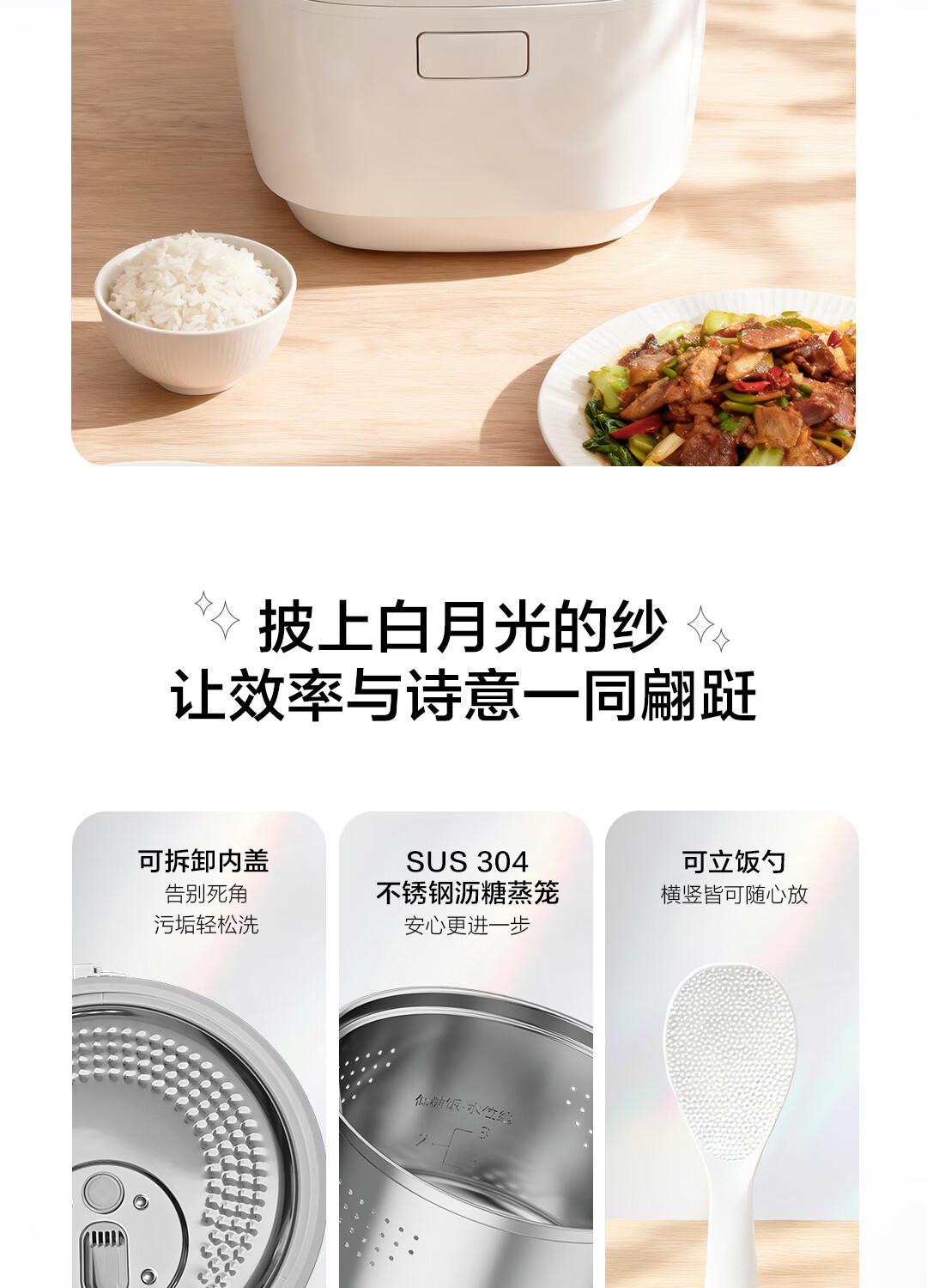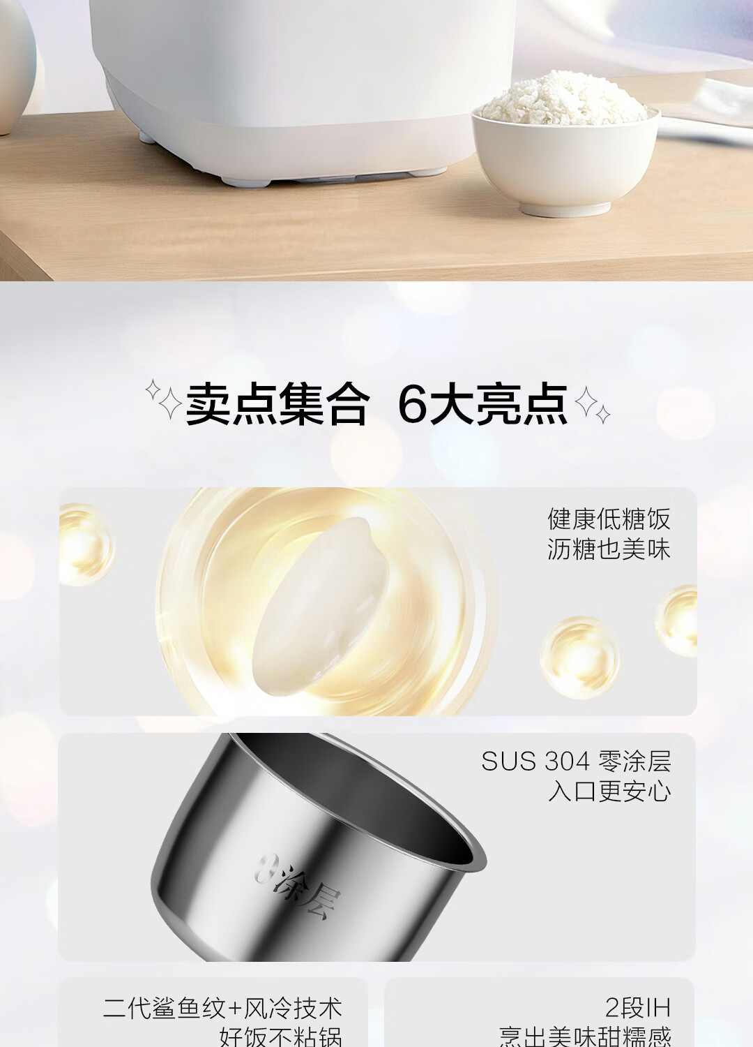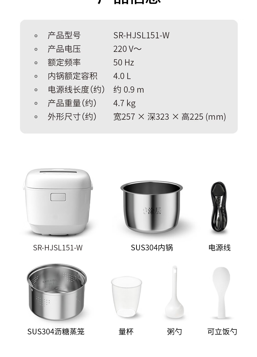 松下(Panasonic)白月光低糖电饭煲0涂层IH家用无涂层电饭锅4-5人不锈钢一级能效4升 白月光 4L 【白月光系列】0涂层低糖