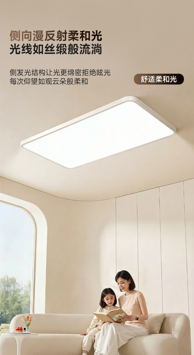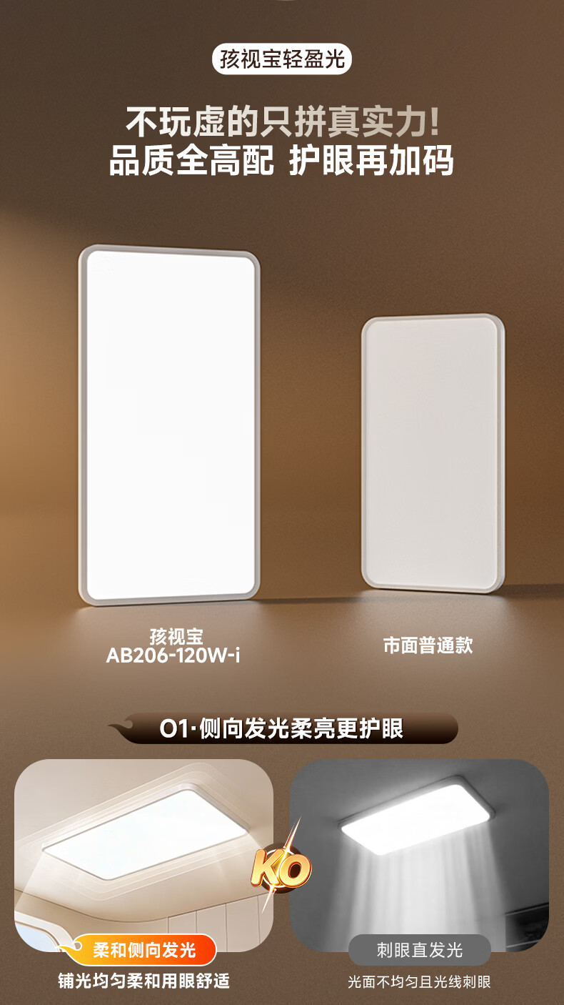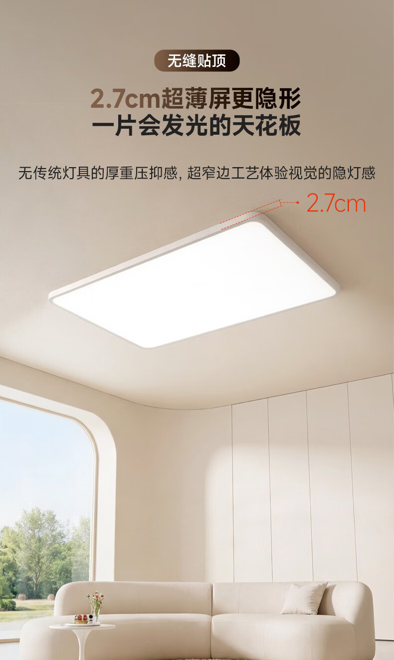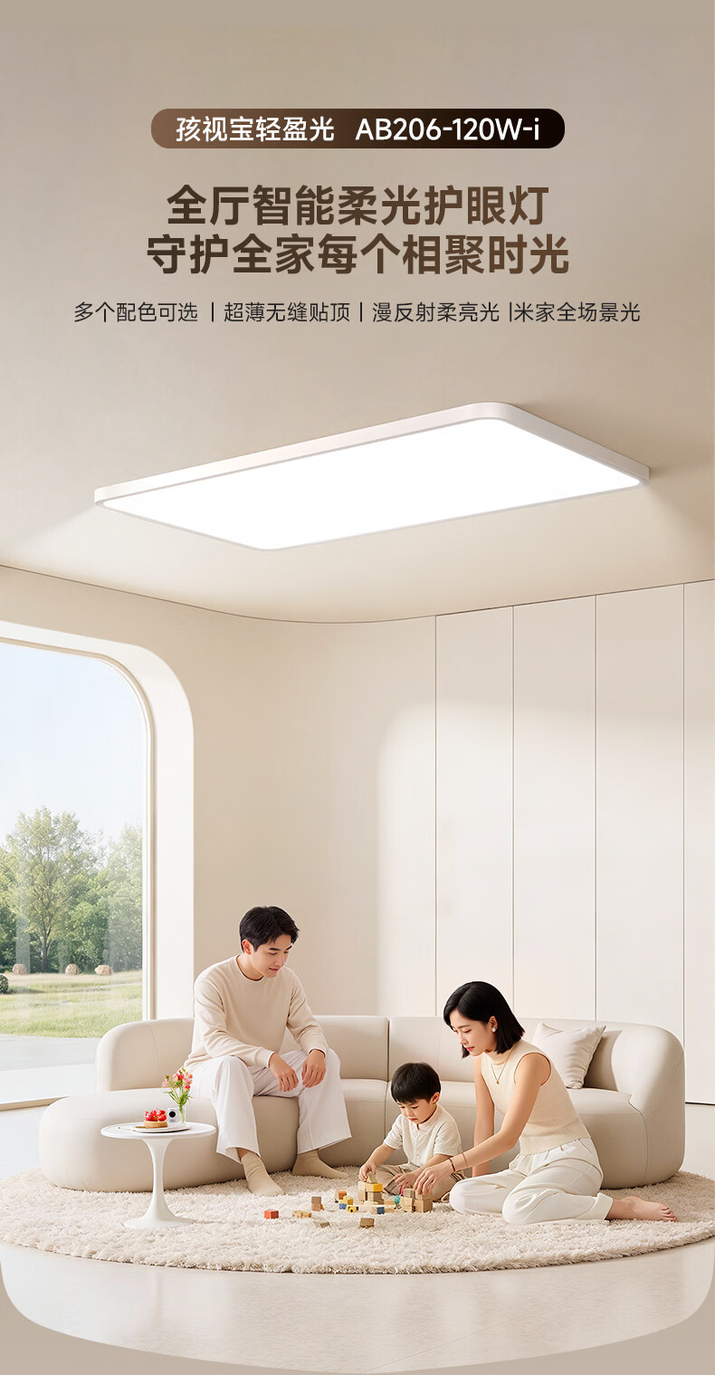 孩视宝轻盈光·全光谱护眼吸顶灯智能2.7cm超薄无缝客厅卧室书房led灯具 120W 35㎡内适用 12360lm 【轻盈光客厅】暖白-三色温款