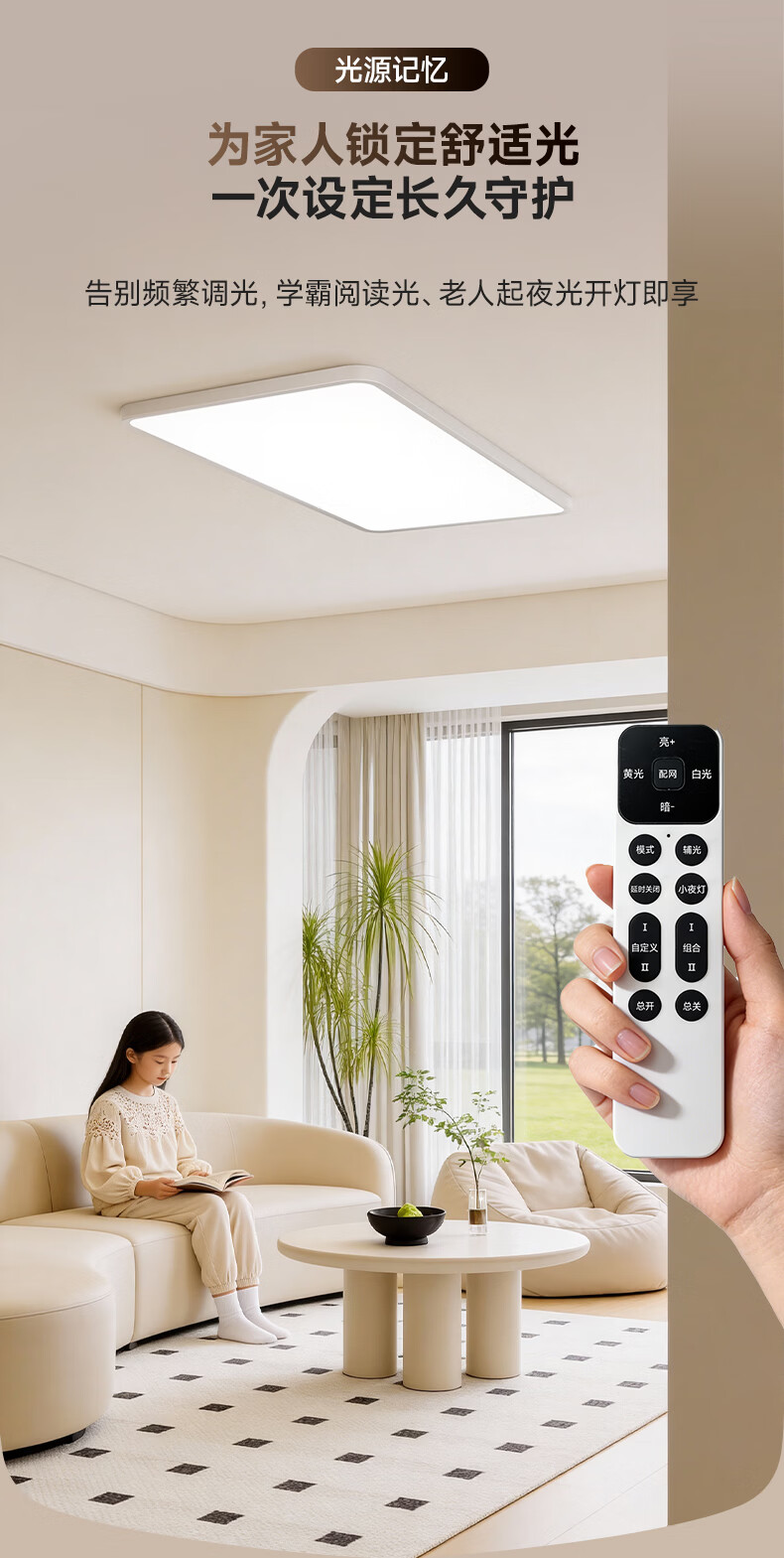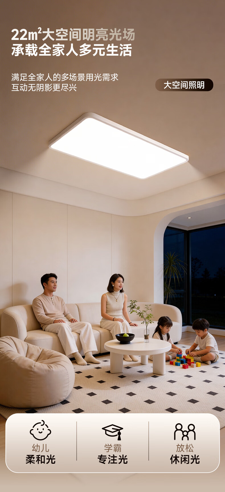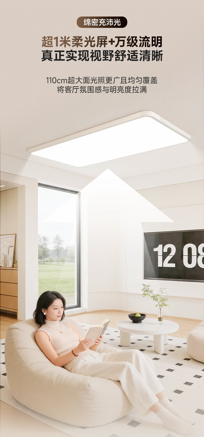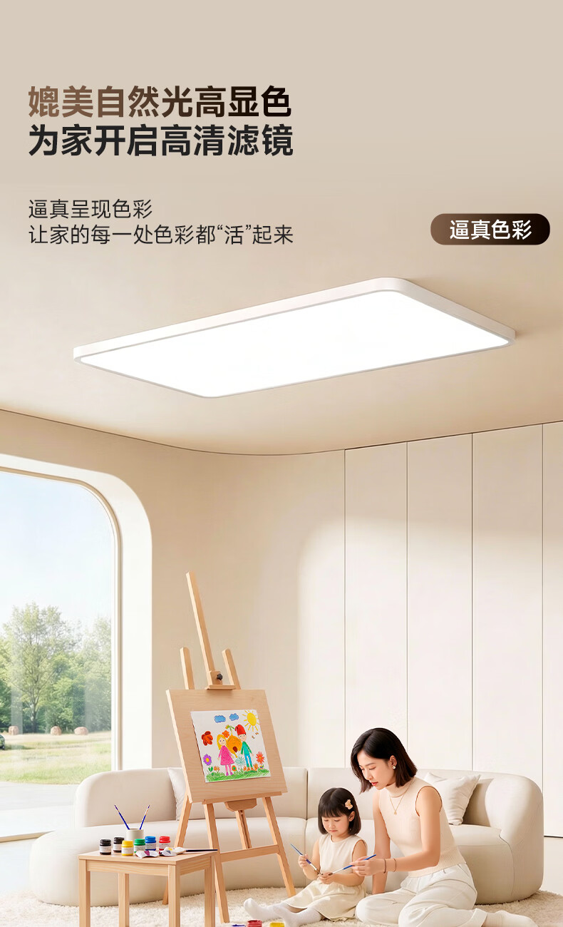 孩视宝轻盈光·全光谱护眼吸顶灯智能2.7cm超薄无缝客厅卧室书房led灯具 120W 35㎡内适用 12360lm 【轻盈光客厅】暖白-三色温款